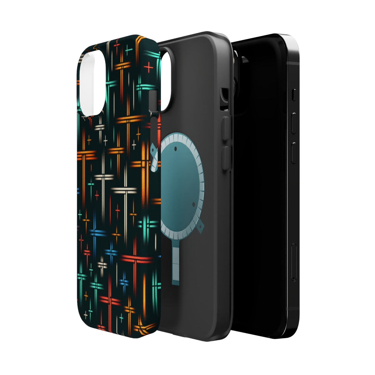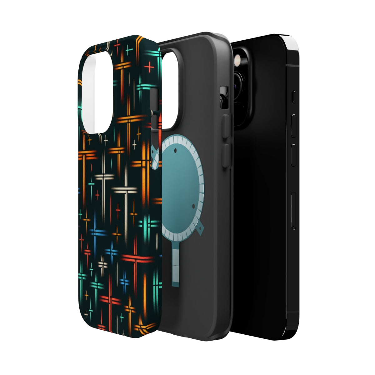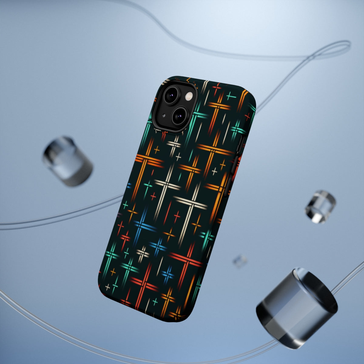 DistinctInk Tough Case for Apple iPhone, Compatible with MagSafe Charging - "Radiant Crosses: A Serene Minimalist Pattern"