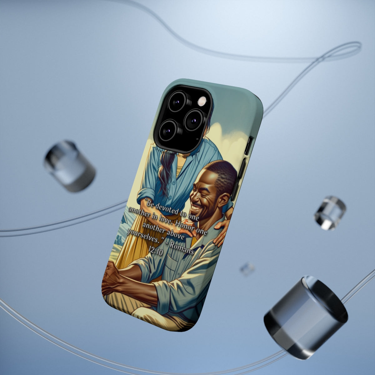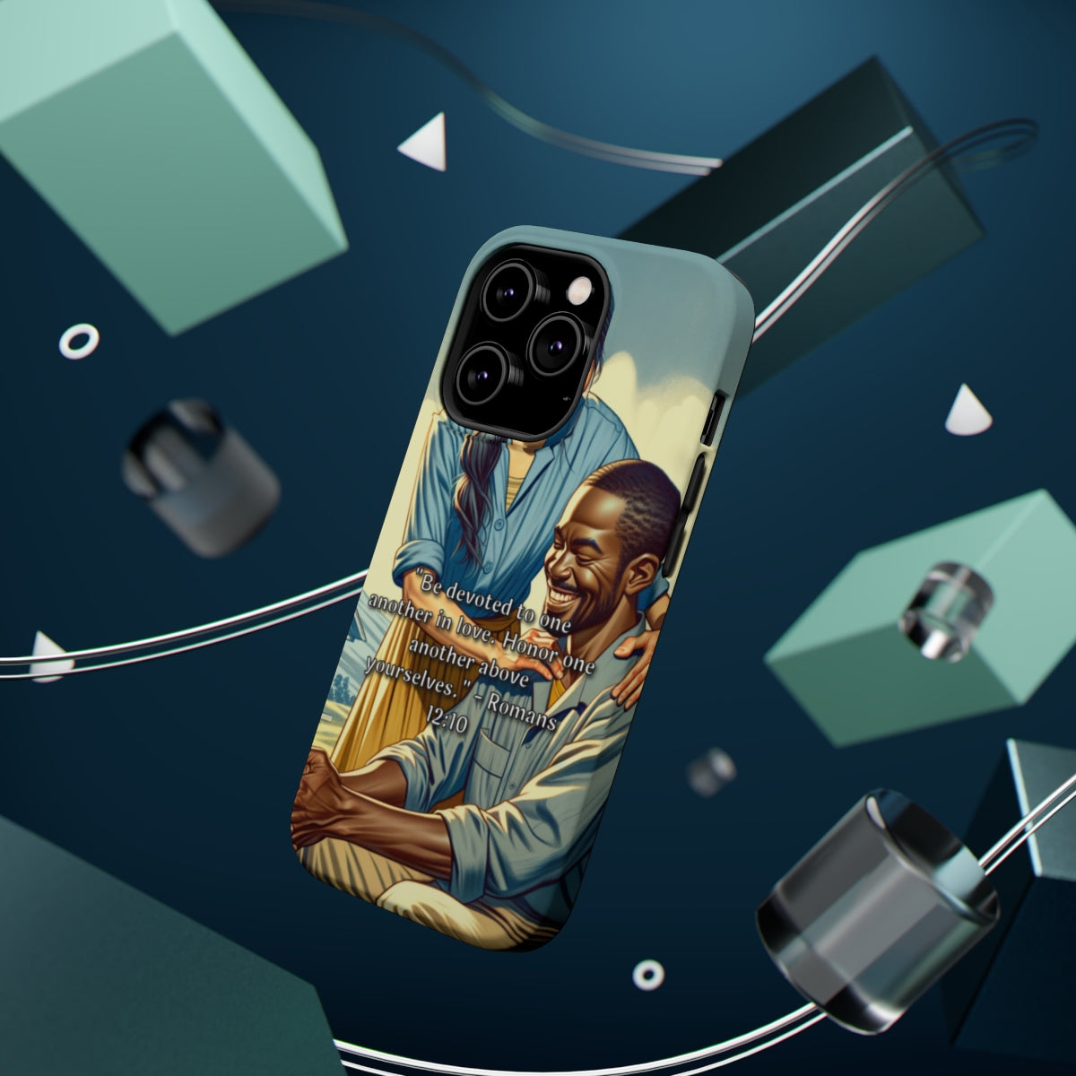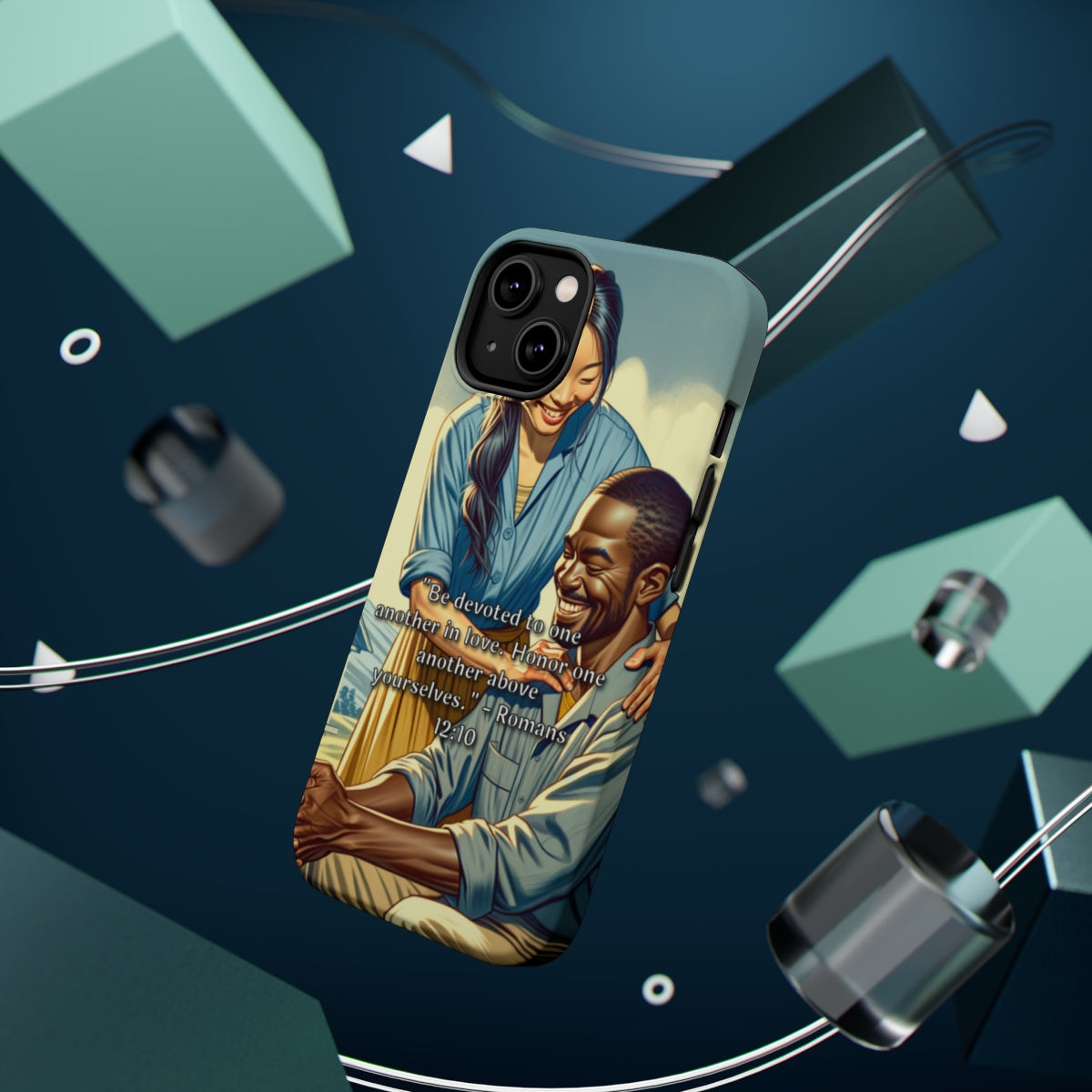 DistinctInk Tough Case for Apple iPhone, Compatible with MagSafe Charging - "Romans 12:10: Devotion and Honor in Love"