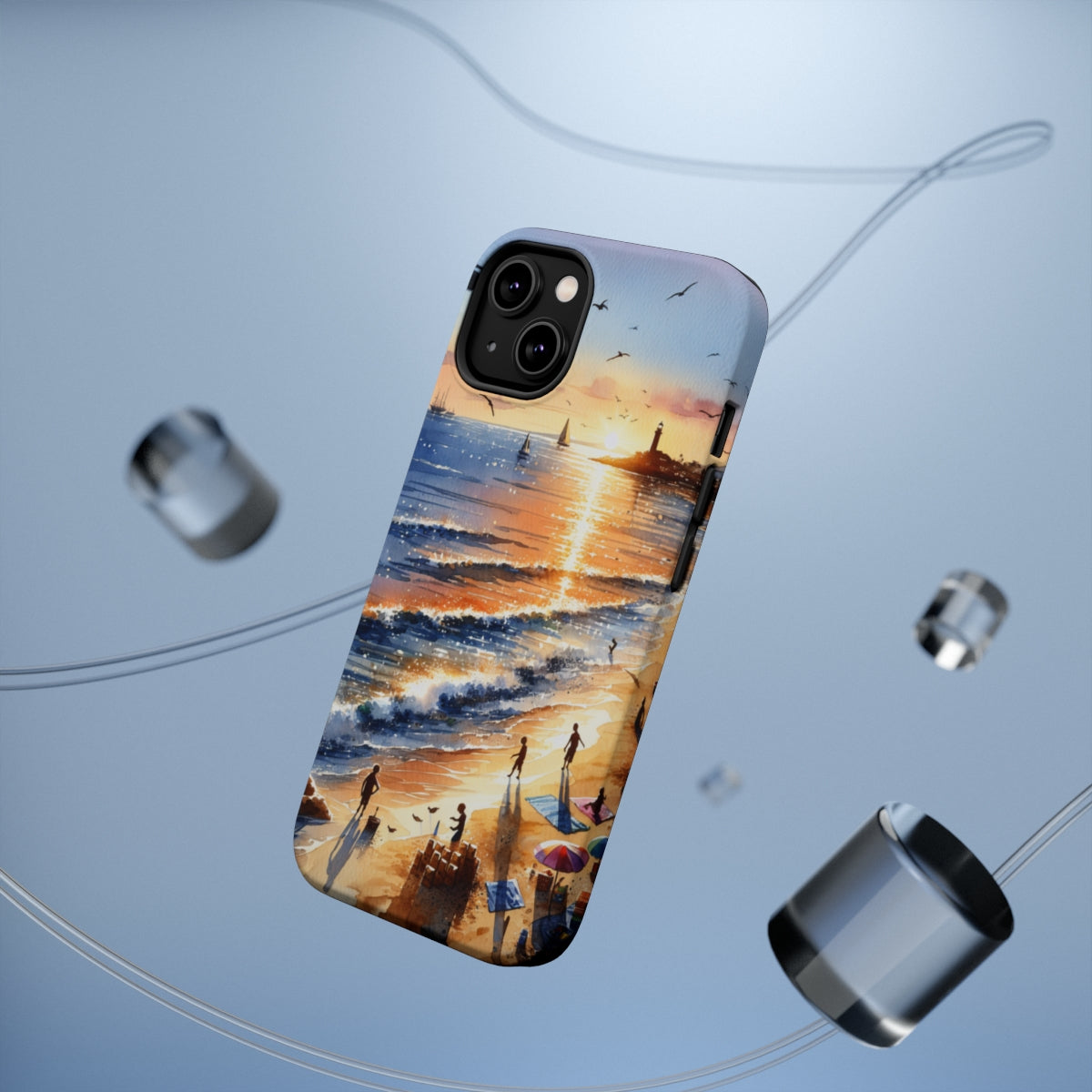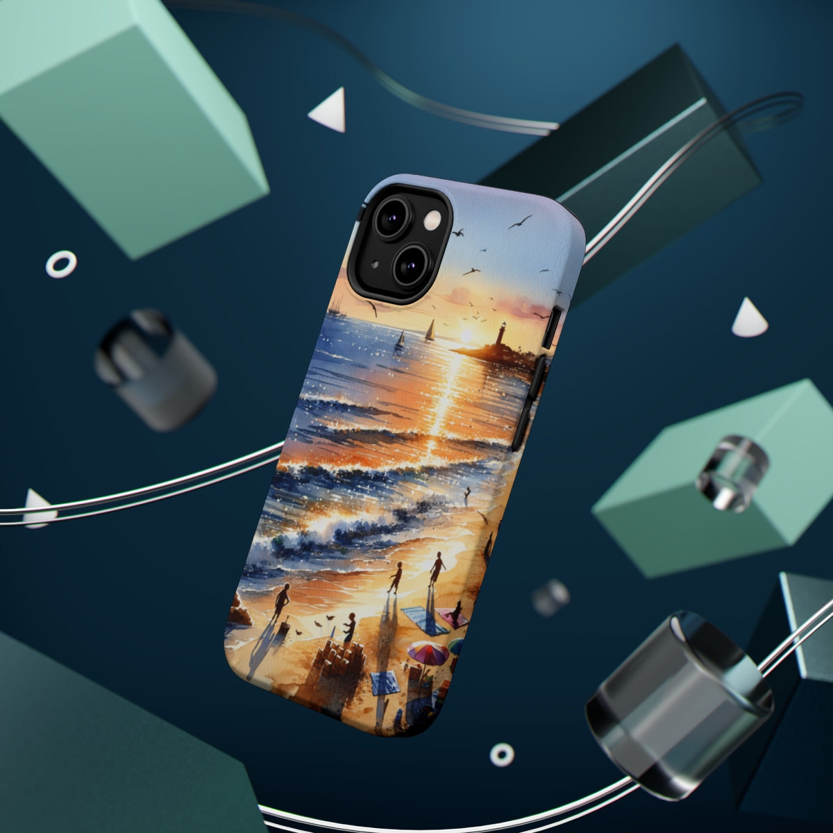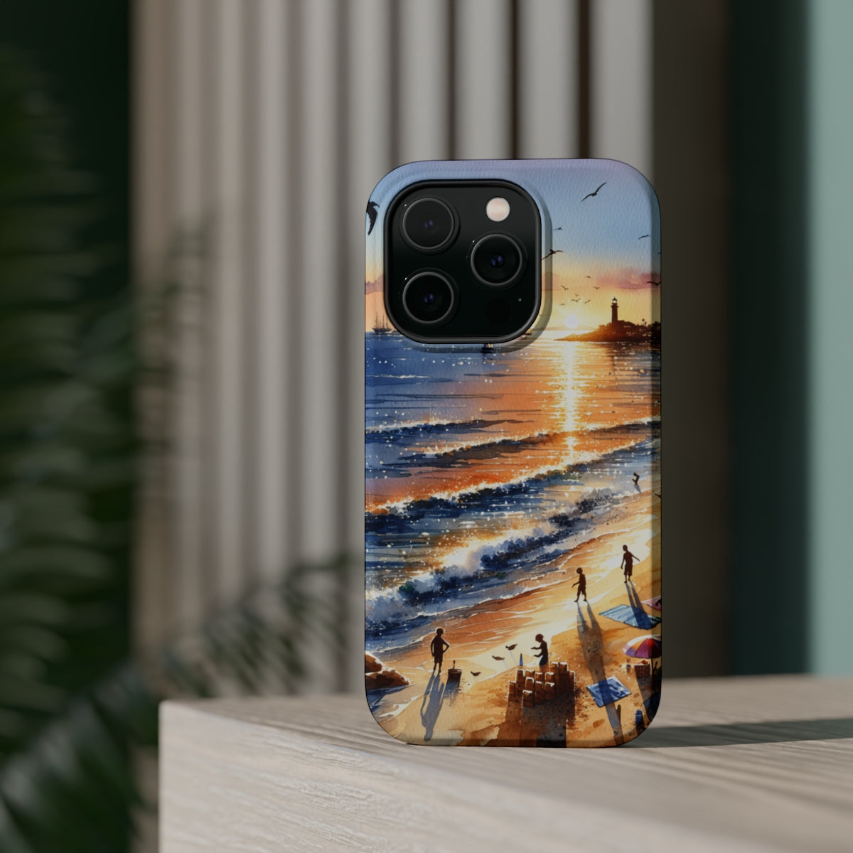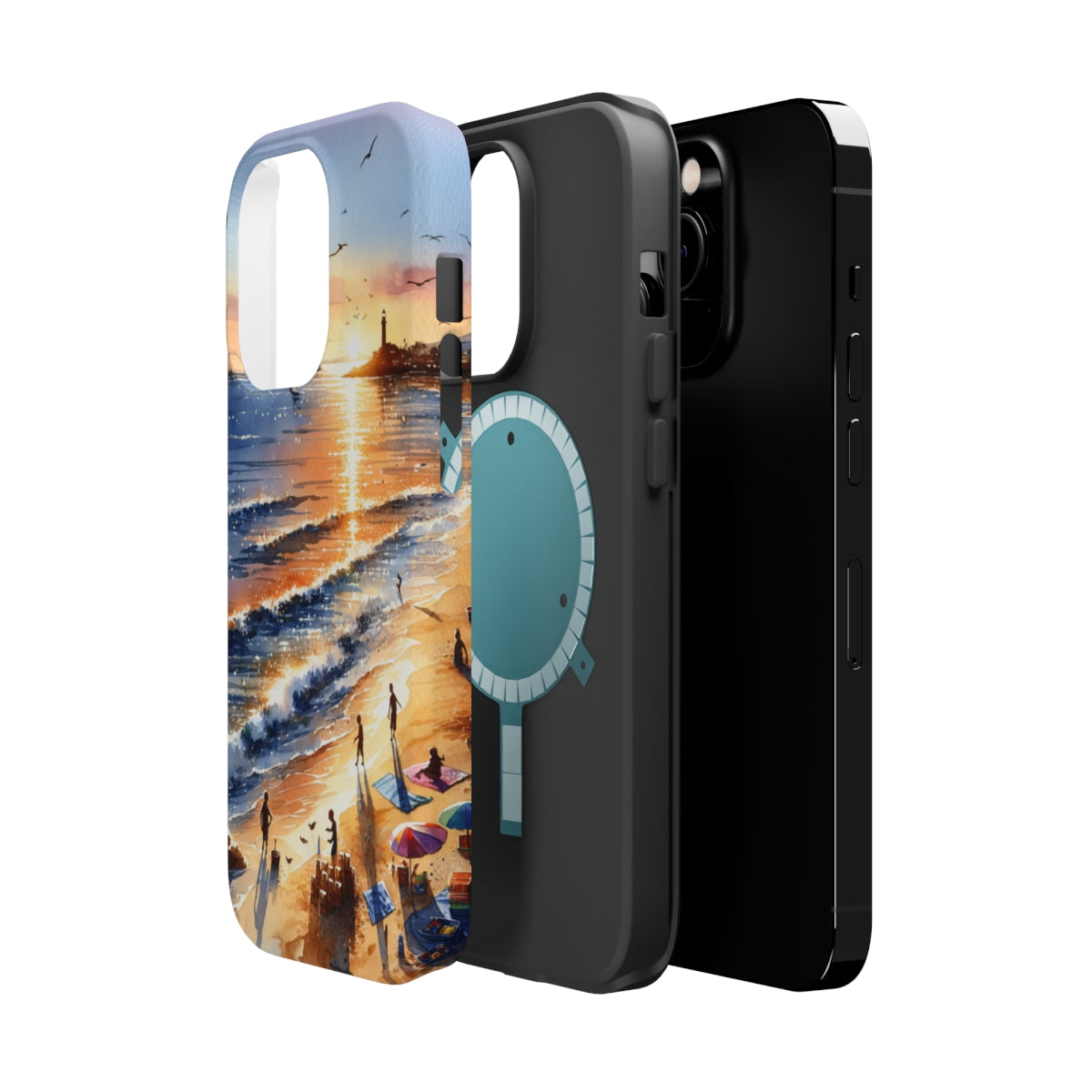 DistinctInk Tough Case for Apple iPhone, Compatible with MagSafe Charging - "Serene Sunset: A Vibrant Beachscape Painting"