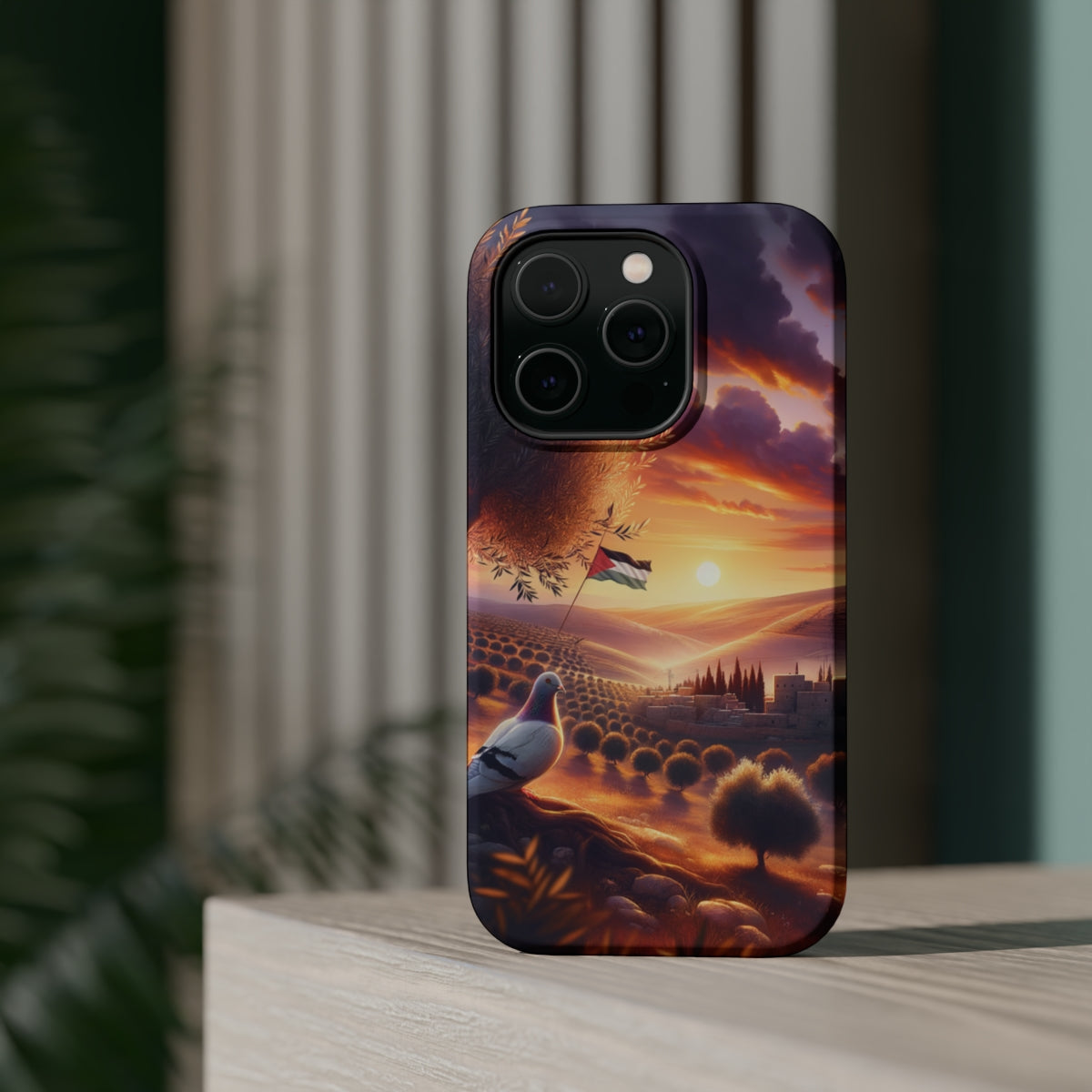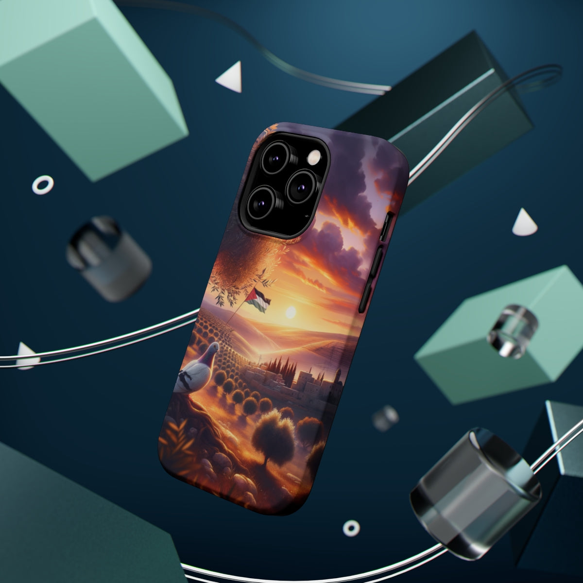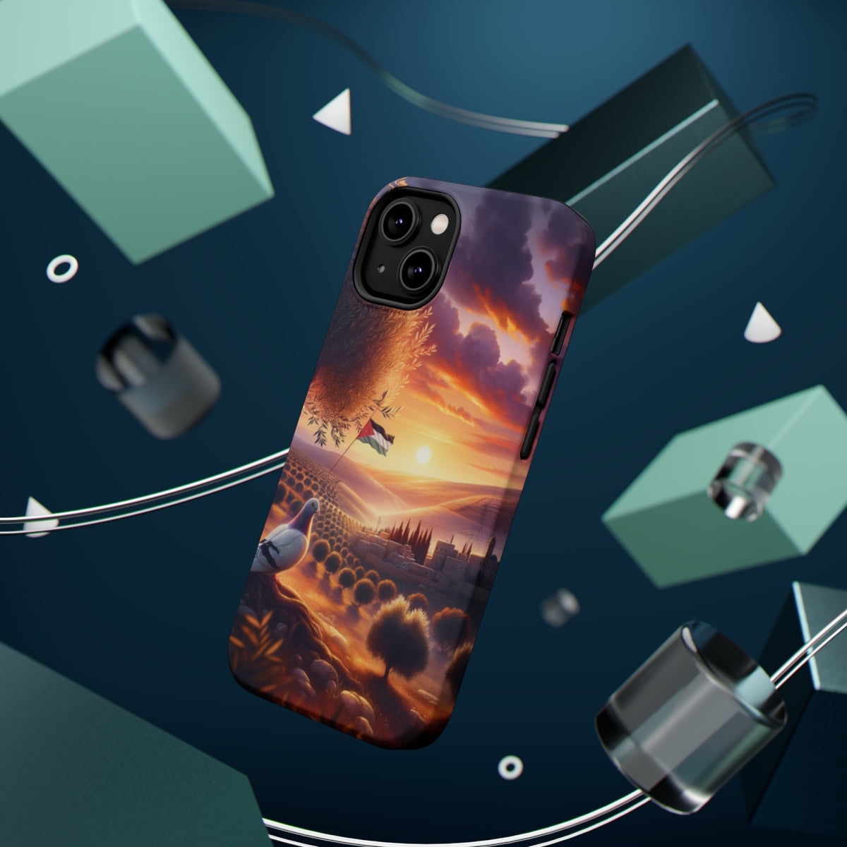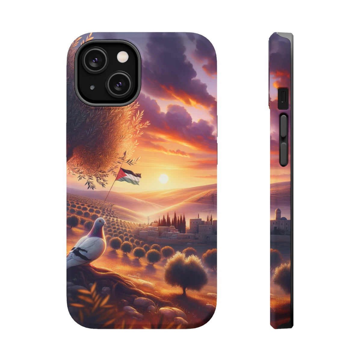 DistinctInk Tough Case for Apple iPhone, Compatible with MagSafe Charging - "Serenity and Hope: A Palestinian Sunset"