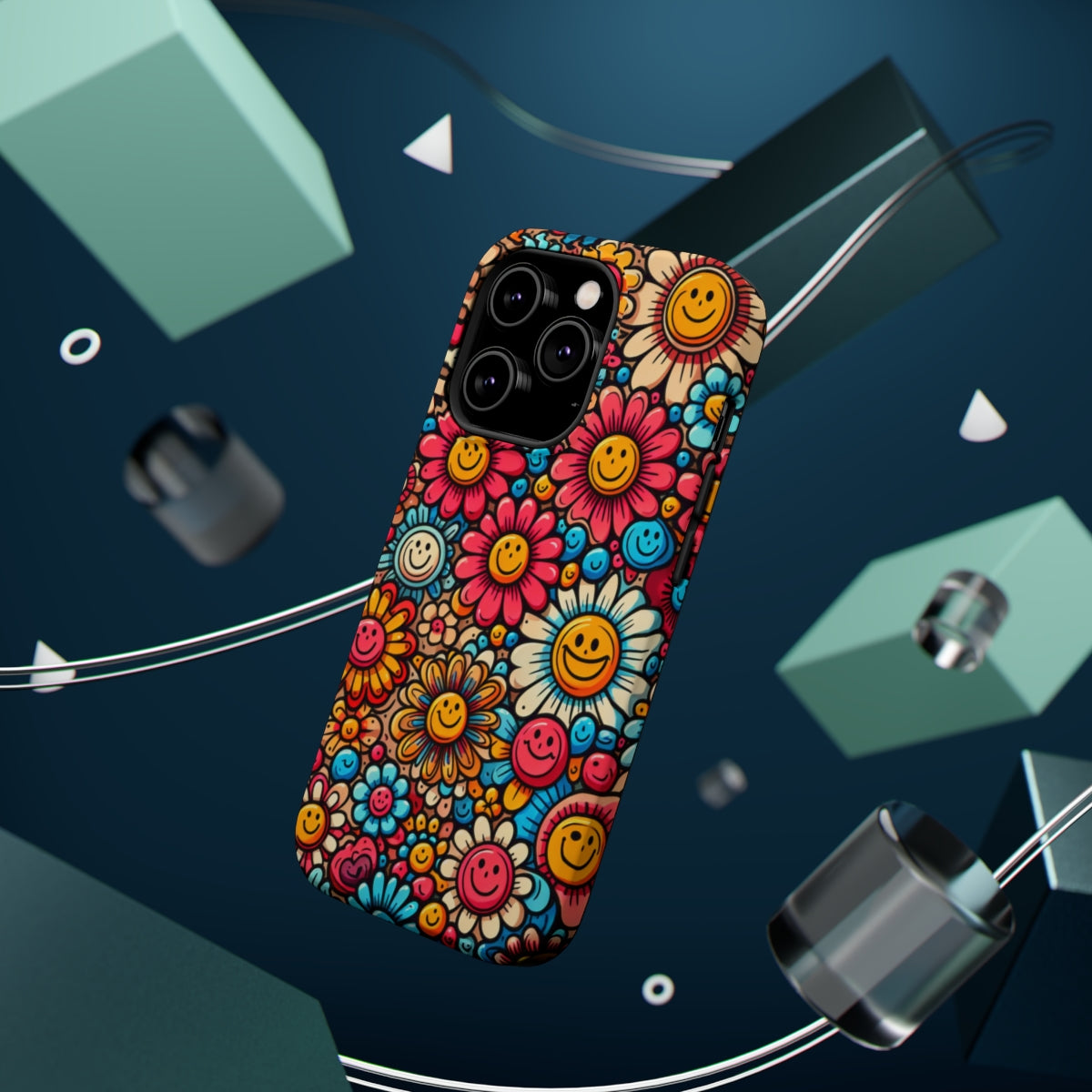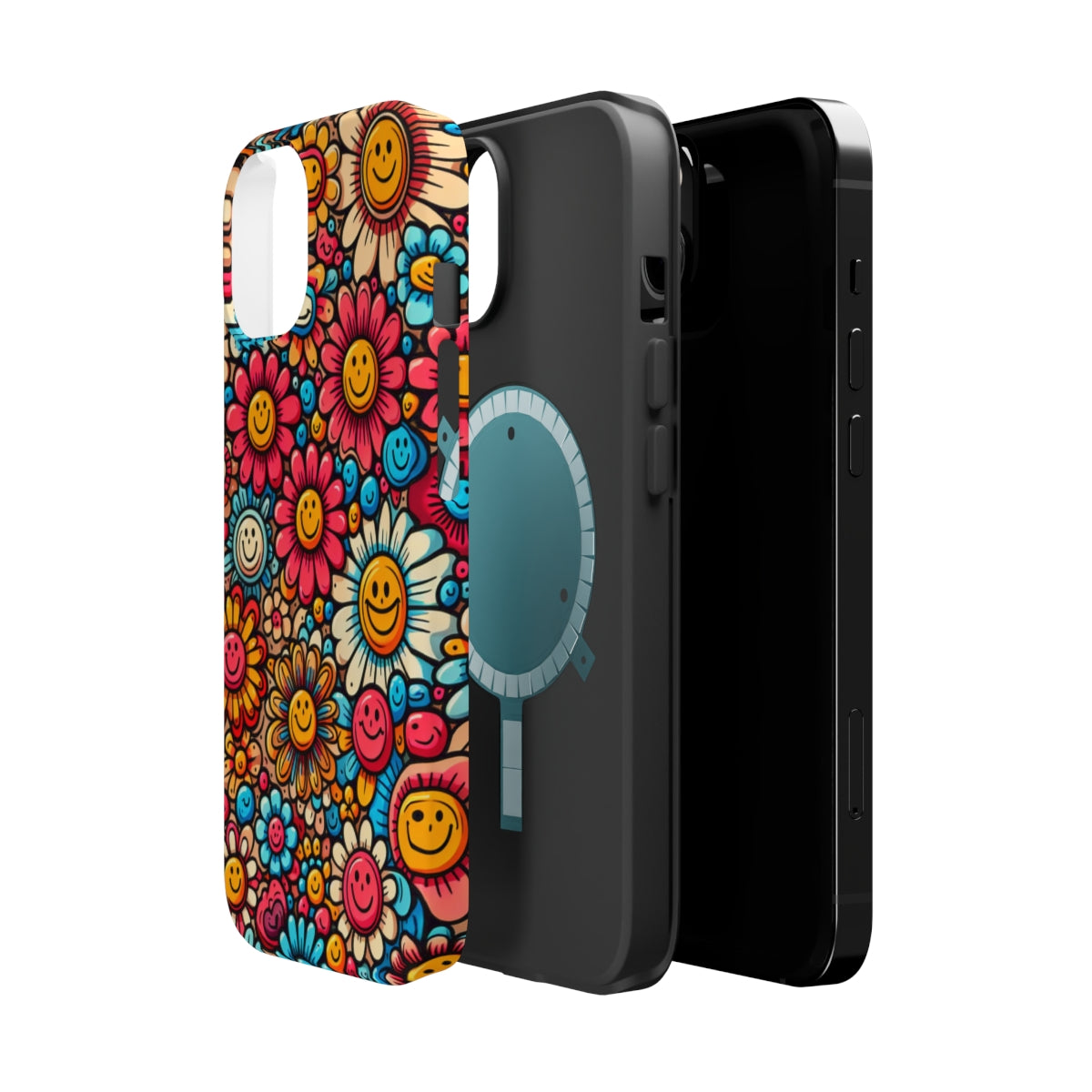 DistinctInk Tough Case for Apple iPhone, Compatible with MagSafe Charging - "Smiling Cartoon Flowers: A Vibrant Pattern"