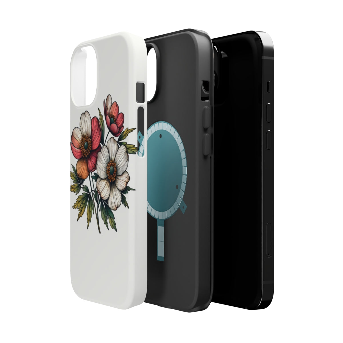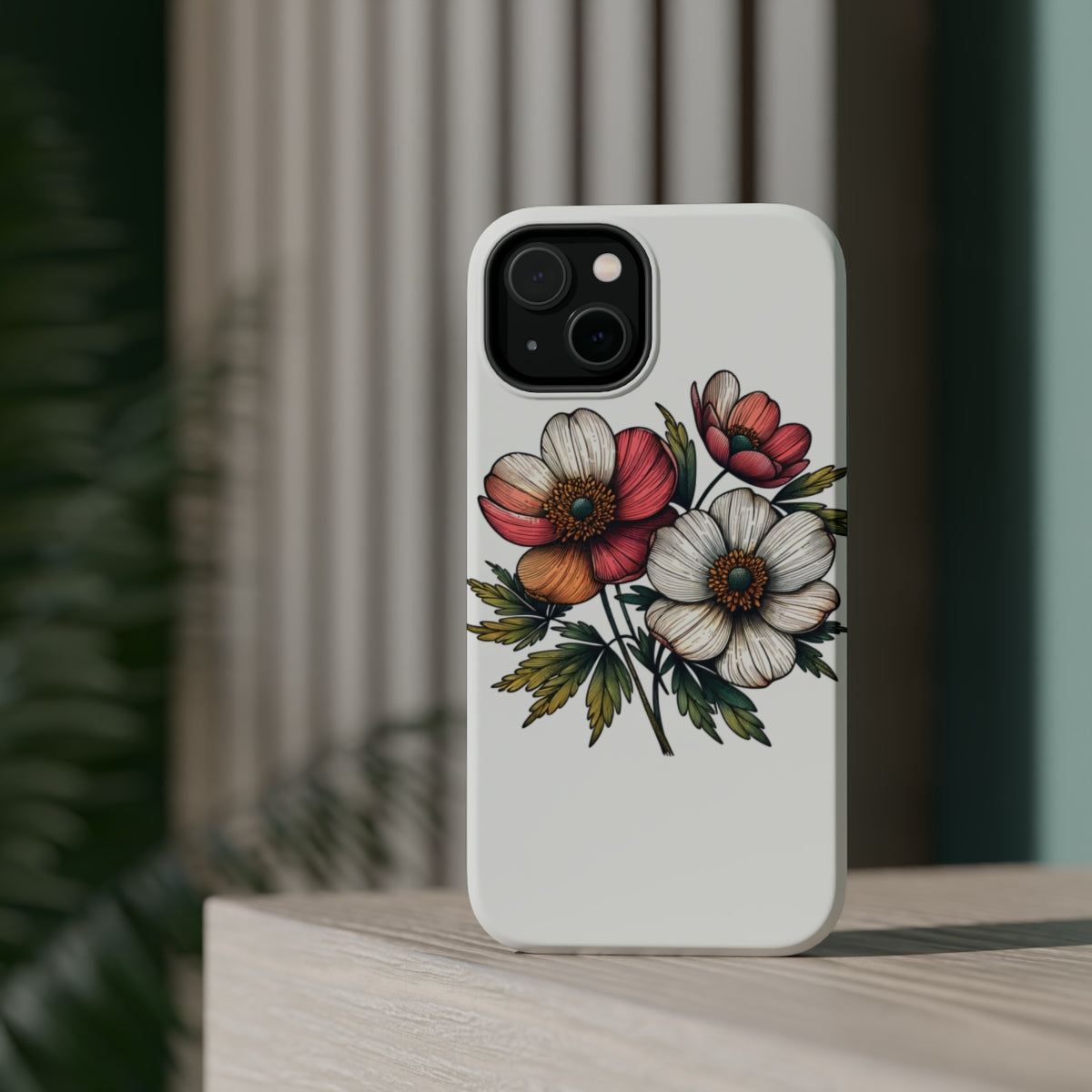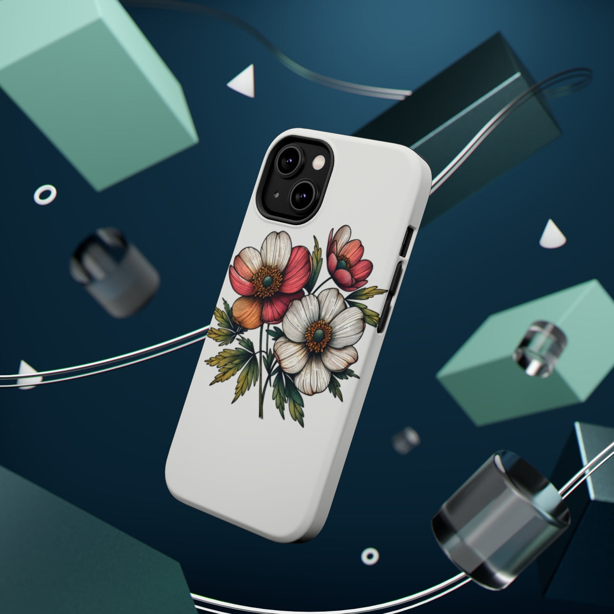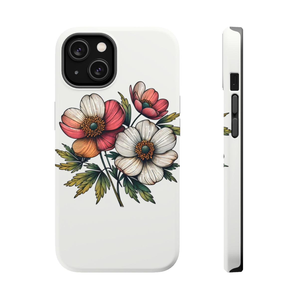 DistinctInk Tough Case for Apple iPhone, Compatible with MagSafe Charging - "Spring Blossoms: Elegance in Minimalism"