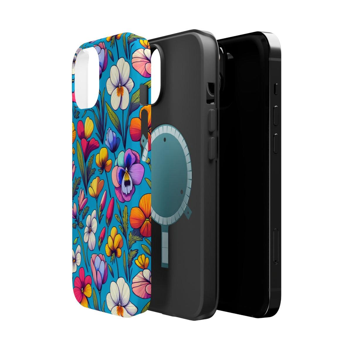 DistinctInk Tough Case for Apple iPhone, Compatible with MagSafe Charging - "Spring Blossoms: Vibrant, Minimalistic Floral Pattern"