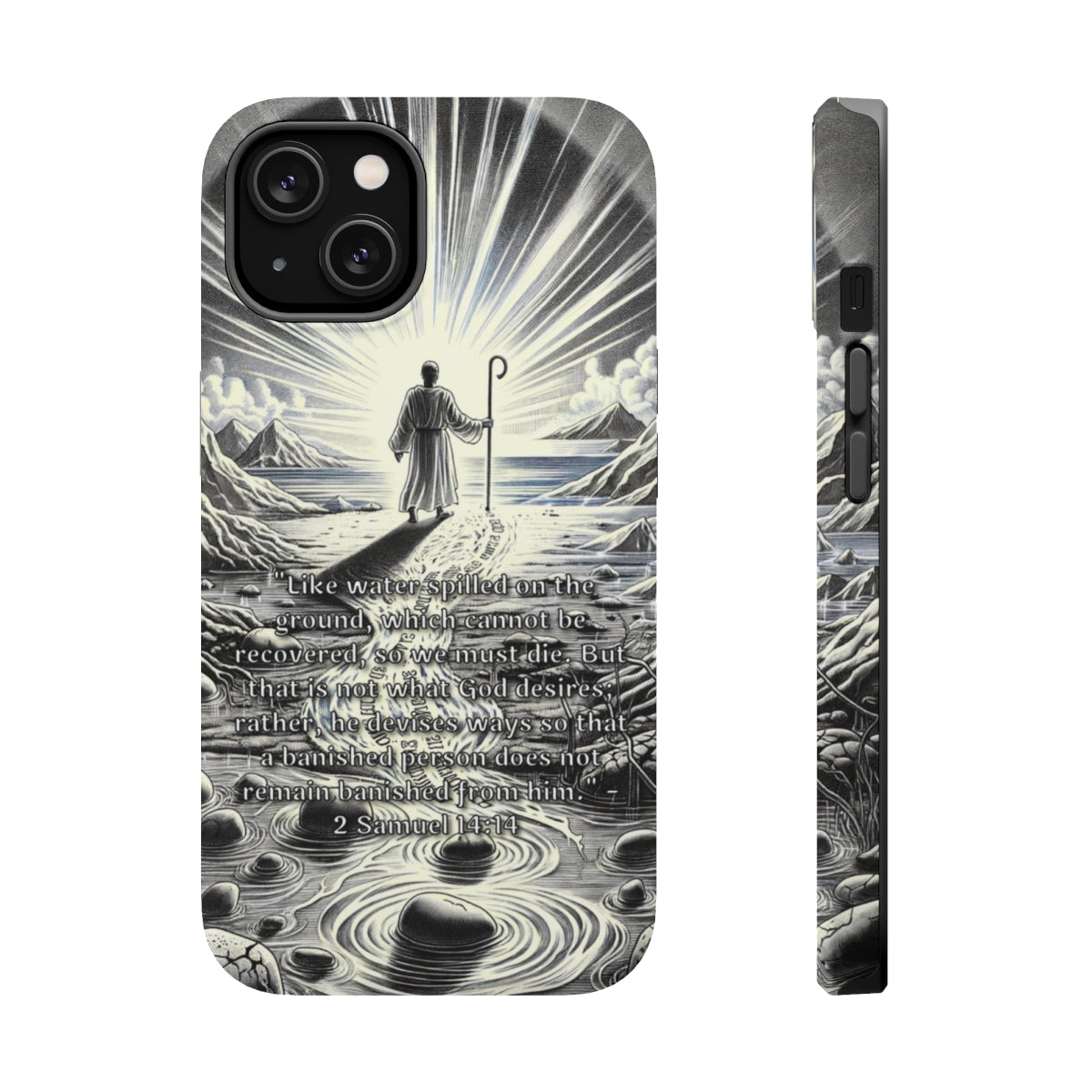 DistinctInk Tough Case for Apple iPhone, Compatible with MagSafe Charging - "The Divine Plan: Redemption for the Banished - 2 Samuel 14:14"