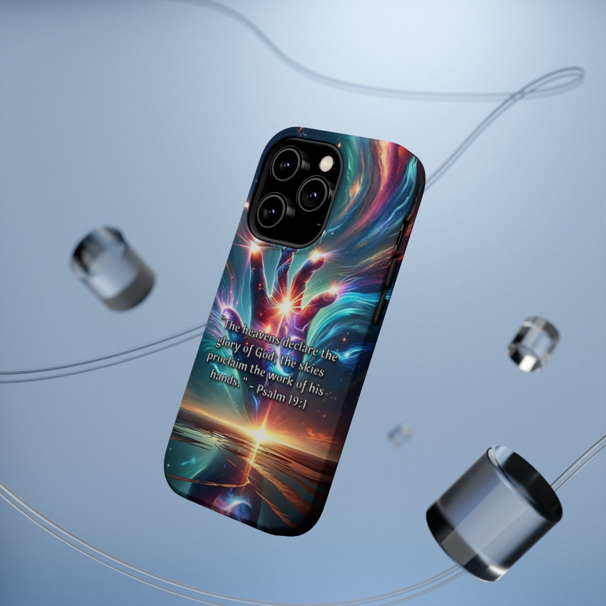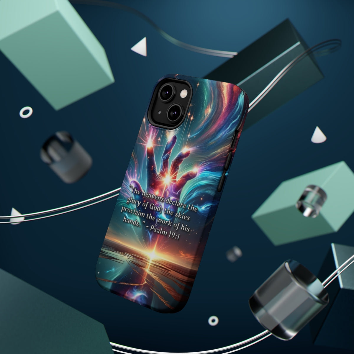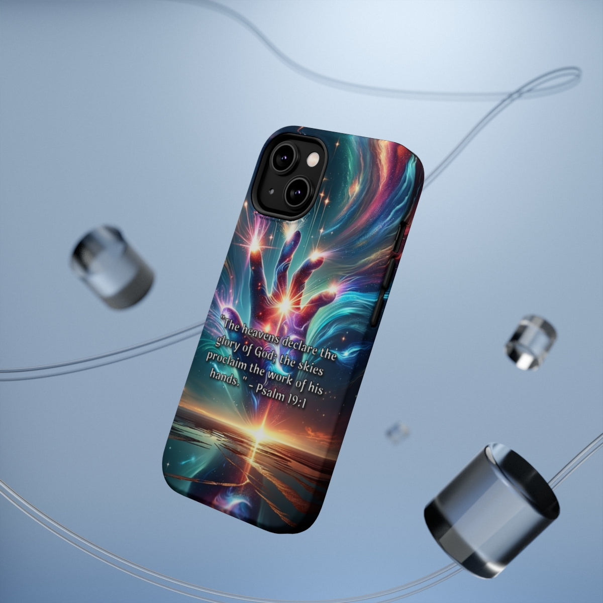 Made with premium materials, this ToughCase ensures your iPhone remains safe from the perils of everyday life, like clumsy hands and accidental drops. But what sets it apart from ordinary cases is the awe-inspiring design printed directly on the case. Behold The Divine Revelation: Psalm 19:1, a masterpiece that captures the essence of heavenly beauty.