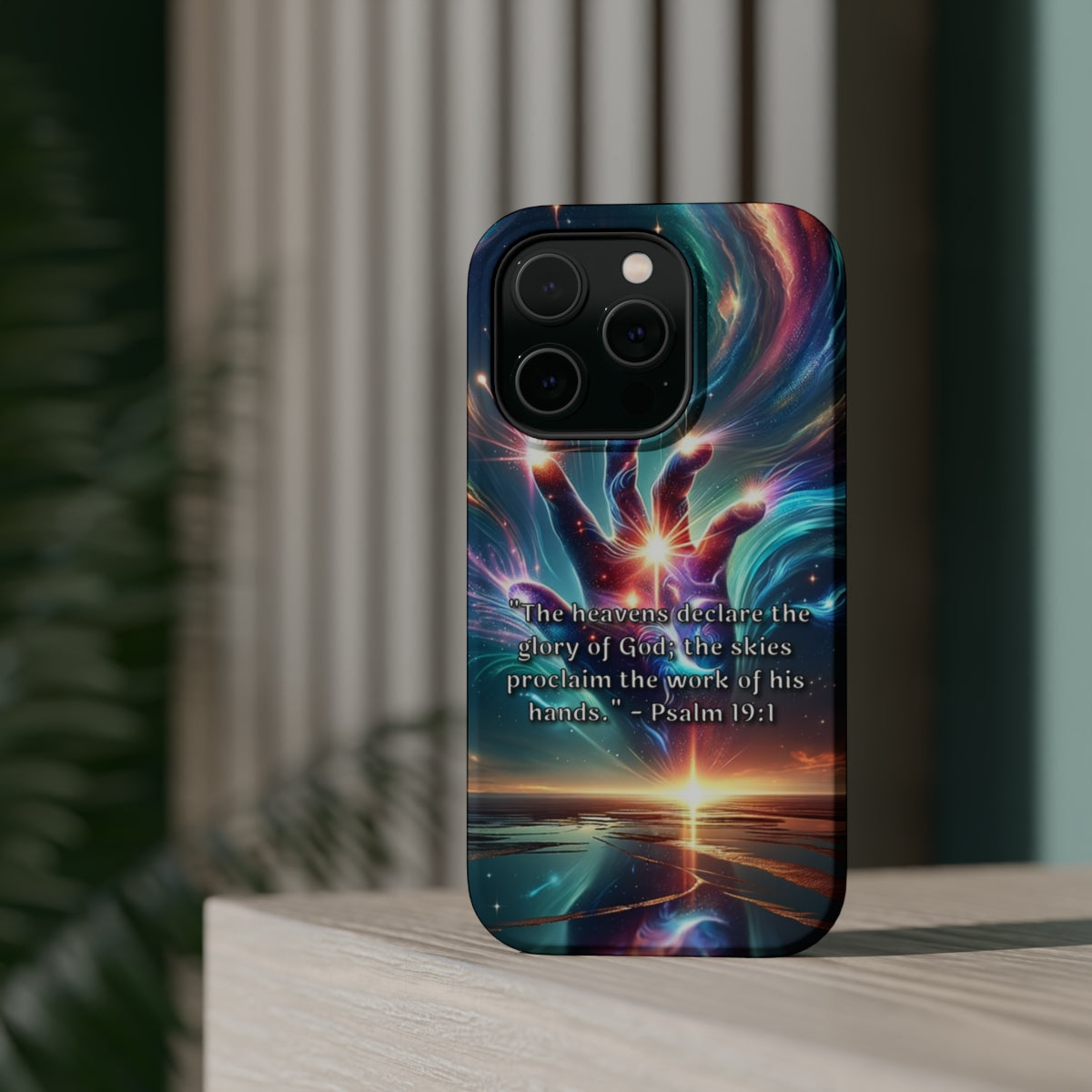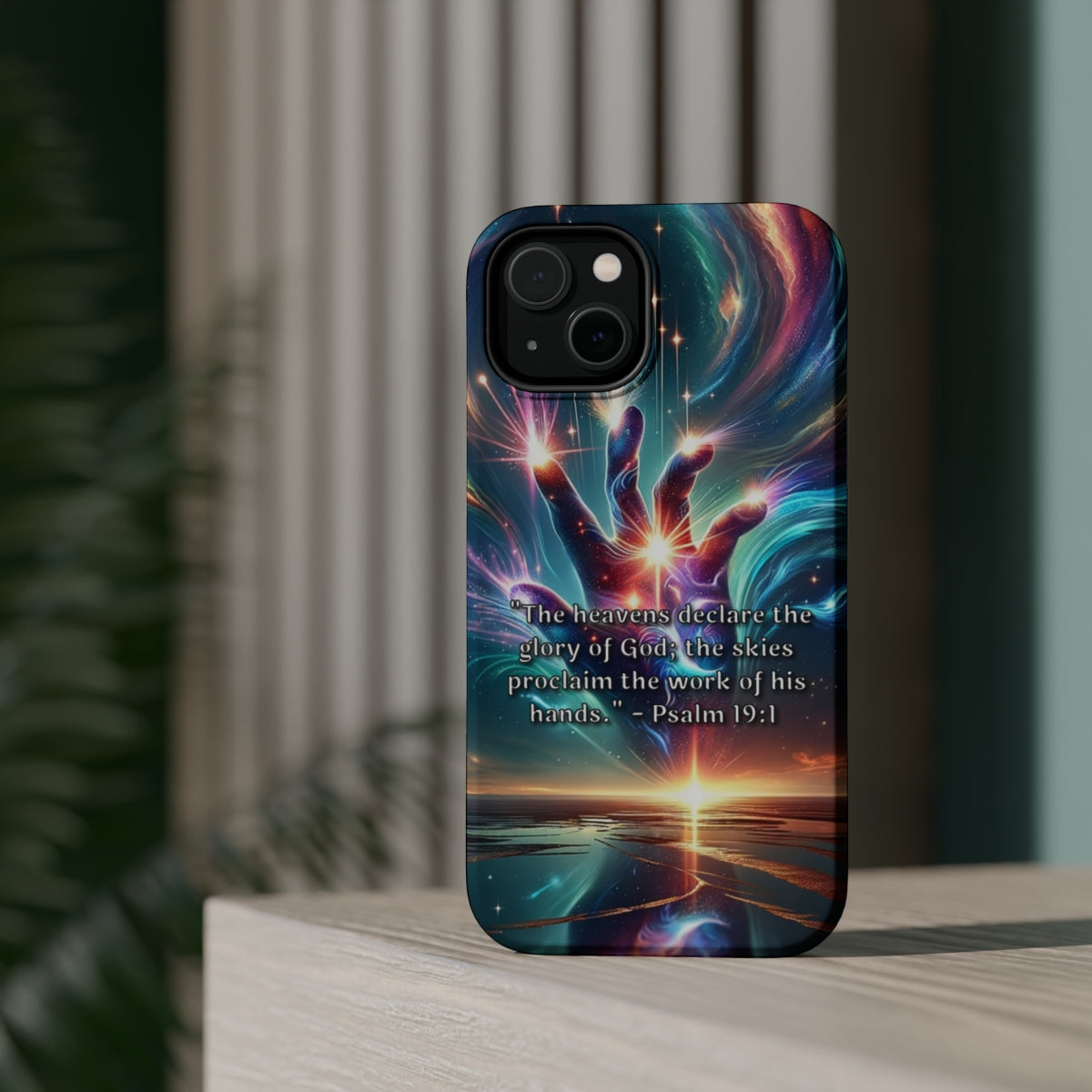 DistinctInk Tough Case for Apple iPhone, Compatible with MagSafe Charging - "The Divine Revelation: Psalm 19:1 Unveiling Heavenly Magnificence"