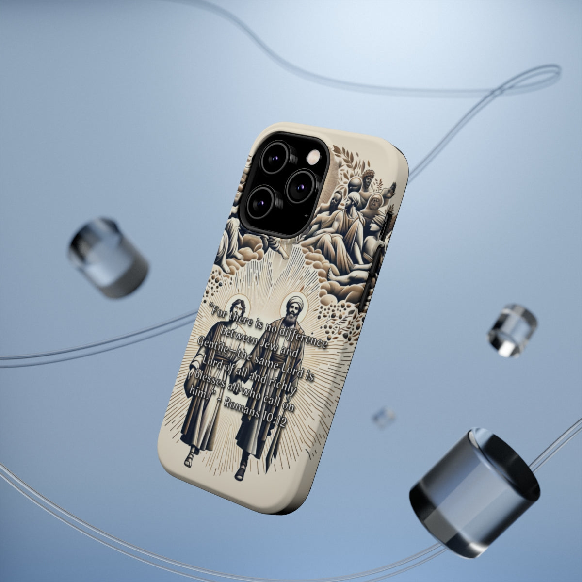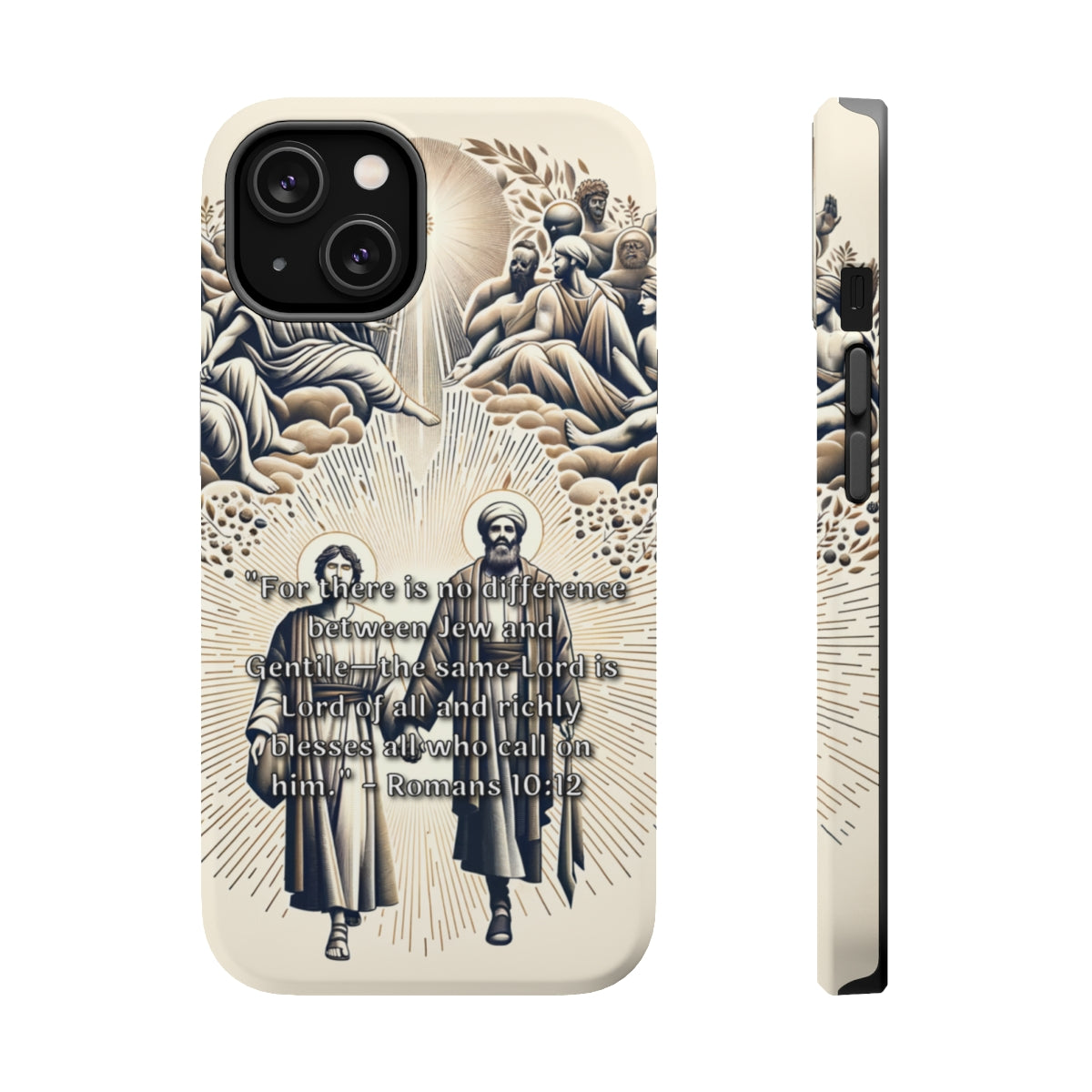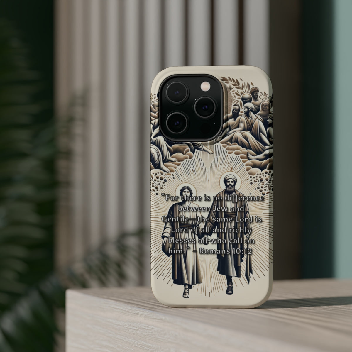DistinctInk Tough Case for Apple iPhone, Compatible with MagSafe Charging - "The Inclusive Blessings: Romans 10:12 Unites All Believers"