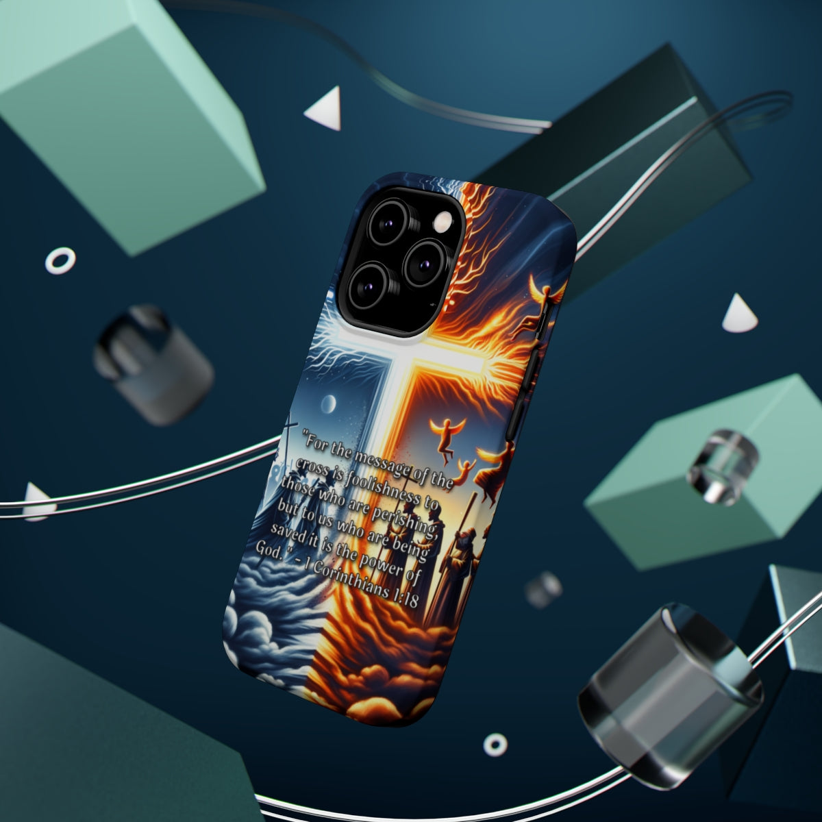 DistinctInk Tough Case for Apple iPhone, Compatible with MagSafe Charging - "The Power of God in the Foolishness of the Cross - 1 Corinthians 1:18"