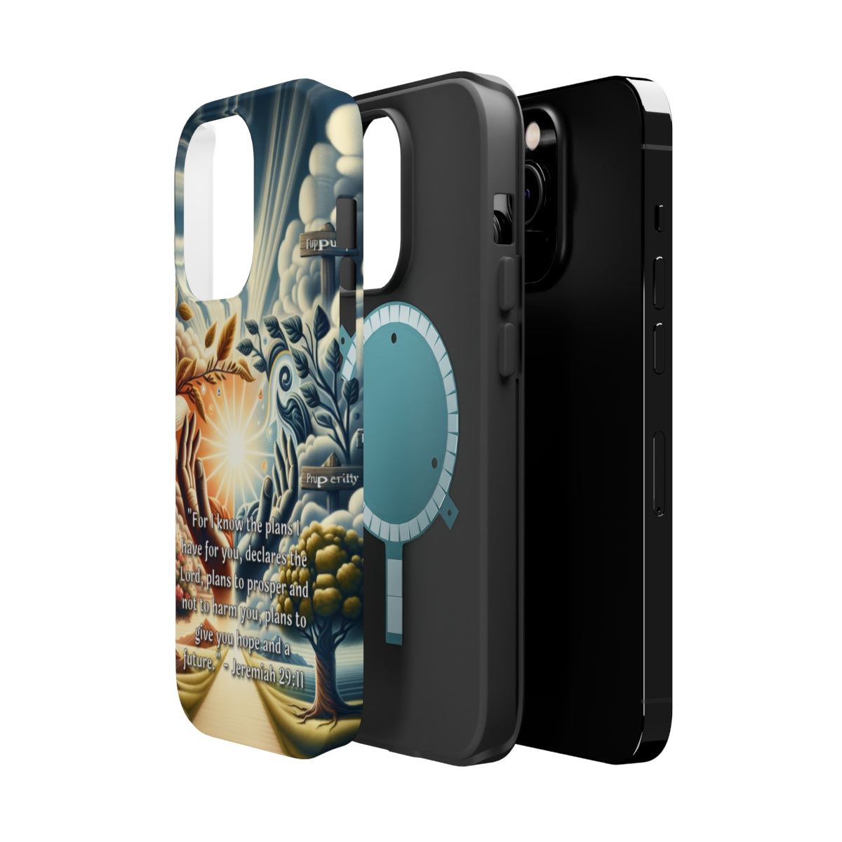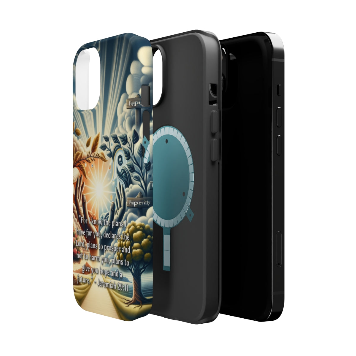 DistinctInk Tough Case for Apple iPhone, Compatible with MagSafe Charging - "The Promised Future: Jeremiah 29:11 - Plans of Prosperity"