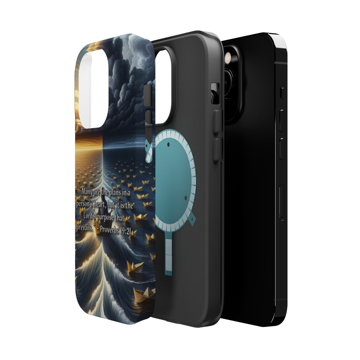DistinctInk Tough Case for Apple iPhone, Compatible with MagSafe Charging - "The Unshakeable Power of God's Purpose - Proverbs 19:21"