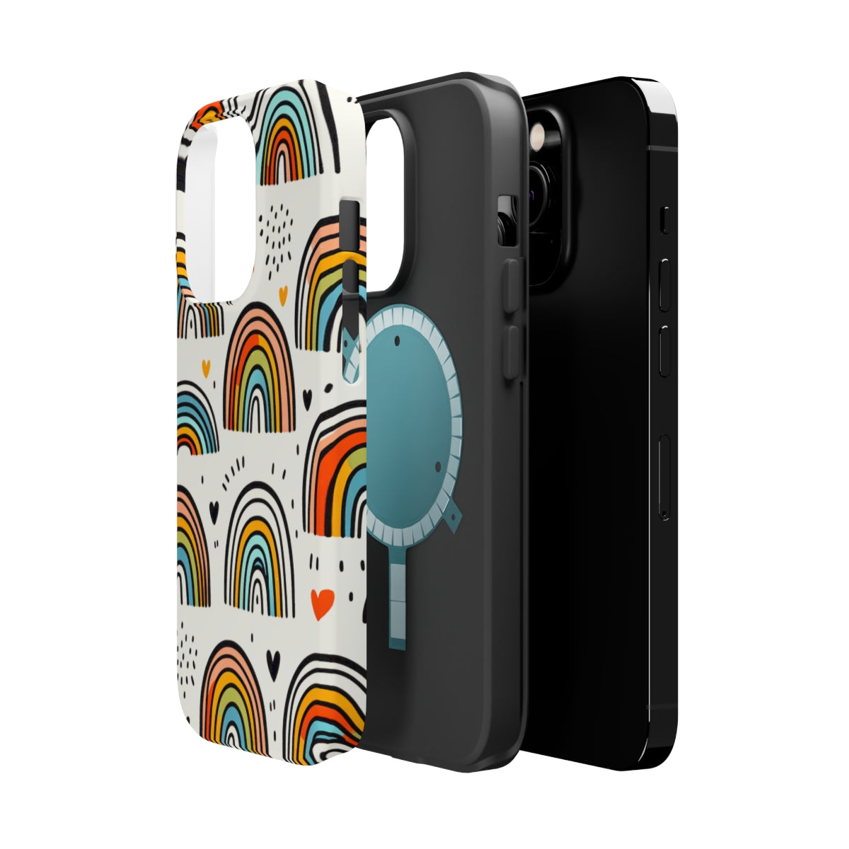 DistinctInk Tough Case for Apple iPhone, Compatible with MagSafe Charging - Title: "Playful and Vibrant Hand-Drawn Rainbow Pattern"
