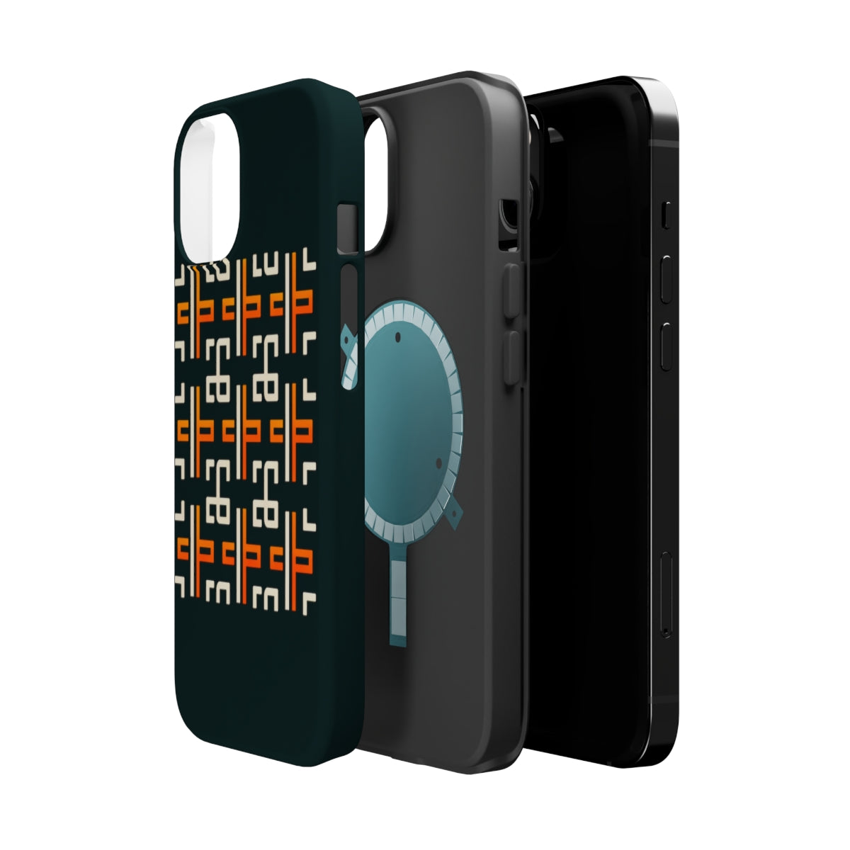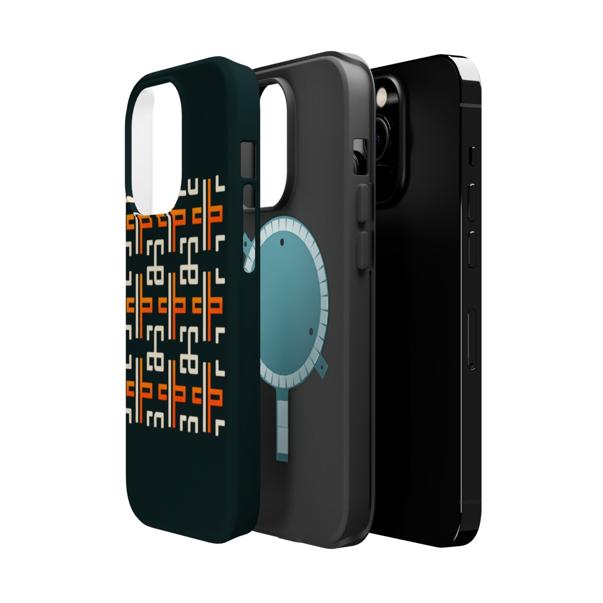 DistinctInk Tough Case for Apple iPhone, Compatible with MagSafe Charging - Title: "Vibrant Bold Crosses on Black" Image: [Attached image file]