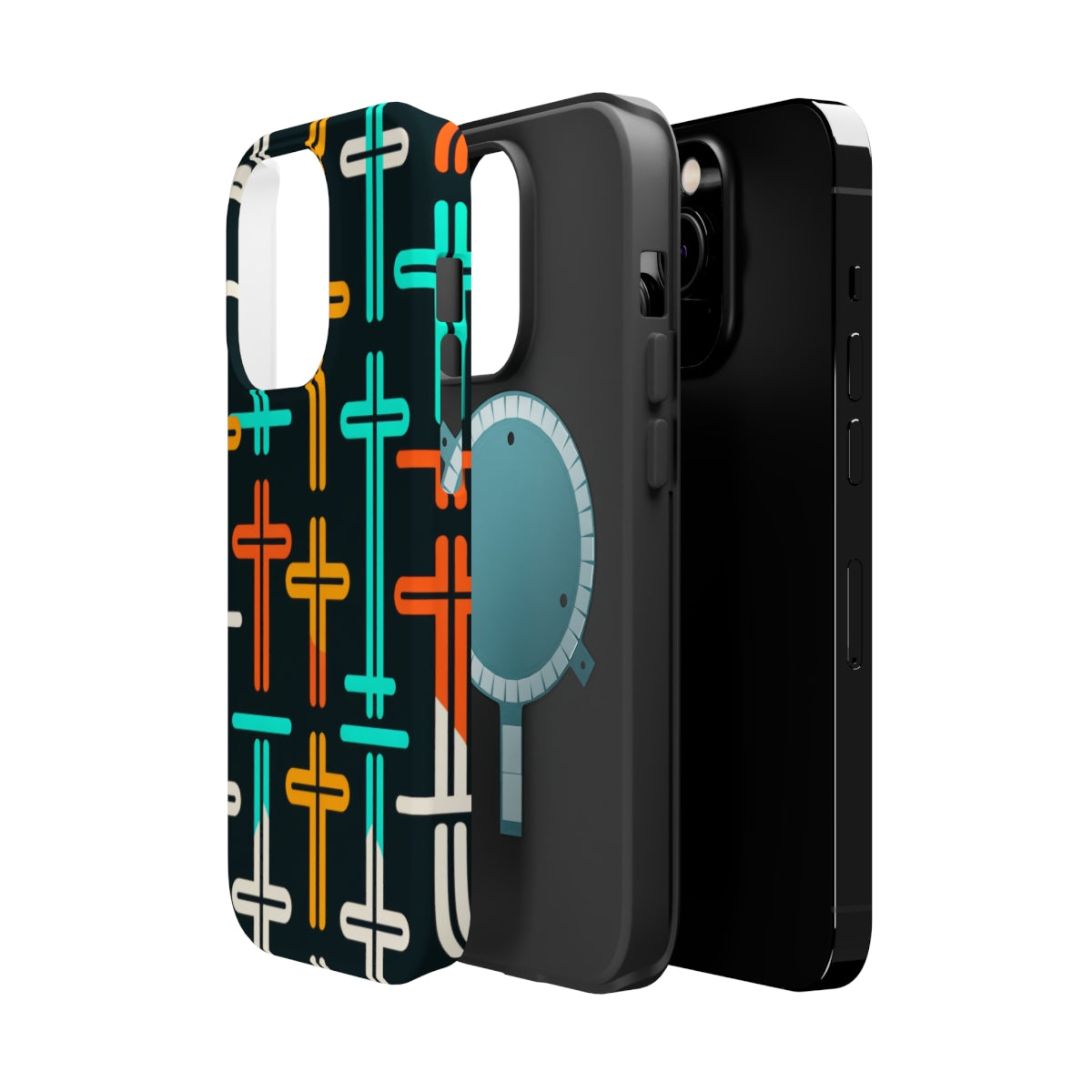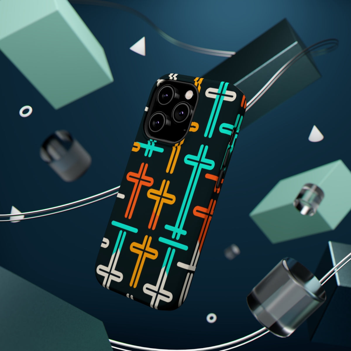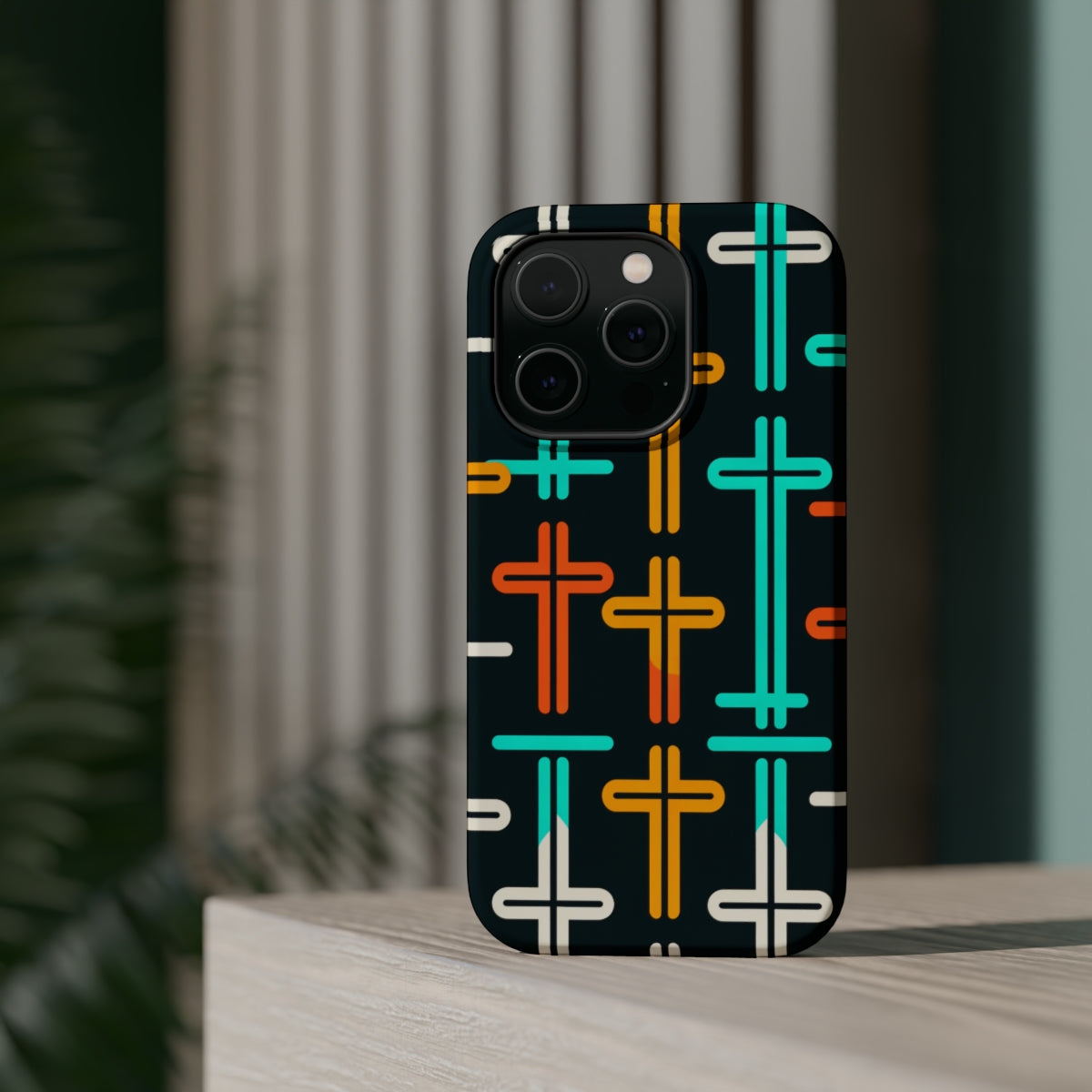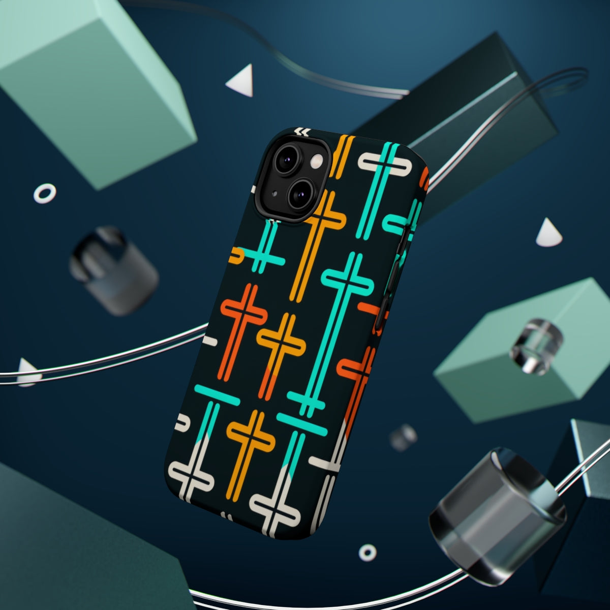 DistinctInk Tough Case for Apple iPhone, Compatible with MagSafe Charging - Title: "Vivid Symmetry: The Rhythmic Cross Pattern"