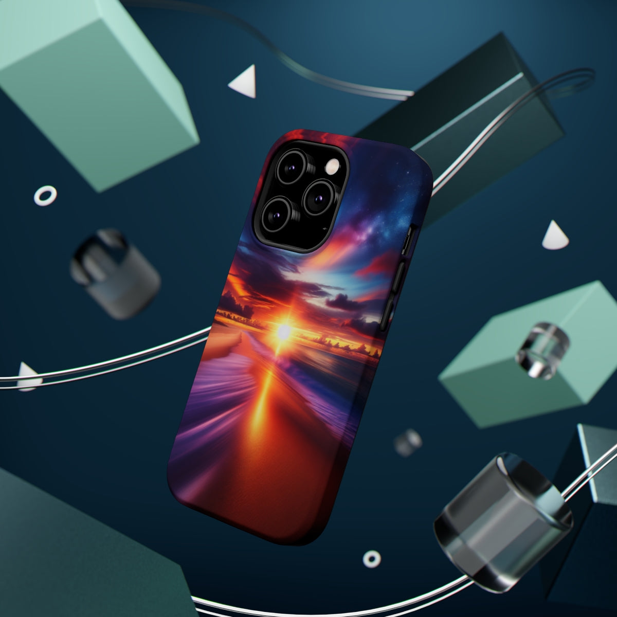 DistinctInk Tough Case for Apple iPhone, Compatible with MagSafe Charging - "Tranquil Dusk: A Captured Movement"
