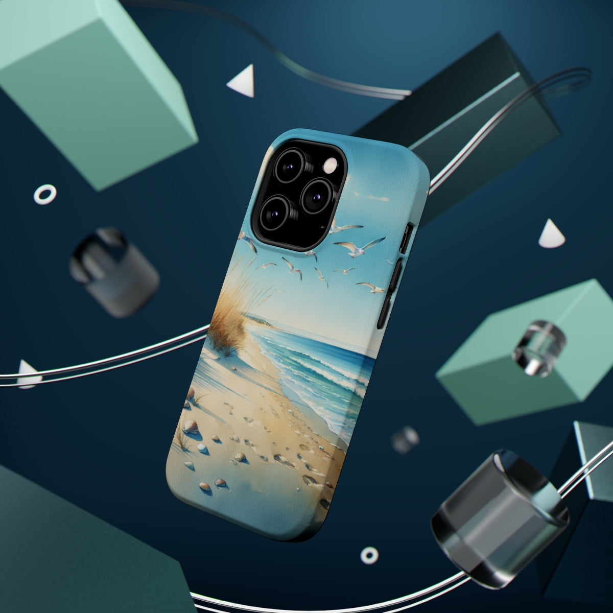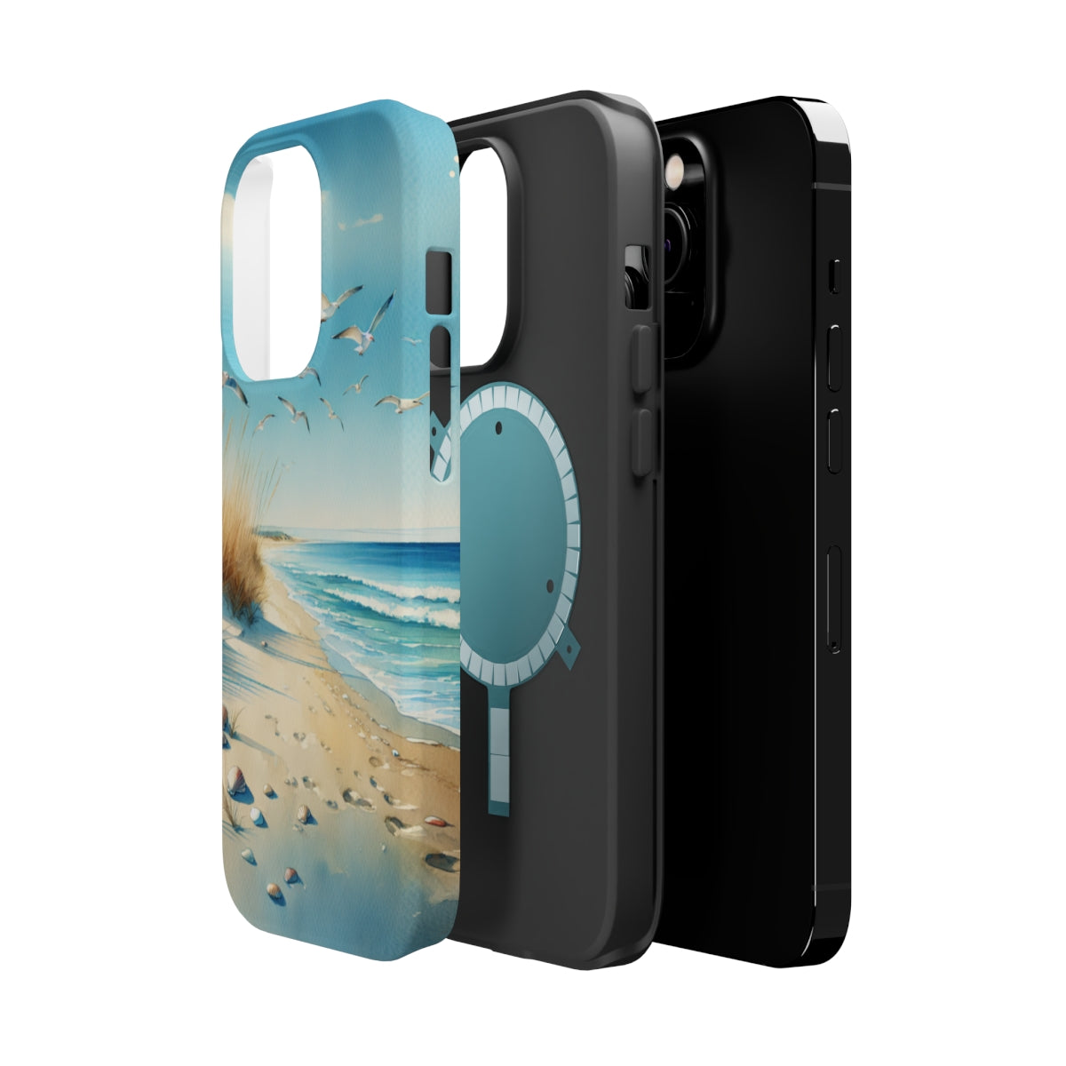 DistinctInk Tough Case for Apple iPhone, Compatible with MagSafe Charging - "Tranquil Serenity: A Watercolour Beach Scene"