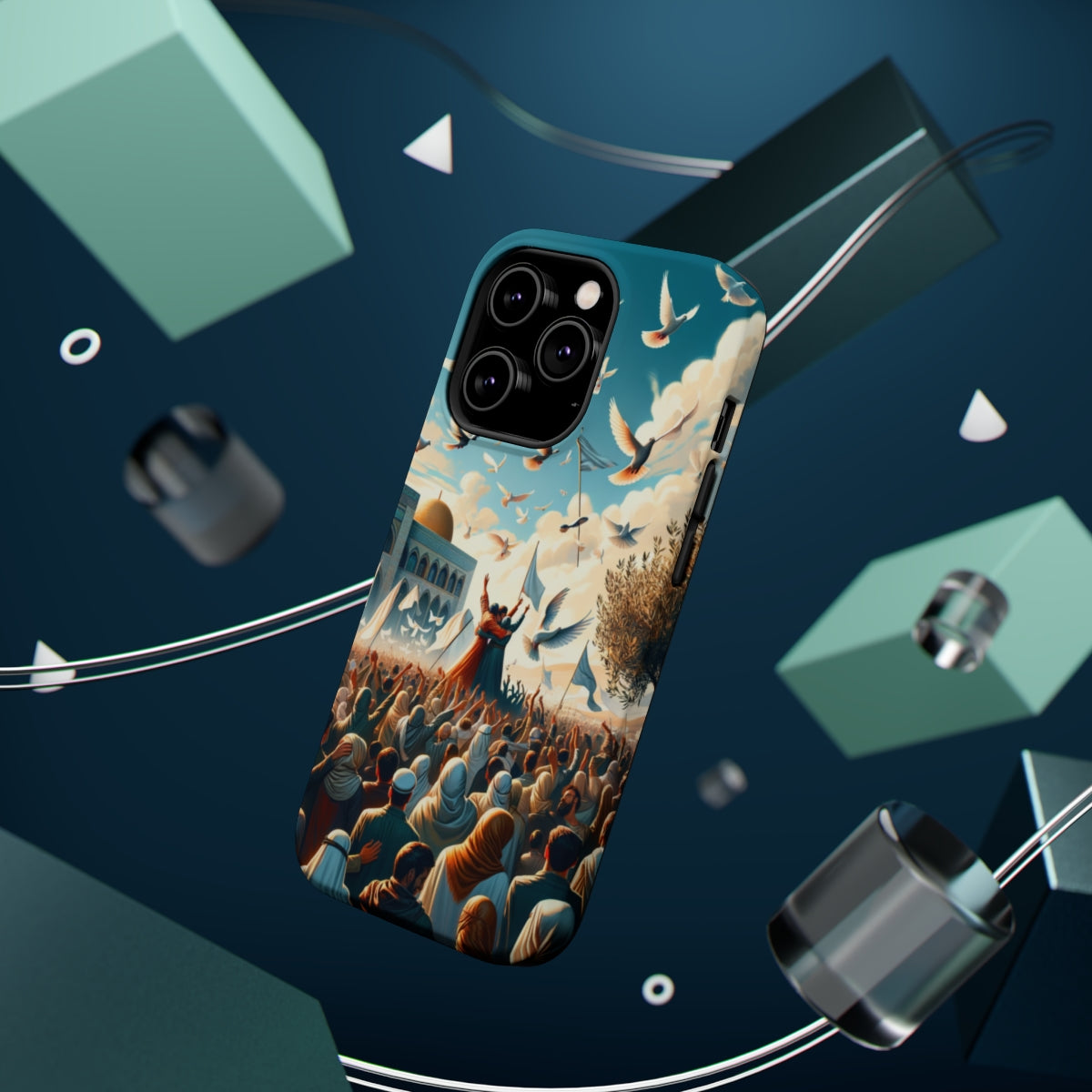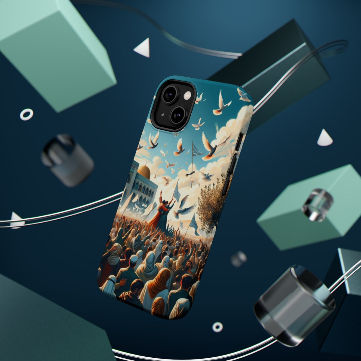 DistinctInk Tough Case for Apple iPhone, Compatible with MagSafe Charging - "Unity and Harmony: Embracing Peace in the Middle-East"