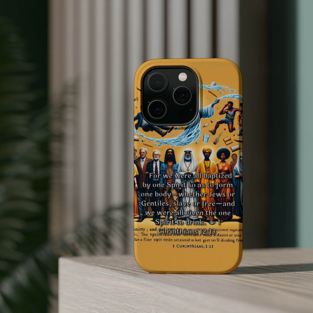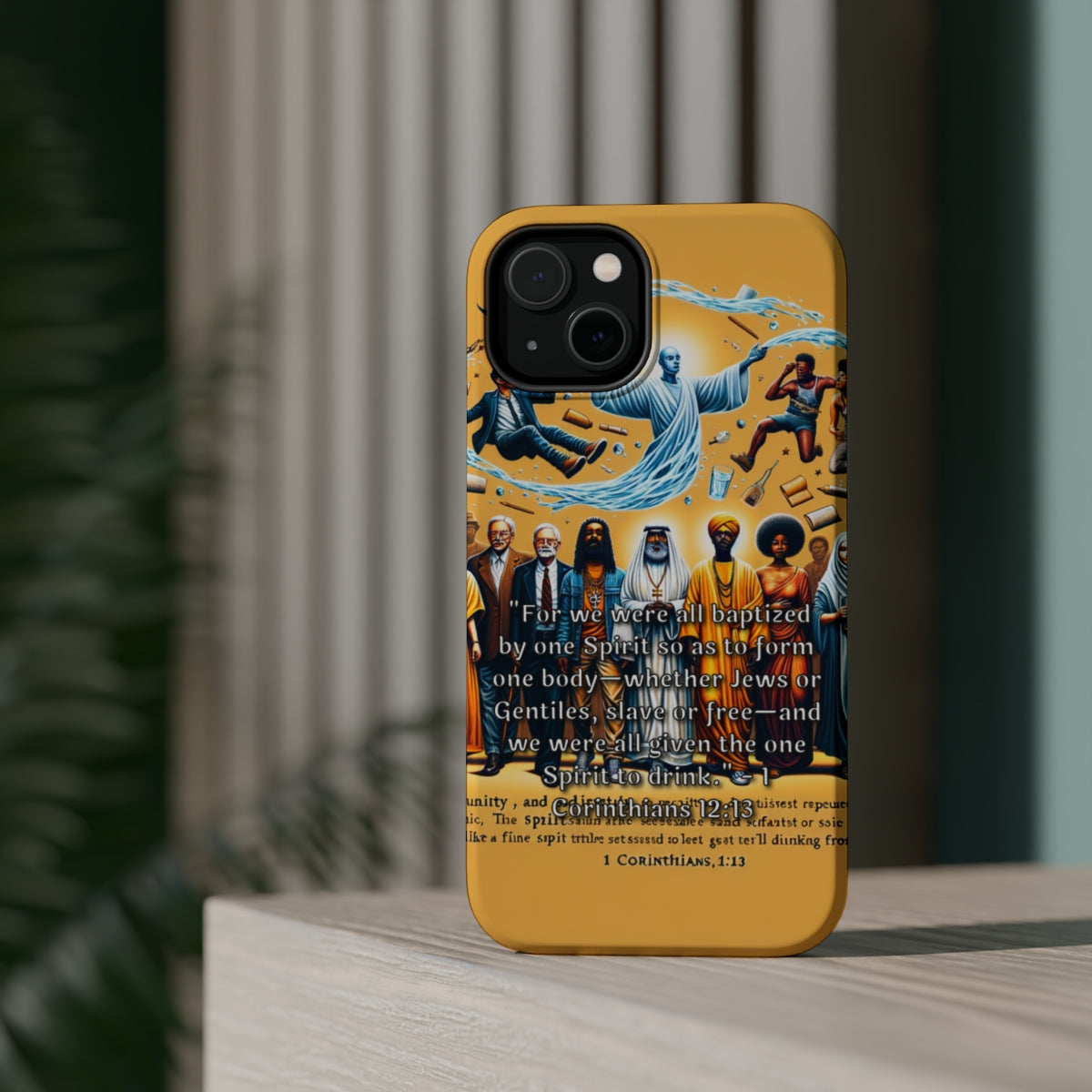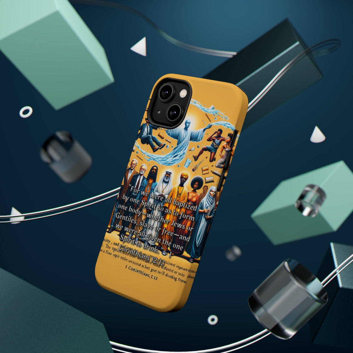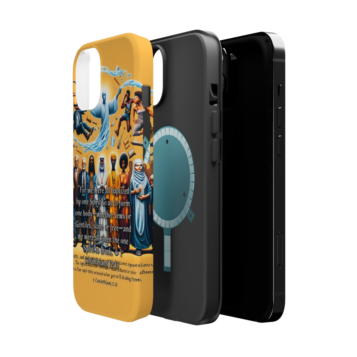 DistinctInk Tough Case for Apple iPhone, Compatible with MagSafe Charging - "Unity through Baptism: 1 Corinthians 12:13 Explained"
