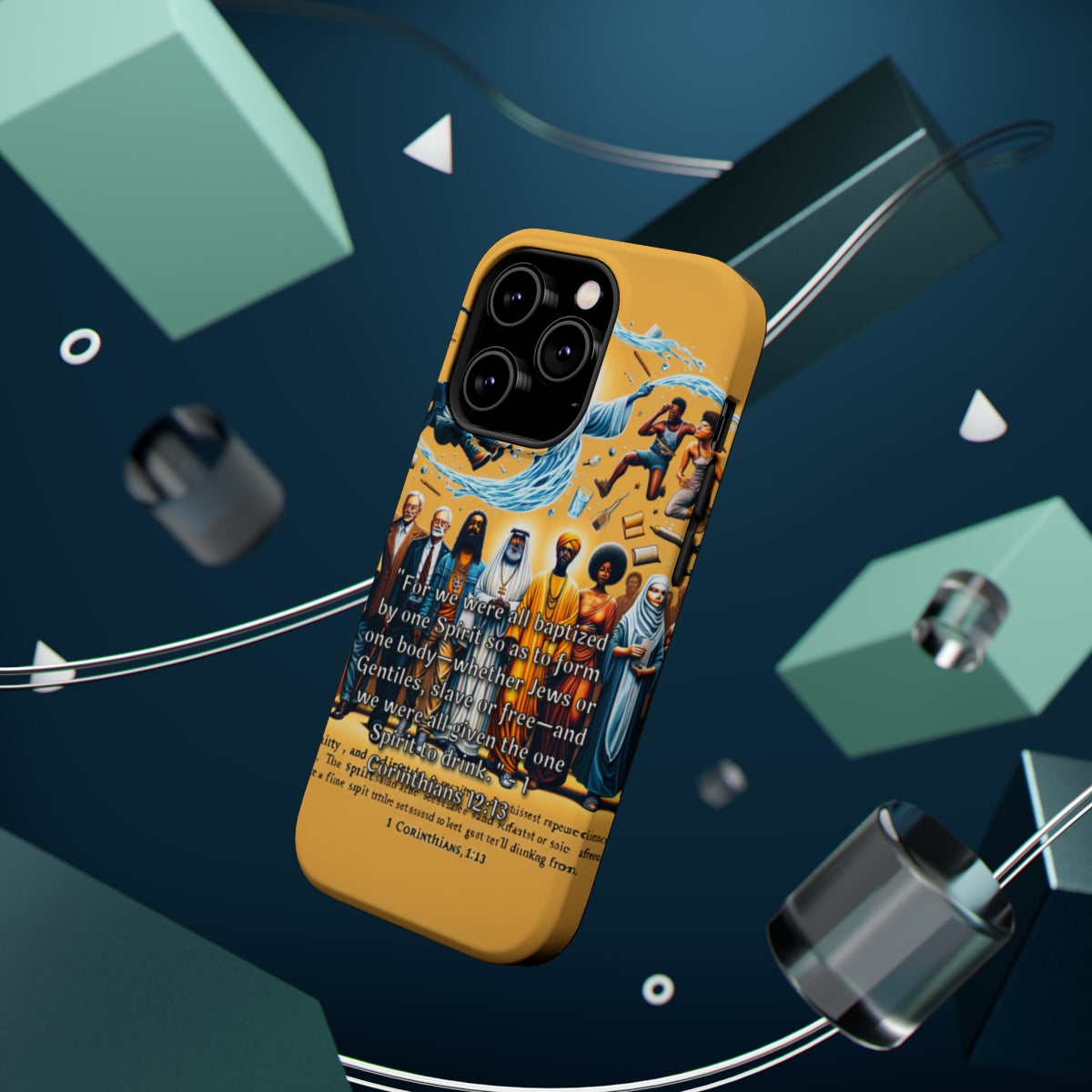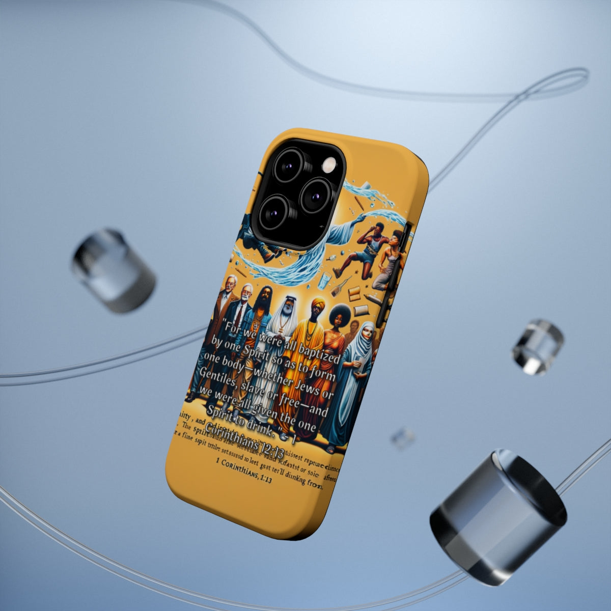 Introducing the DistinctInk ToughCase for Apple iPhone, the perfect fusion of style, durability, and biblical wisdom! With compatibility for Wireless charging, this case keeps your phone powered up and protected in one fell swoop. But that's not all, folks! Our hilarious design, "Unity through Baptism: 1 Corinthians 12:13 Explained," takes center stage on this eye-catching case. Created with a keyword-rich approach, this enchanting design will have fellow believers chuckling while sharing the good Word. Crafted from high-quality materials, this ToughCase can withstand the toughest of drops and impacts, ensuring your iPhone stays safe and secure. And thanks to the Wireless compatibility, you can charge your device without any hassle or fuss. Now, let's talk about that design. Strap on your seatbelts because "Unity through Baptism: 1 Corinthians 12:13 Explained" will have you rolling on the floor, almost as if you were baptized by laughter! This hilarious design depicts a congregation of little fish wearing swim trunks, snorkels, and floaties, complete with a splashy message of unity straight from Corinthians. So, what are you waiting for? Grab the DistinctInk ToughCase for Apple iPhone compatible with Wireless charging and bring a little humor and biblical inspiration to your phone's wardrobe. With its unbeatable durability and side-splitting design, this case is a must-have for any believer who loves a good laugh. Don