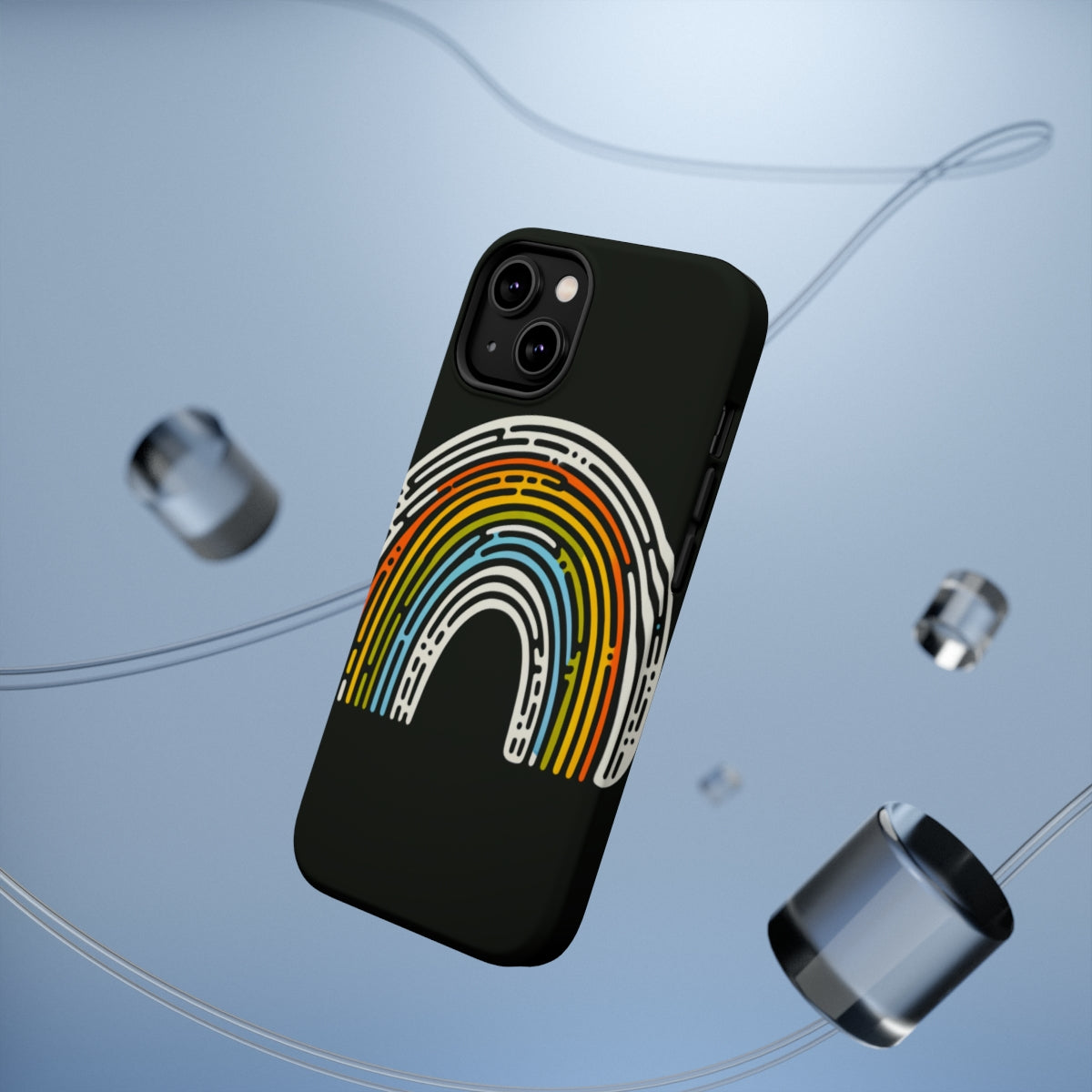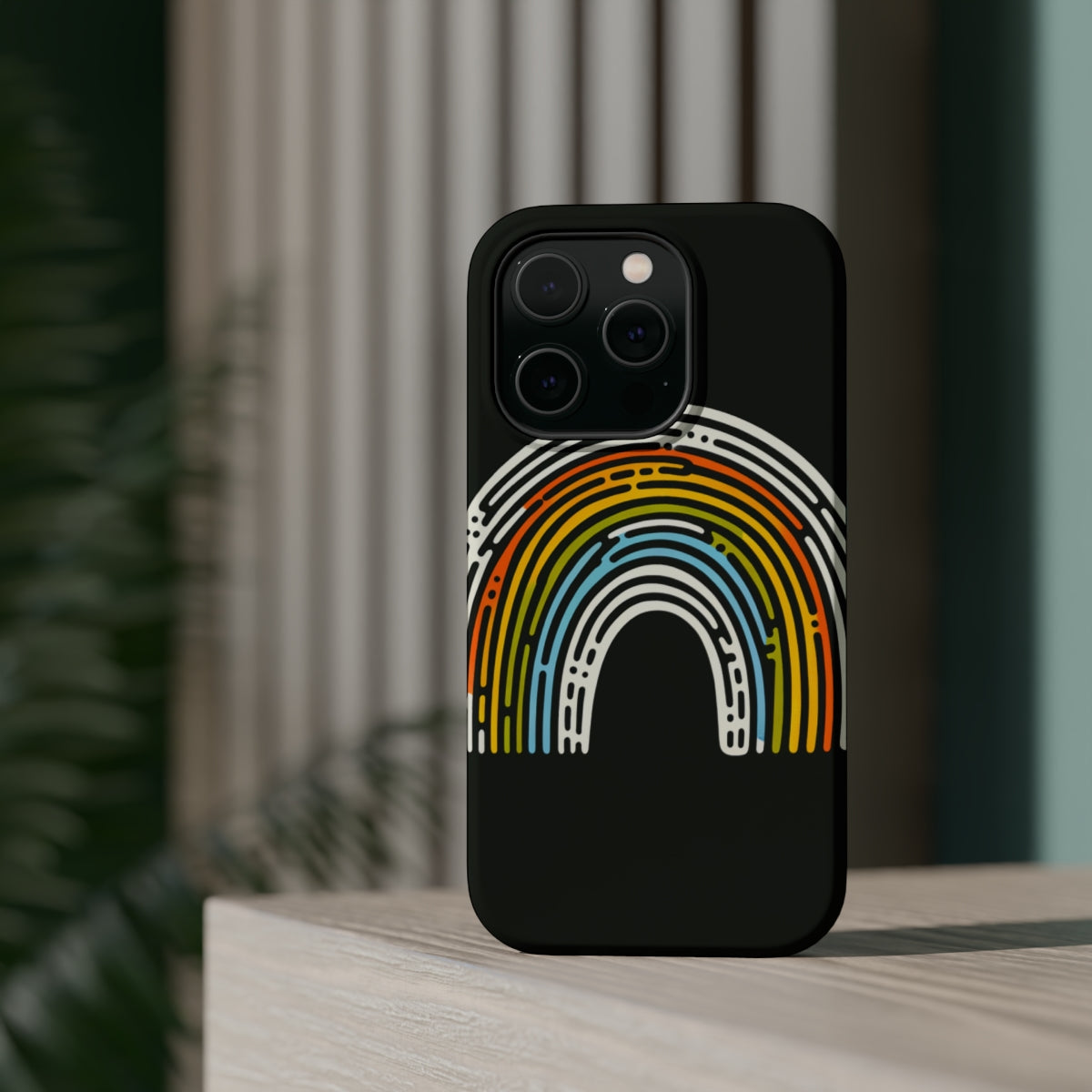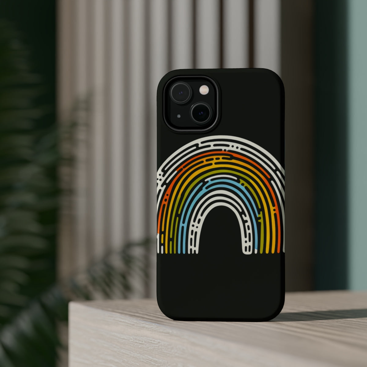 DistinctInk Tough Case for Apple iPhone, Compatible with MagSafe Charging - "Vibrant Contrast: Hand-Drawn Minimal Rainbow"