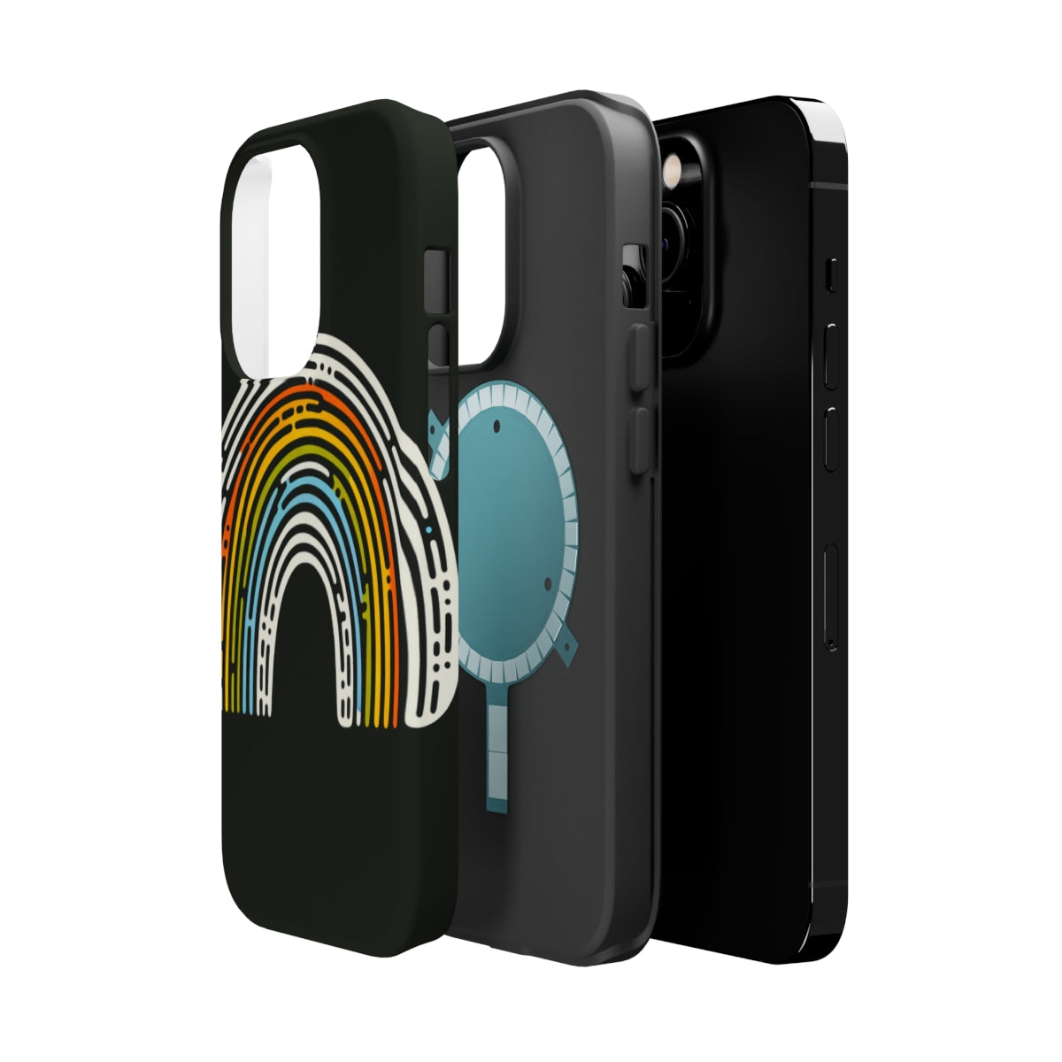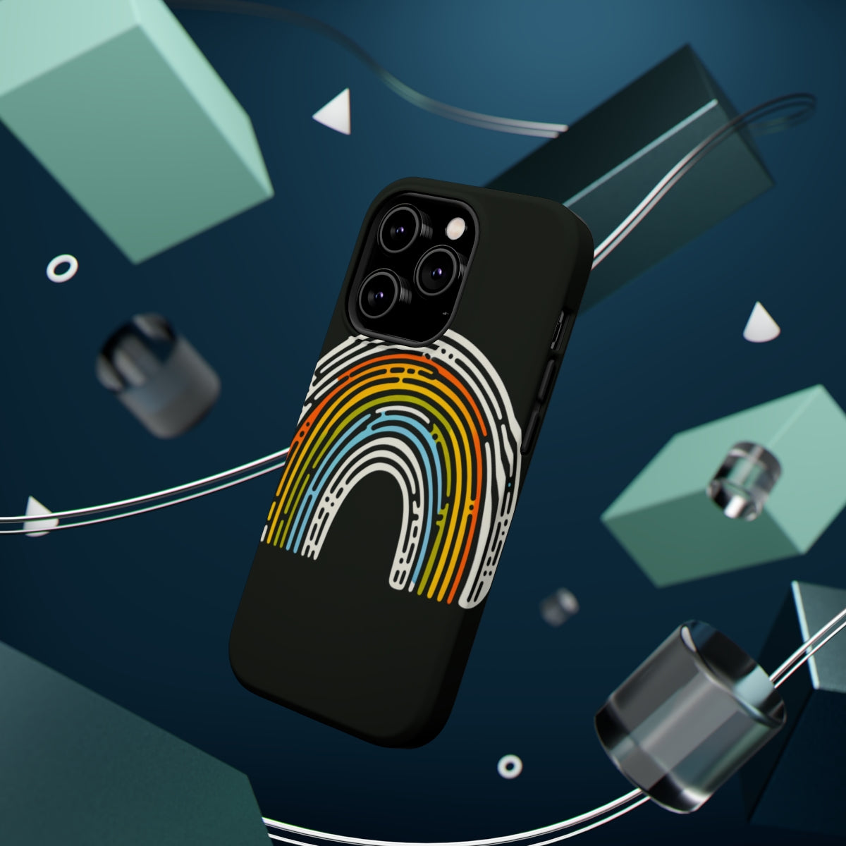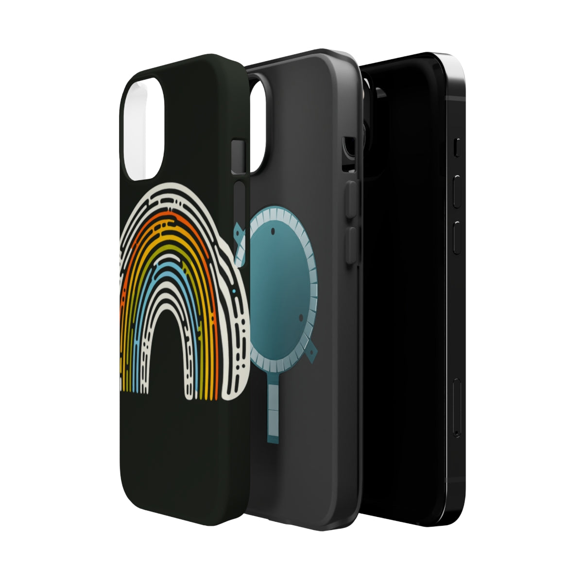 DistinctInk Tough Case for Apple iPhone, Compatible with MagSafe Charging - "Vibrant Contrast: Hand-Drawn Minimal Rainbow"