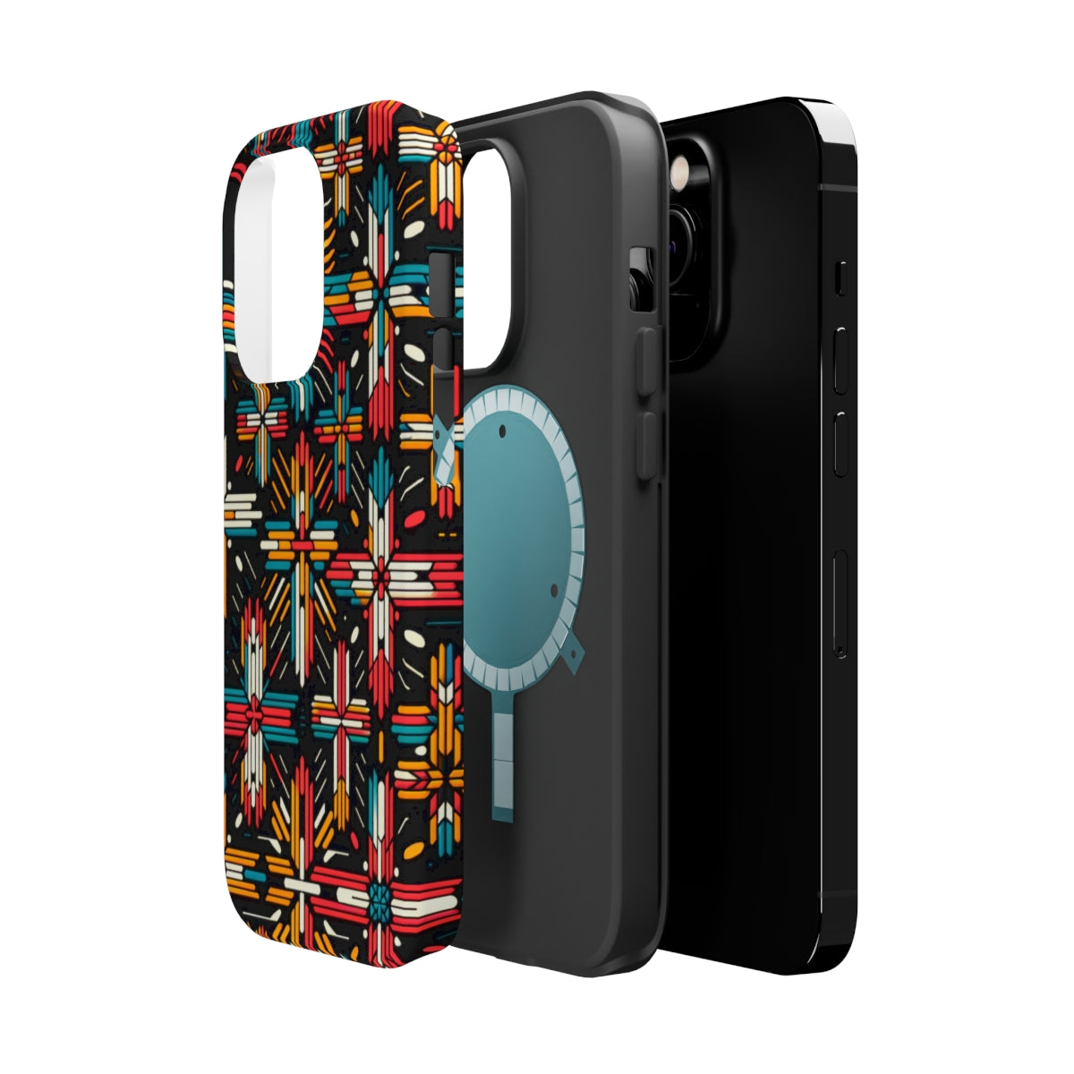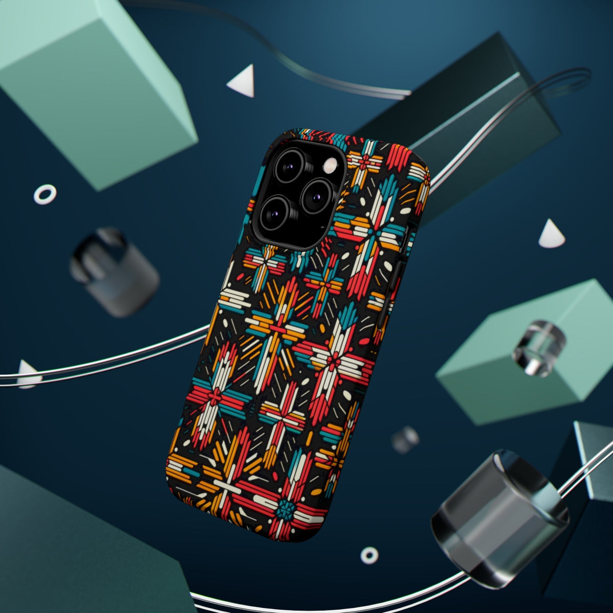 DistinctInk Tough Case for Apple iPhone, Compatible with MagSafe Charging - "Vibrant Crosses: A Minimalist Pattern"