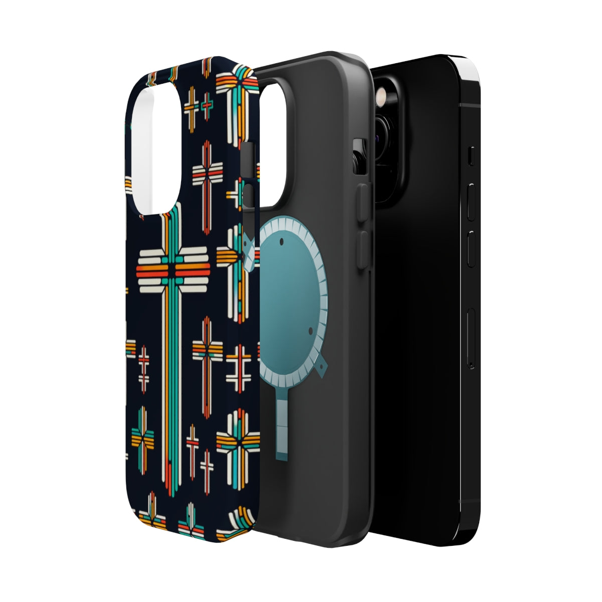 DistinctInk Tough Case for Apple iPhone, Compatible with MagSafe Charging - "Vibrant Crosses: A Striking Minimalistic Pattern"