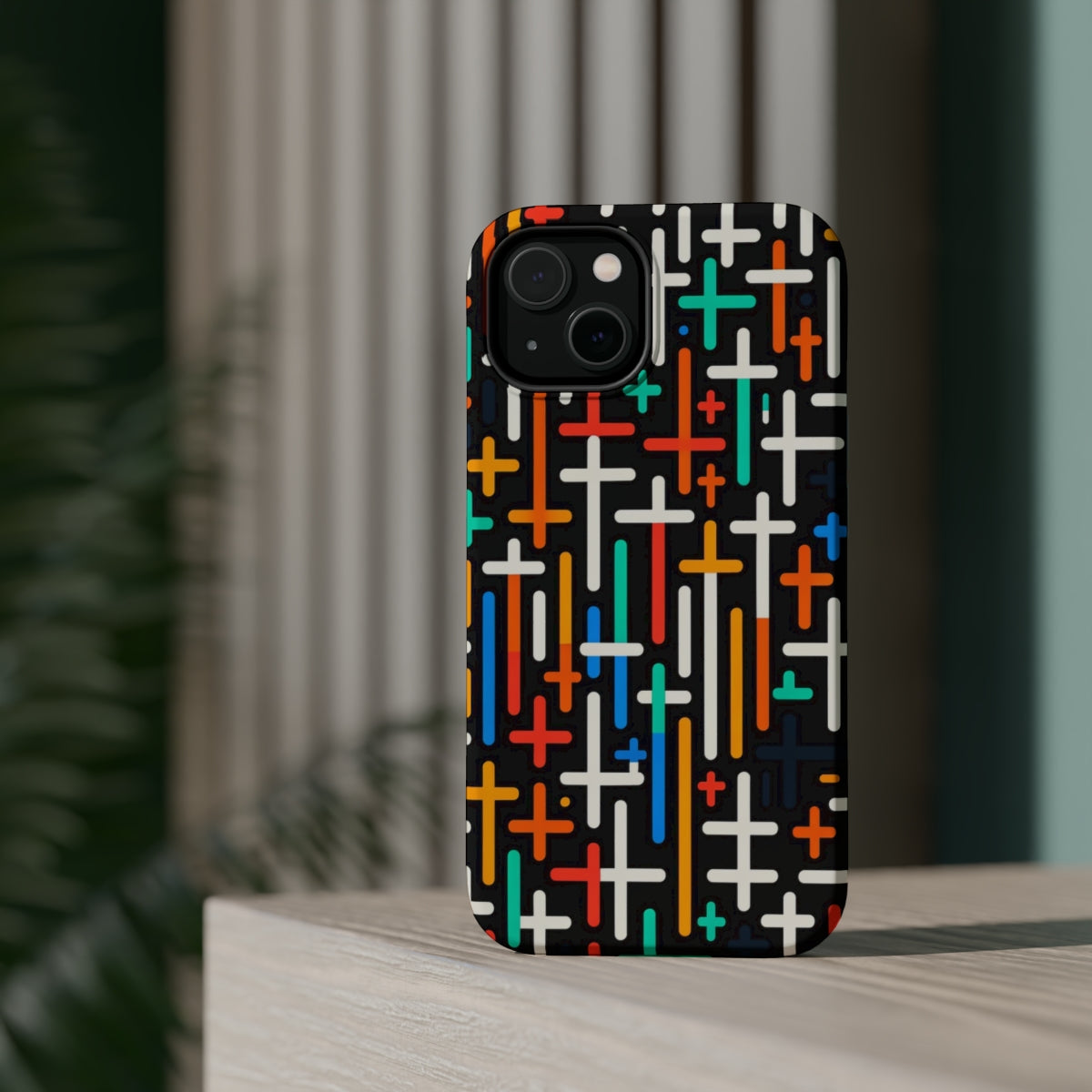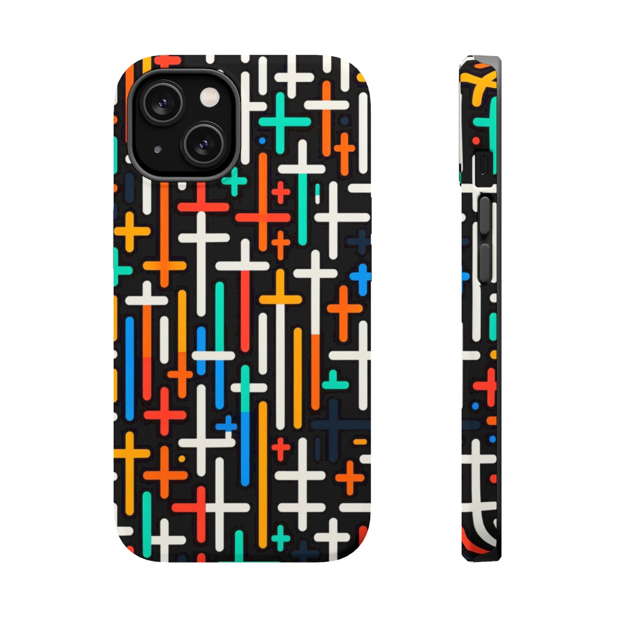 DistinctInk Tough Case for Apple iPhone, Compatible with MagSafe Charging - "Vibrant Crosses: Bold and Colorful Christian Pattern"