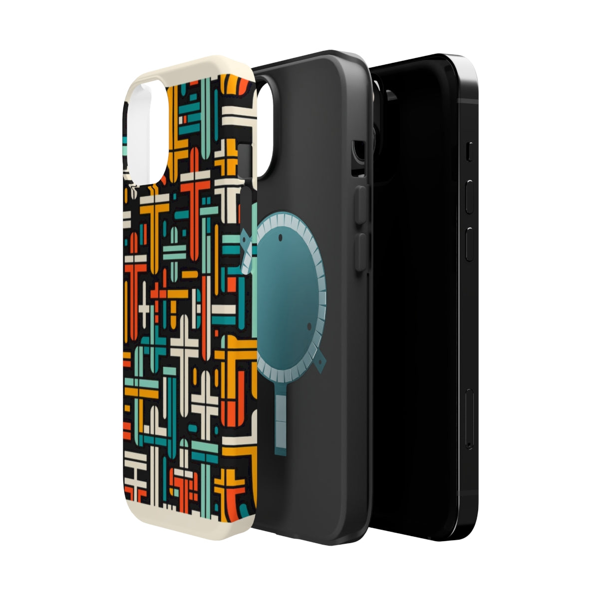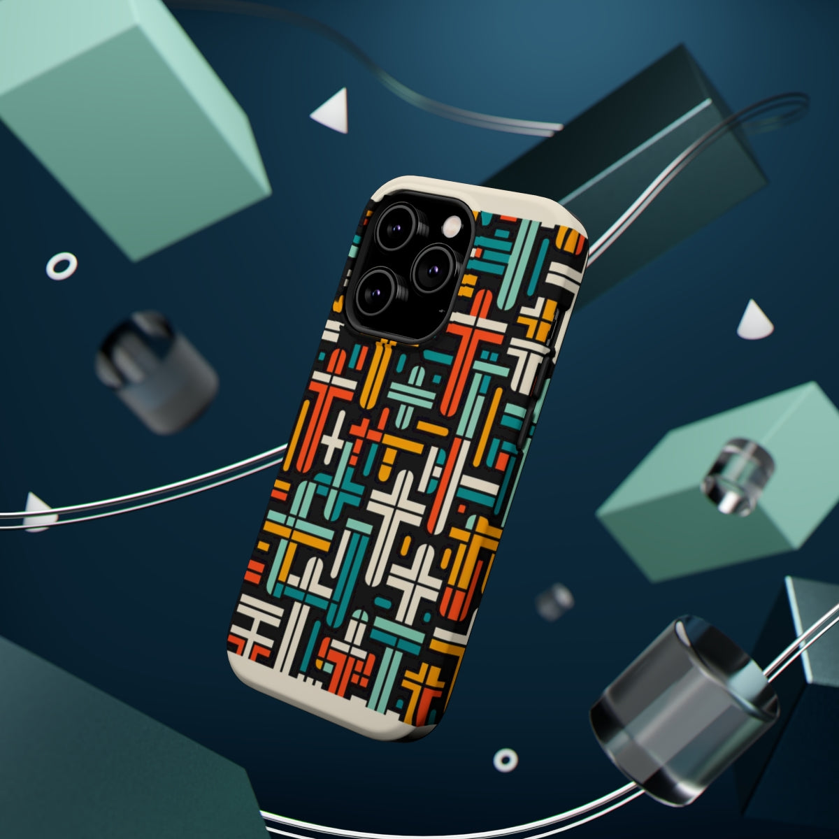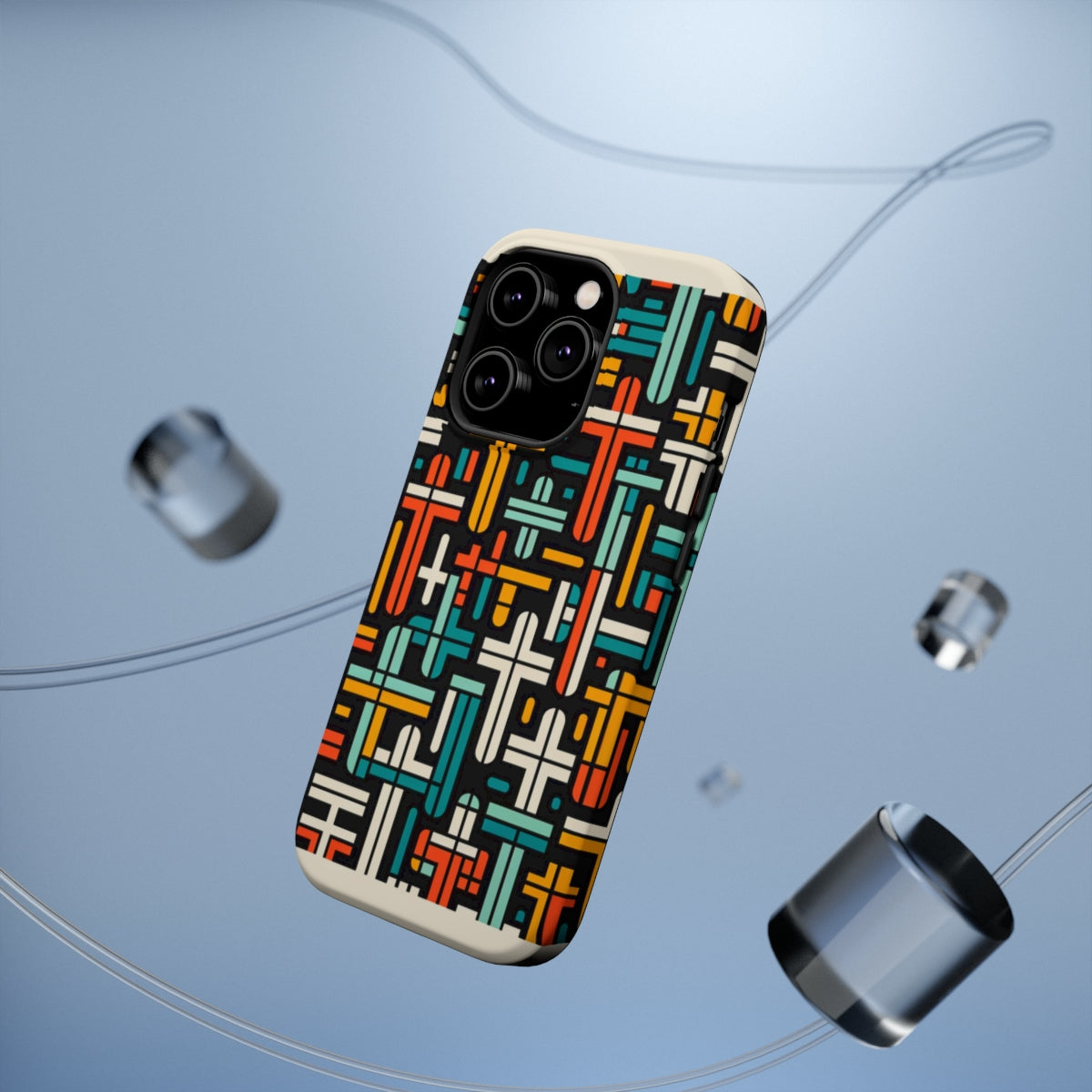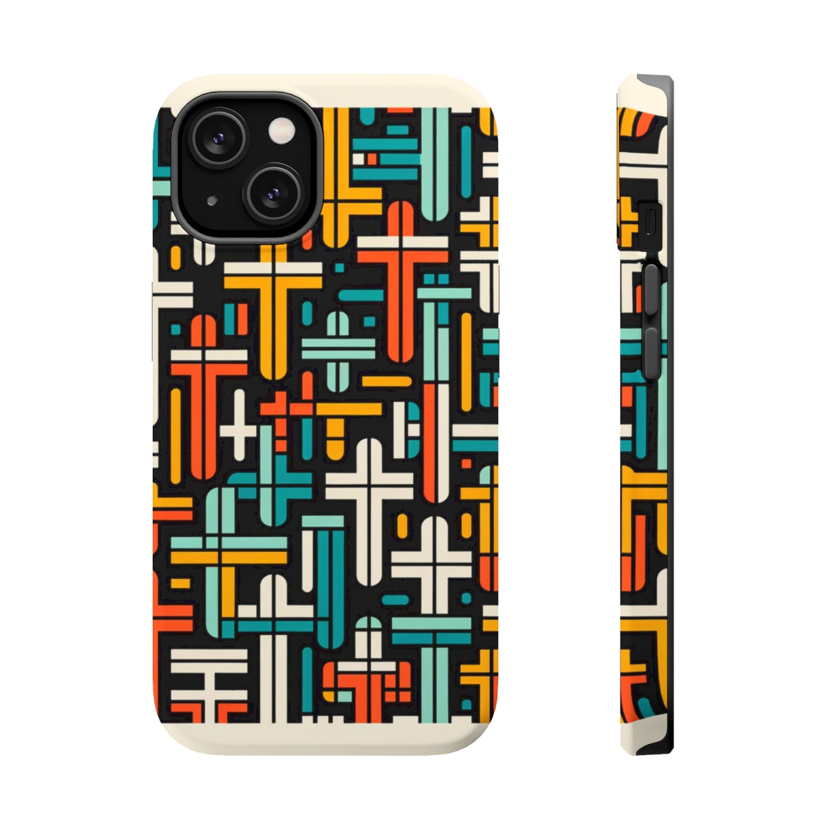 DistinctInk Tough Case for Apple iPhone, Compatible with MagSafe Charging - "Vibrant Crosses: Bold Contrast in Patterns"
