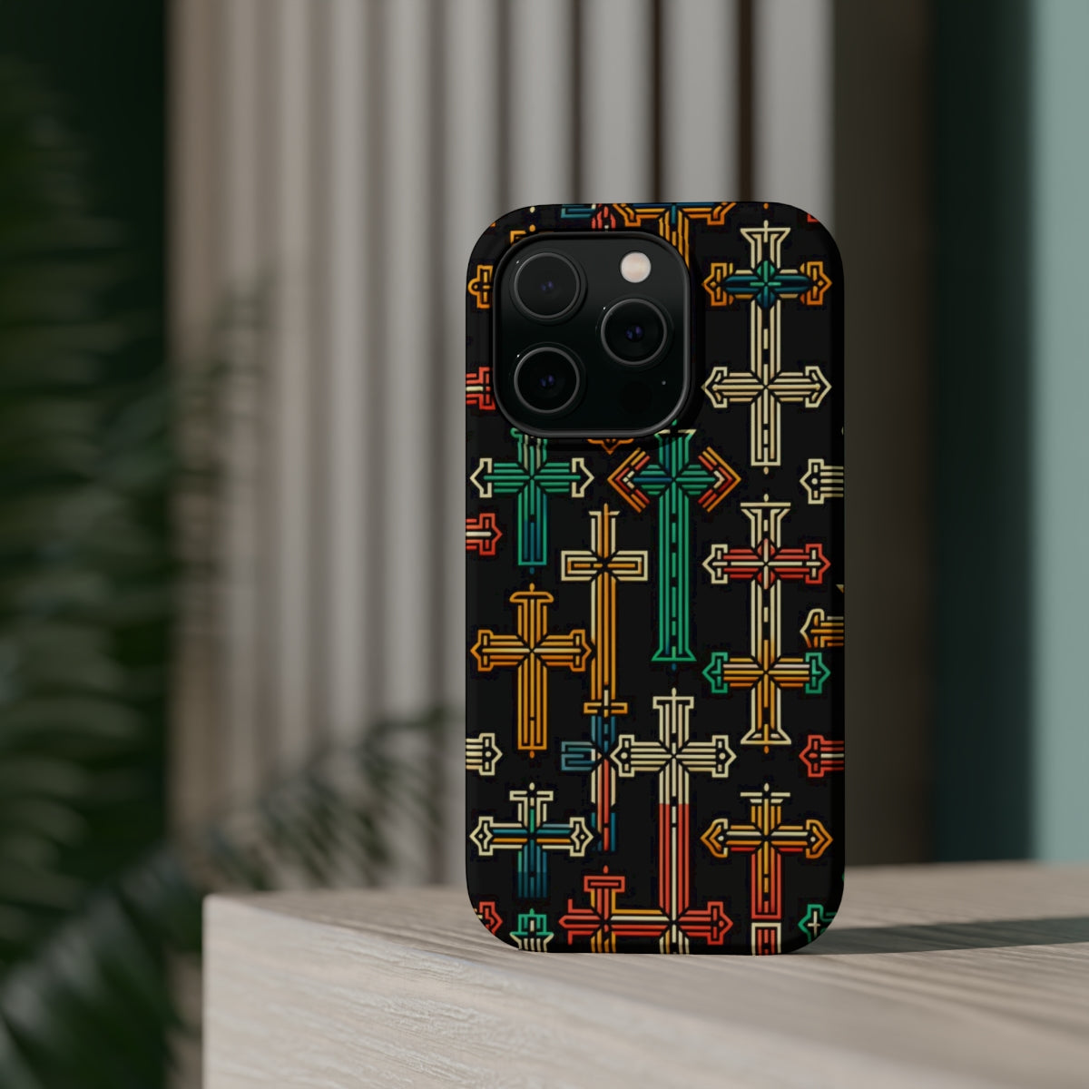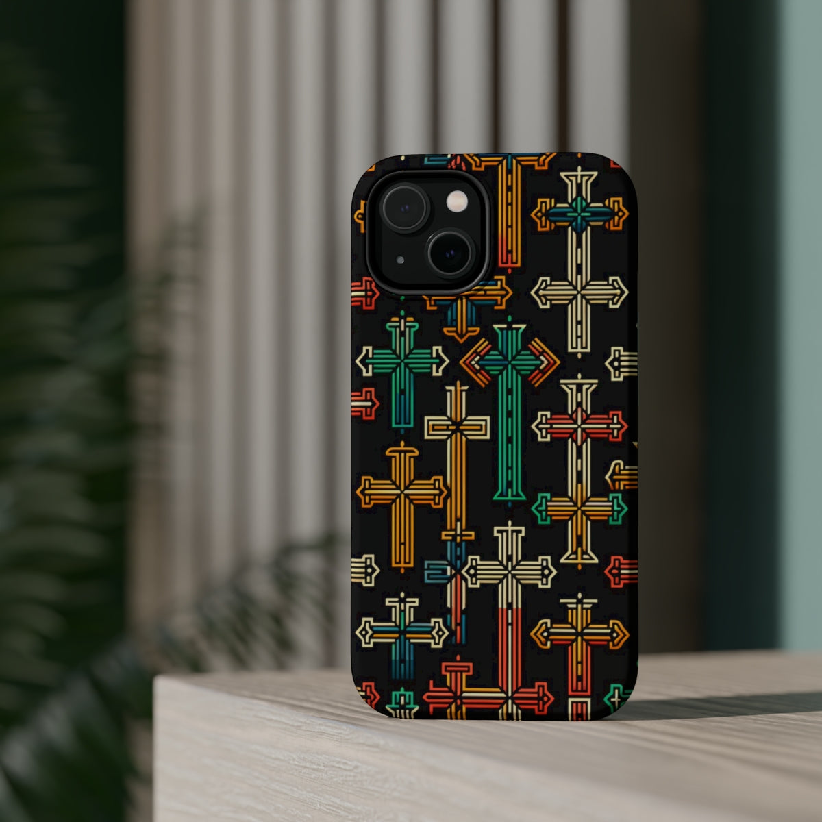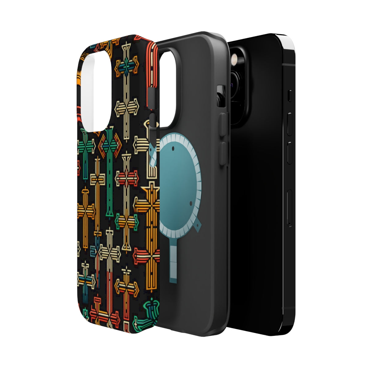 DistinctInk Tough Case for Apple iPhone, Compatible with MagSafe Charging - "Vibrant Minimalism: Christian Cross Repeating Pattern"