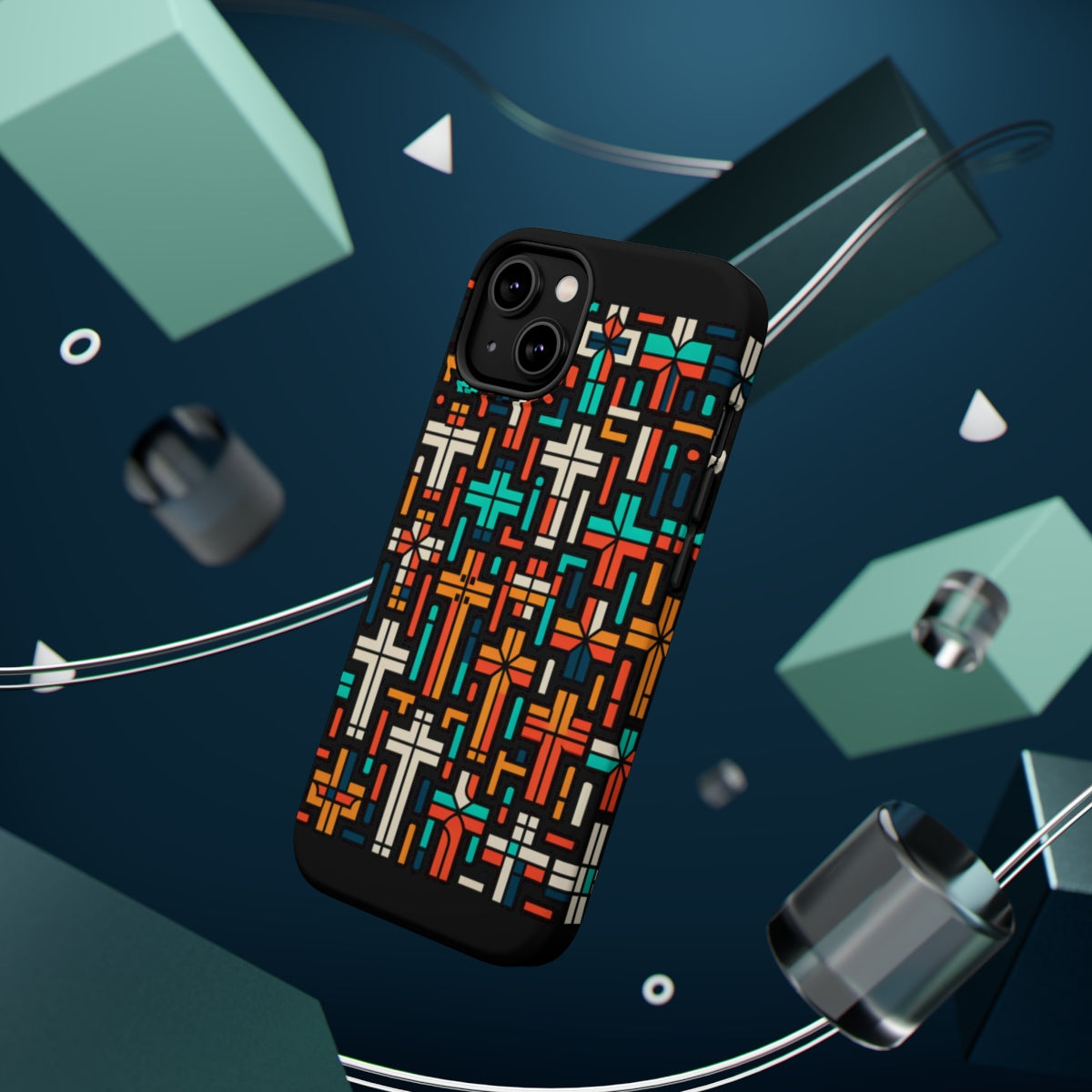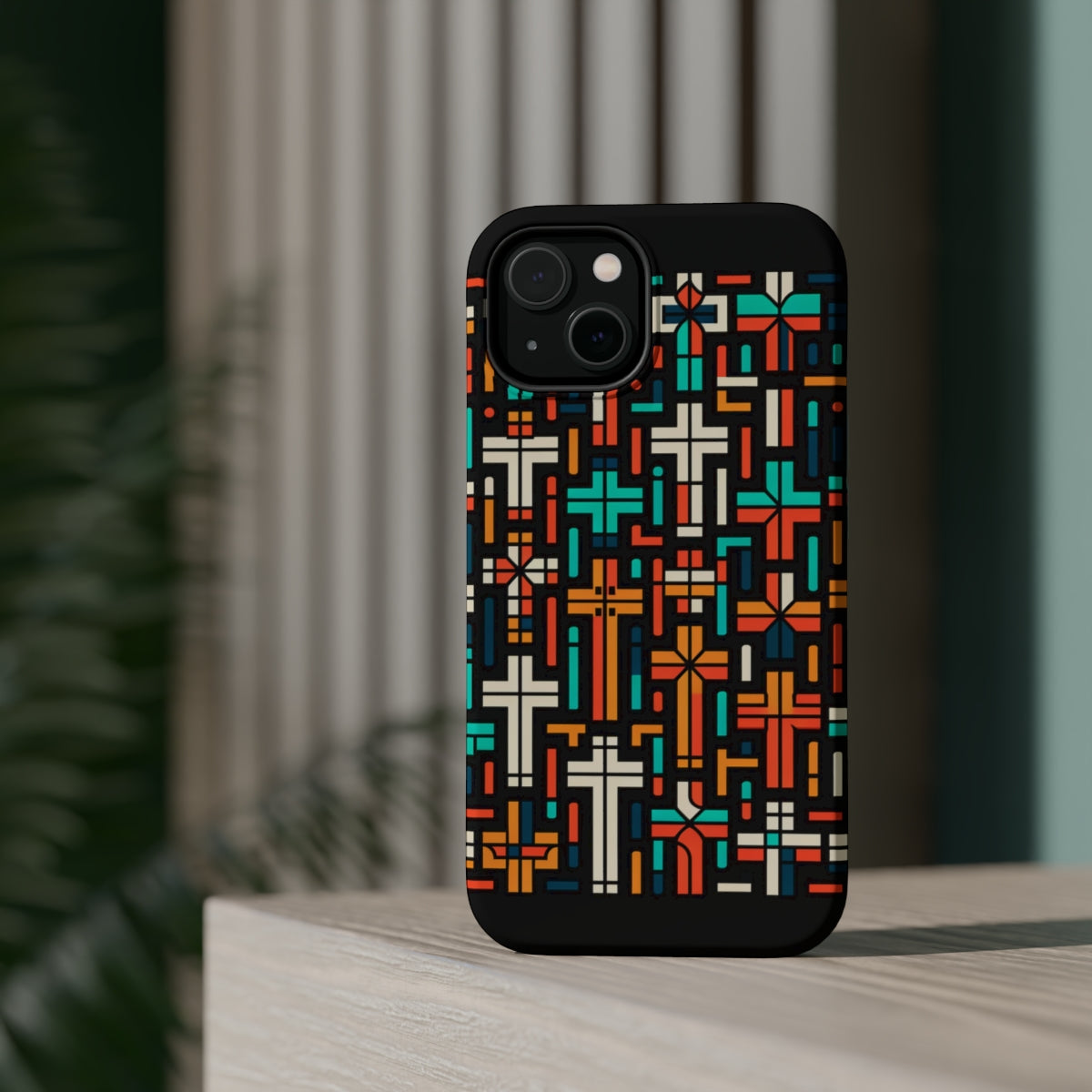 DistinctInk Tough Case for Apple iPhone, Compatible with MagSafe Charging - "Vibrant Minimalism: The Bold Christian Crosses"