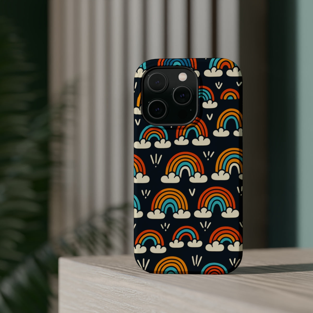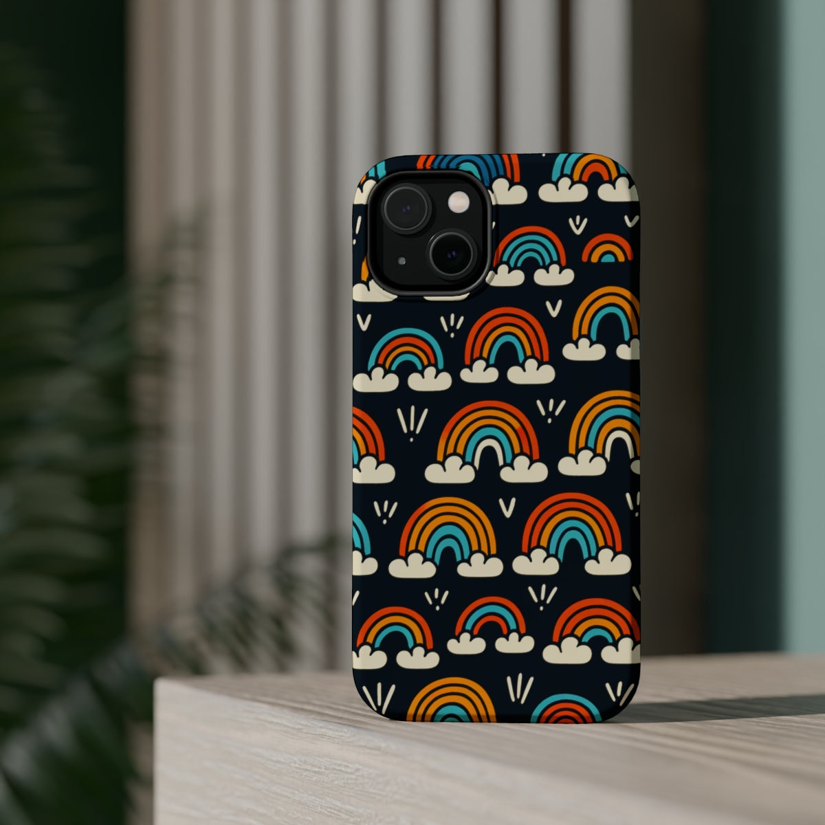 So, why settle for ordinary when you can have extraordinary? Grab your DistinctInk ToughCase with Vibrant Minimalist Rainbows on Black design today and elevate your iPhone game to new heights. Trust us, your iPhone will thank you, and
