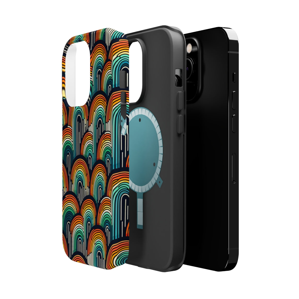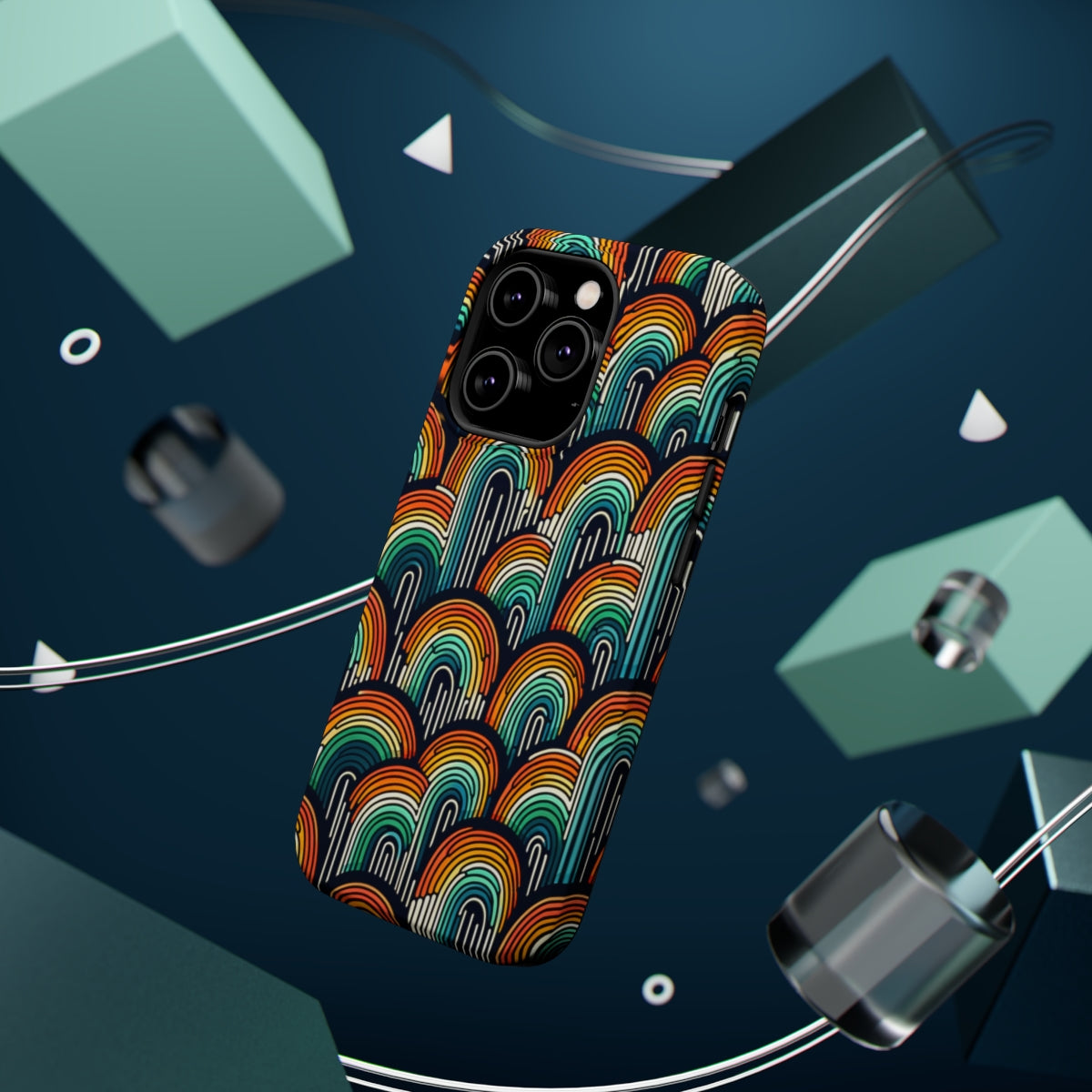 DistinctInk Tough Case for Apple iPhone, Compatible with MagSafe Charging - "Vibrant Rainbow Patterns: Minimalistic Contrast Delight"