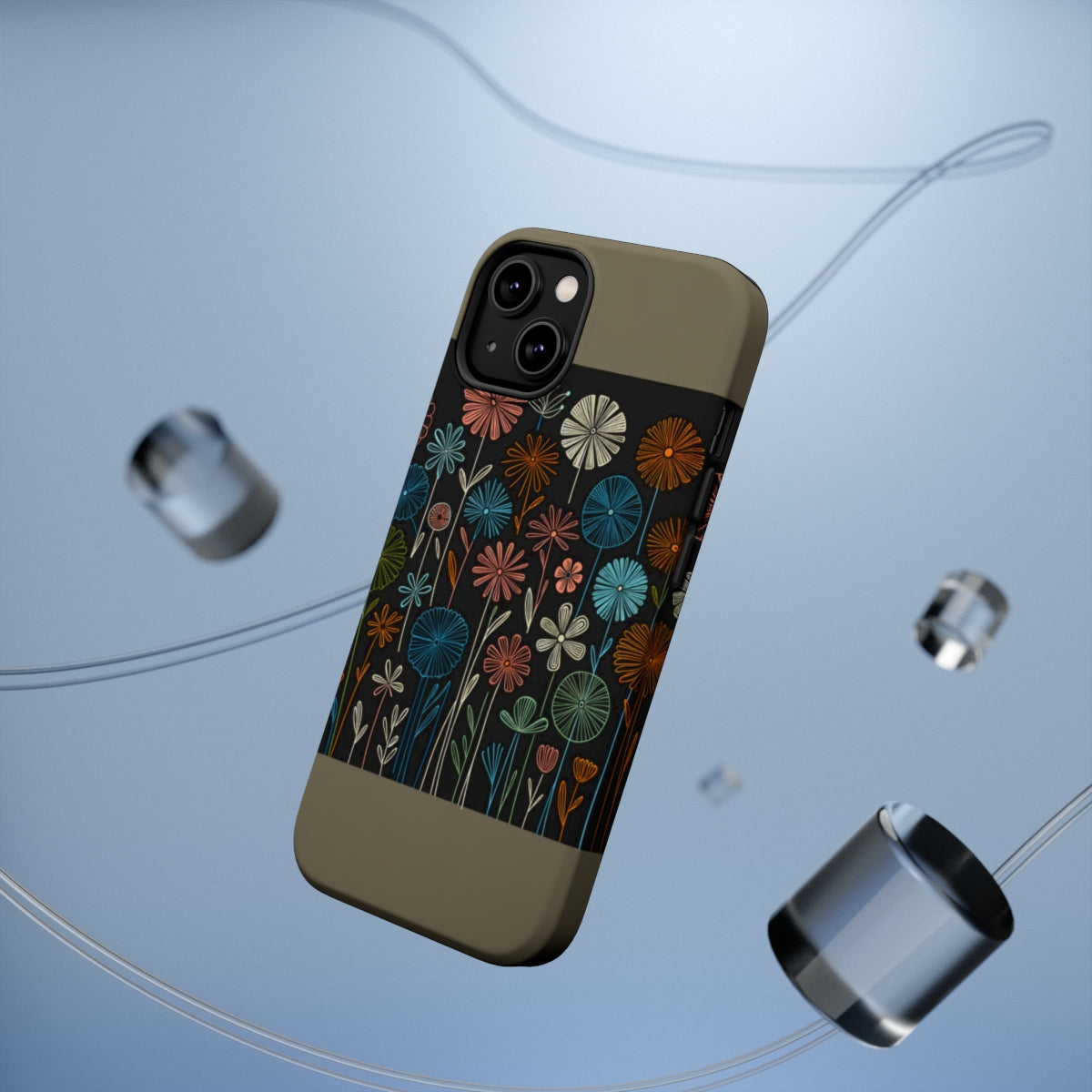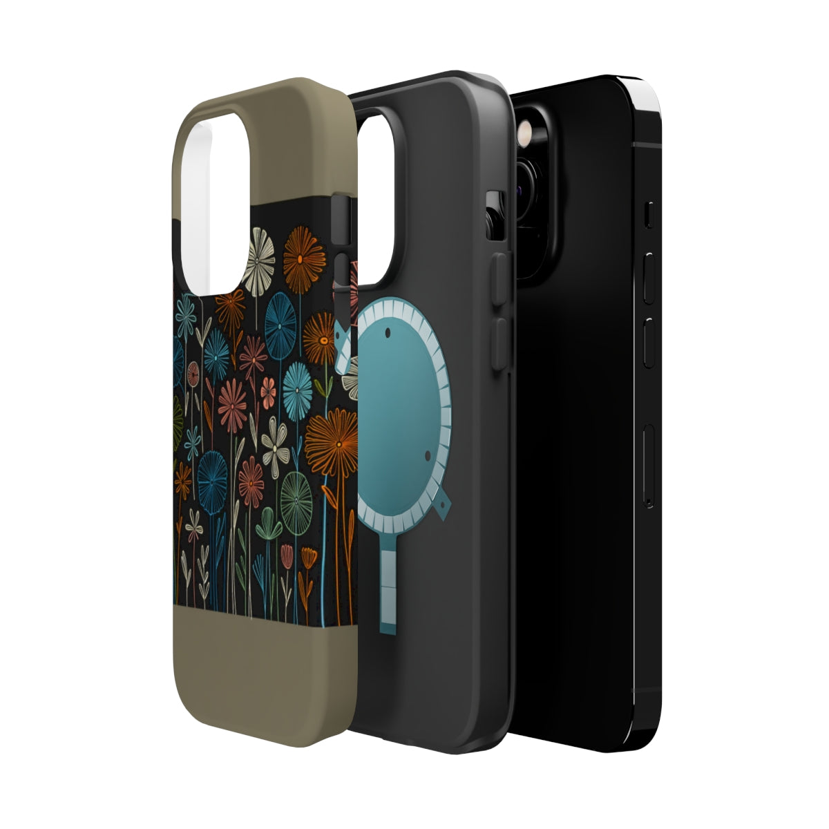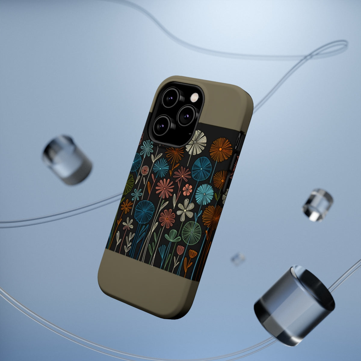 DistinctInk Tough Case for Apple iPhone, Compatible with MagSafe Charging - "Vibrant Spring Blooms in Cartoon Style"