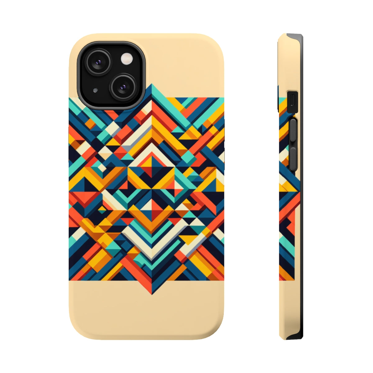 DistinctInk Tough Case for Apple iPhone, Compatible with MagSafe Charging - "Vibrantly Geometric: A Stunning 3D Tessellation of Colorful Shapes"