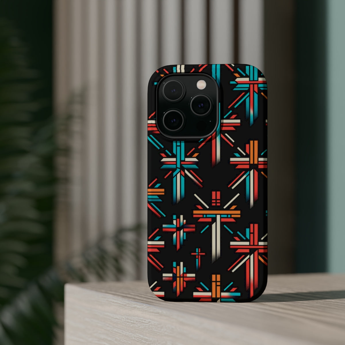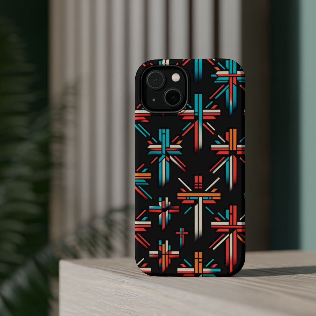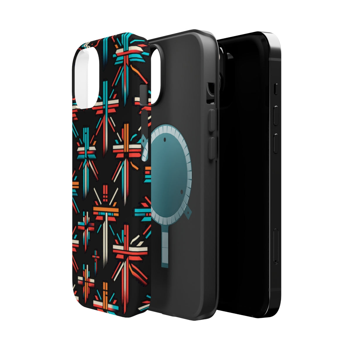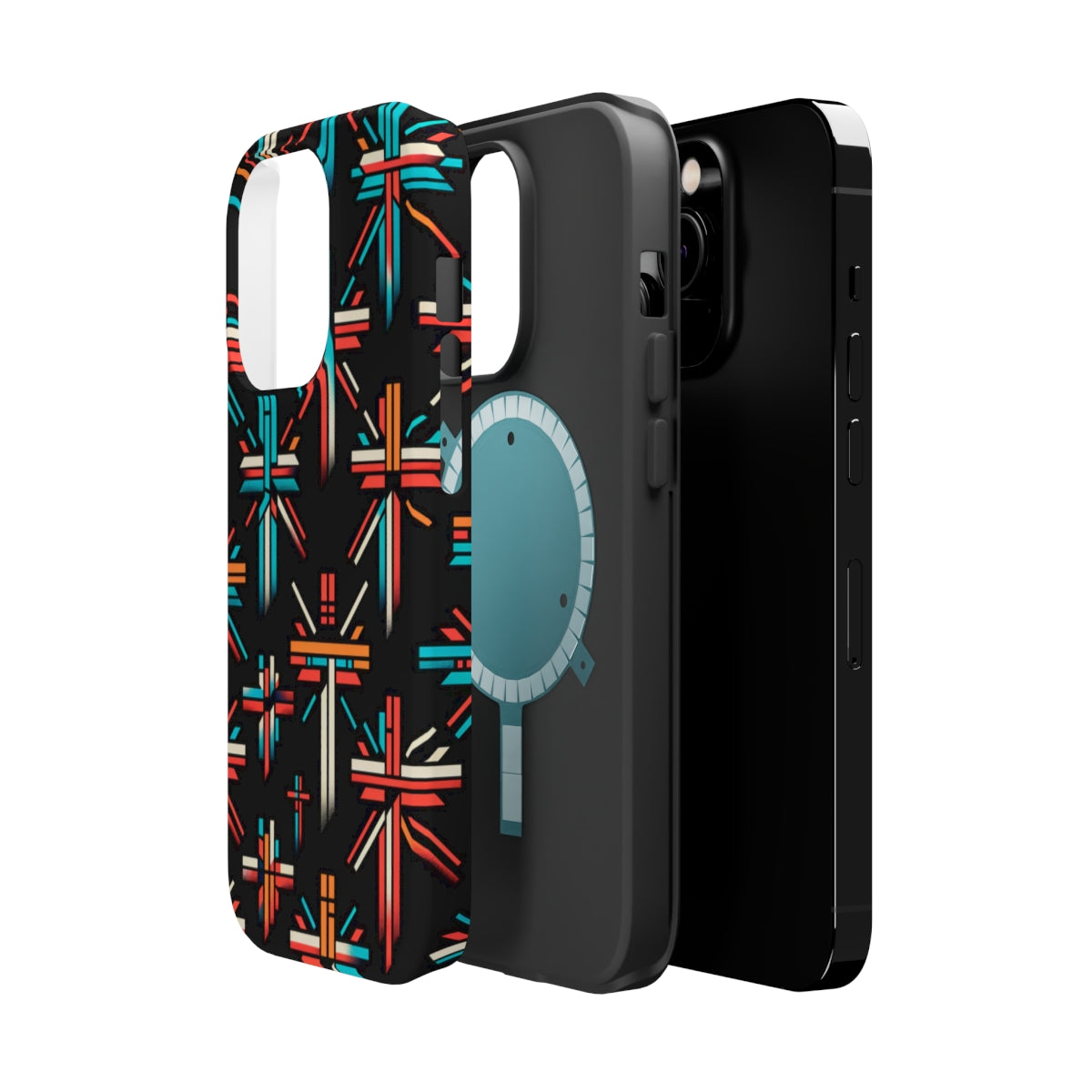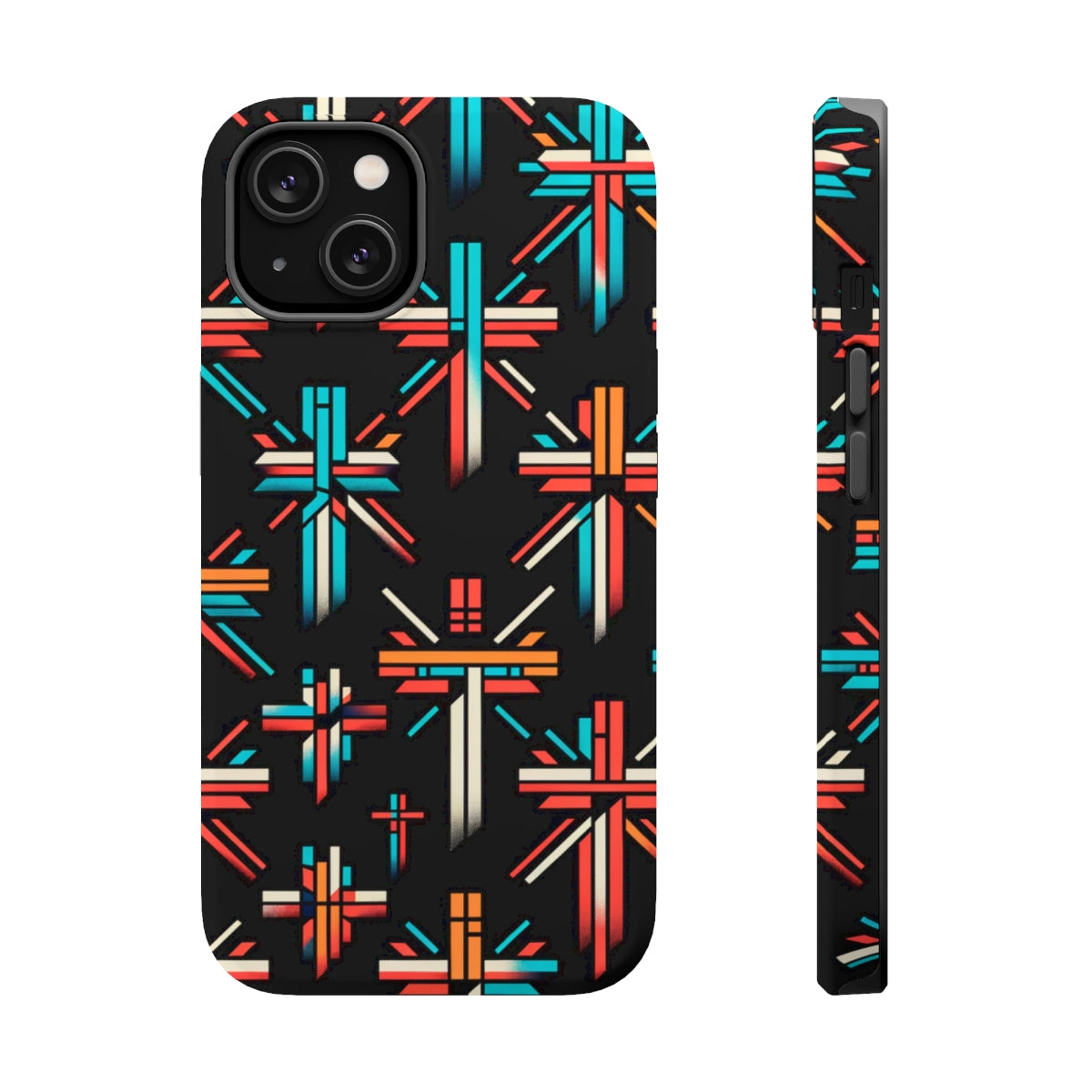 DistinctInk Tough Case for Apple iPhone, Compatible with MagSafe Charging - "Vivid Contrast: Bold Christian Crosses Pattern"