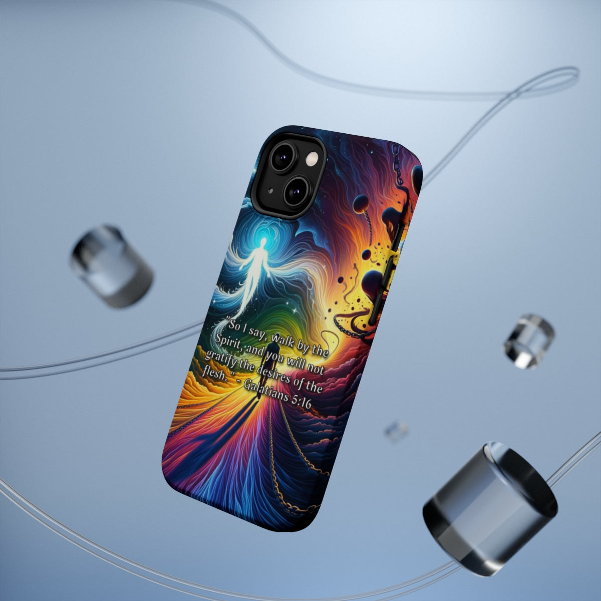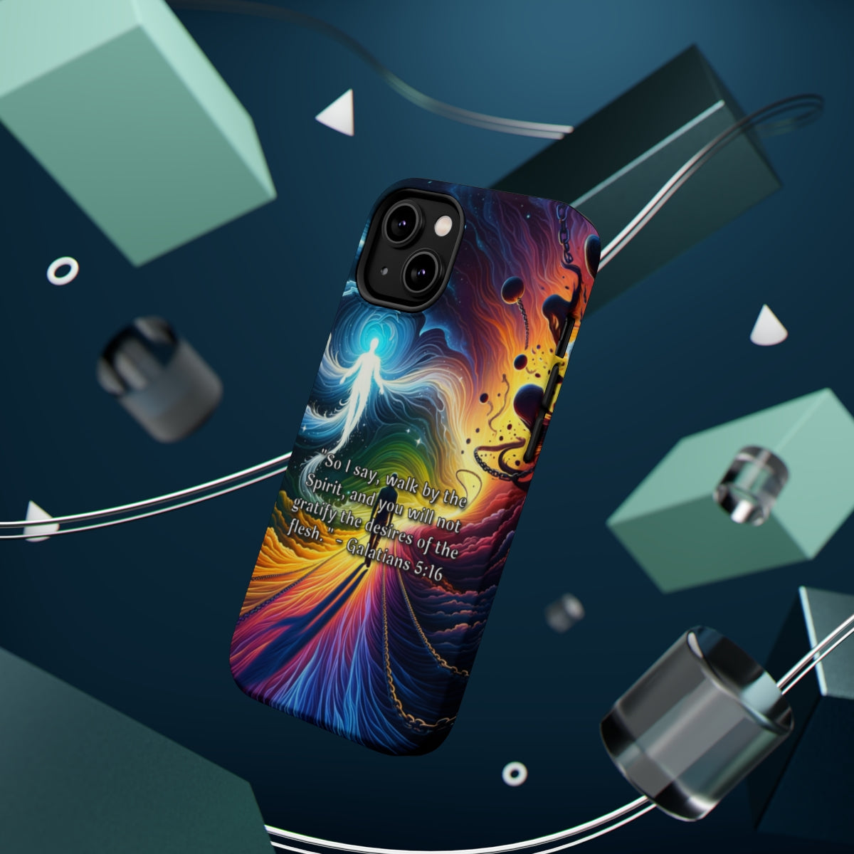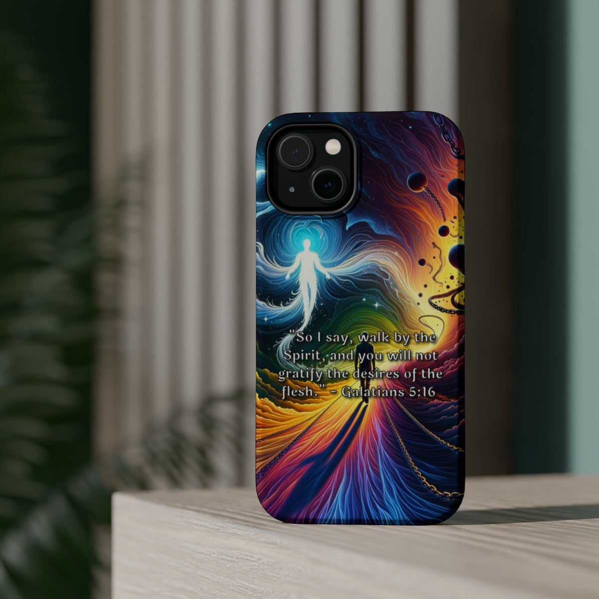 DistinctInk Tough Case for Apple iPhone, Compatible with MagSafe Charging - "Walking by the Spirit: Galatians 5:16 Bible Verse"