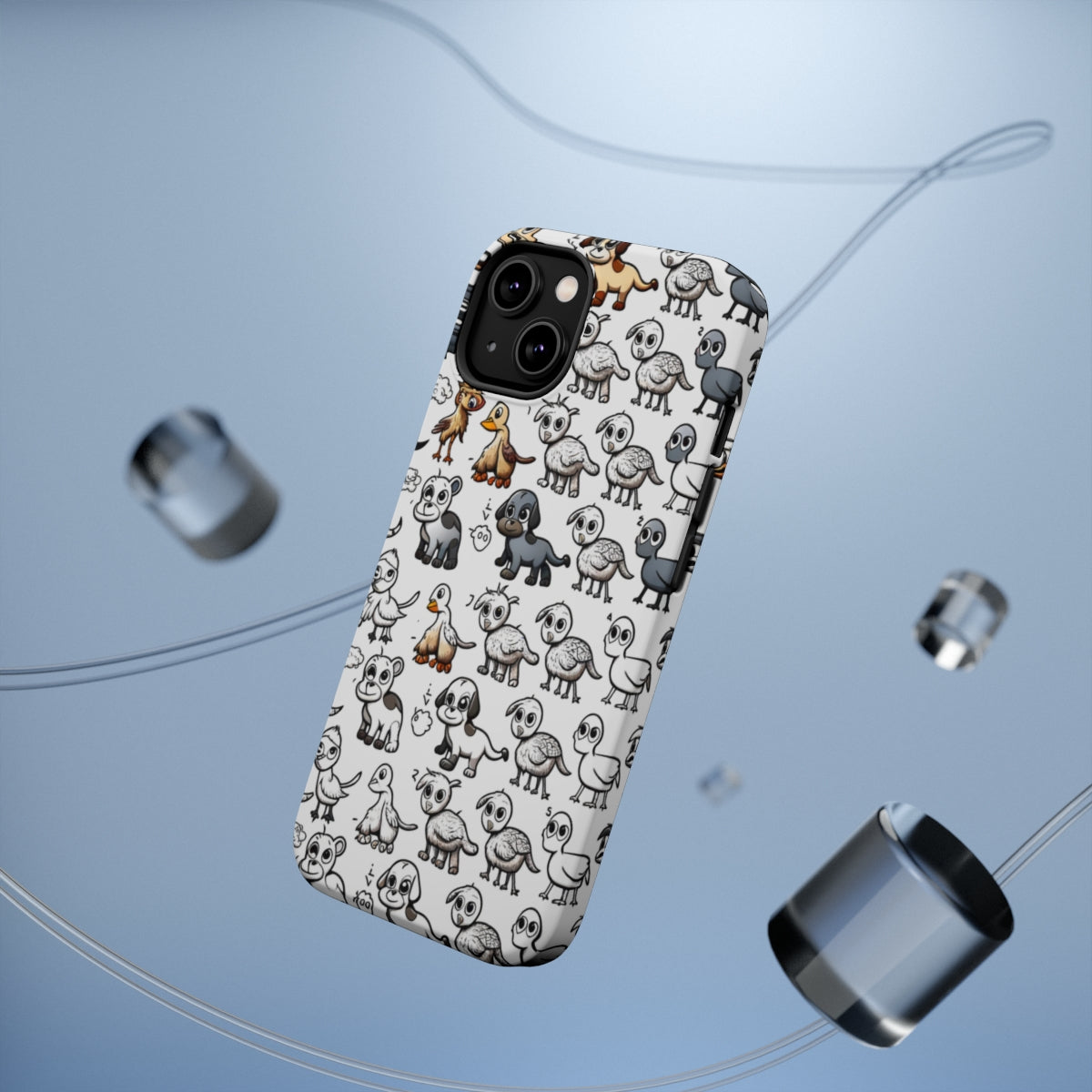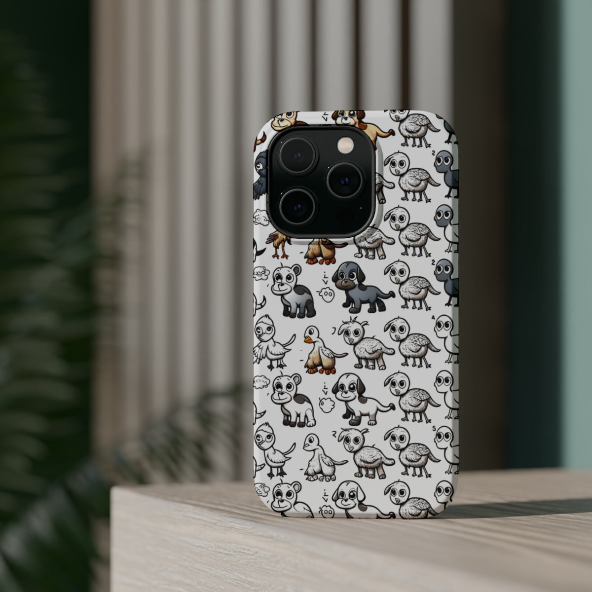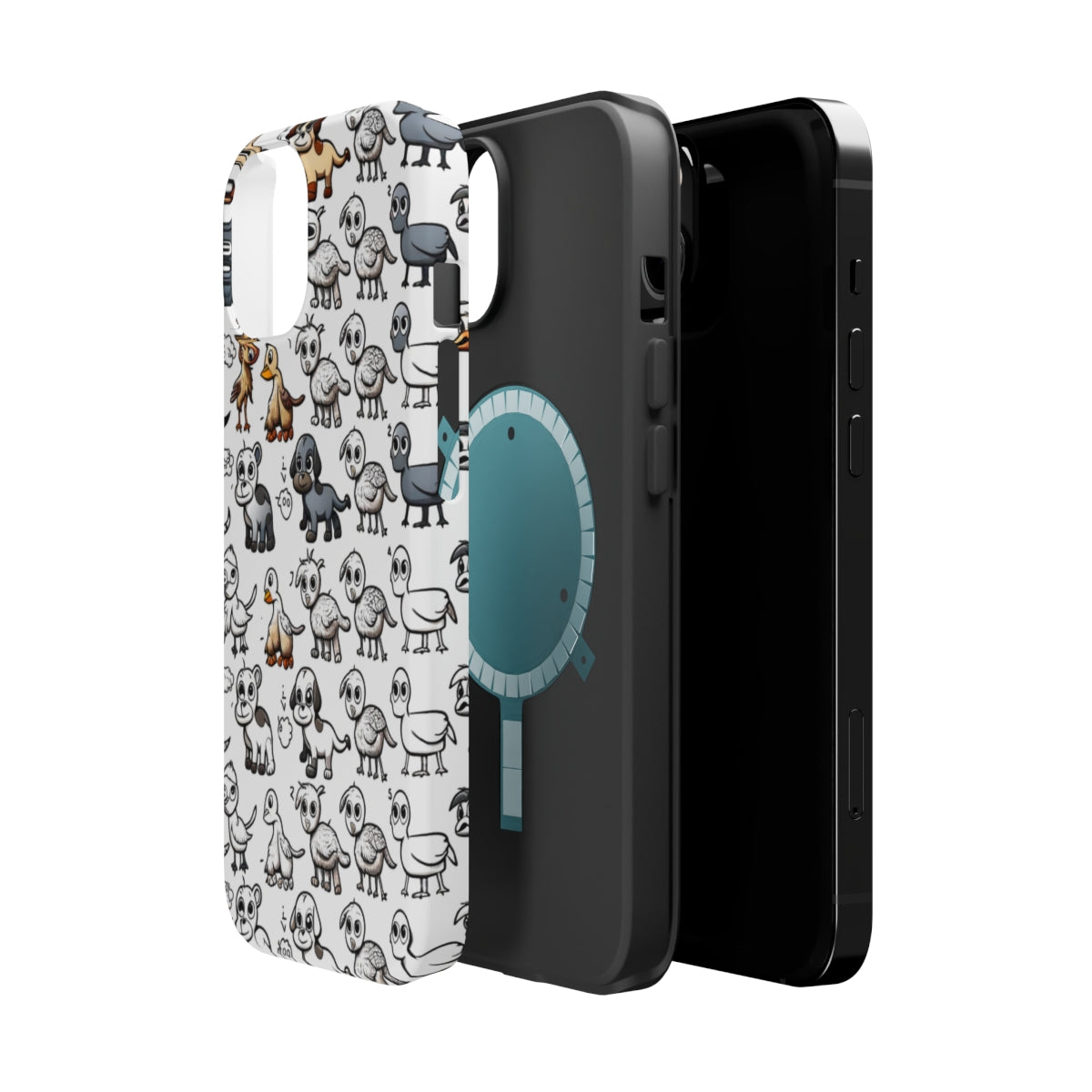DistinctInk Tough Case for Apple iPhone, Compatible with MagSafe Charging - "Whimsical Animal Fun: Repeating Cartoon Pattern"