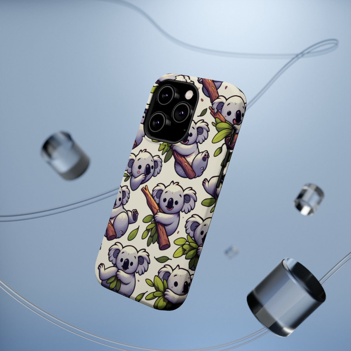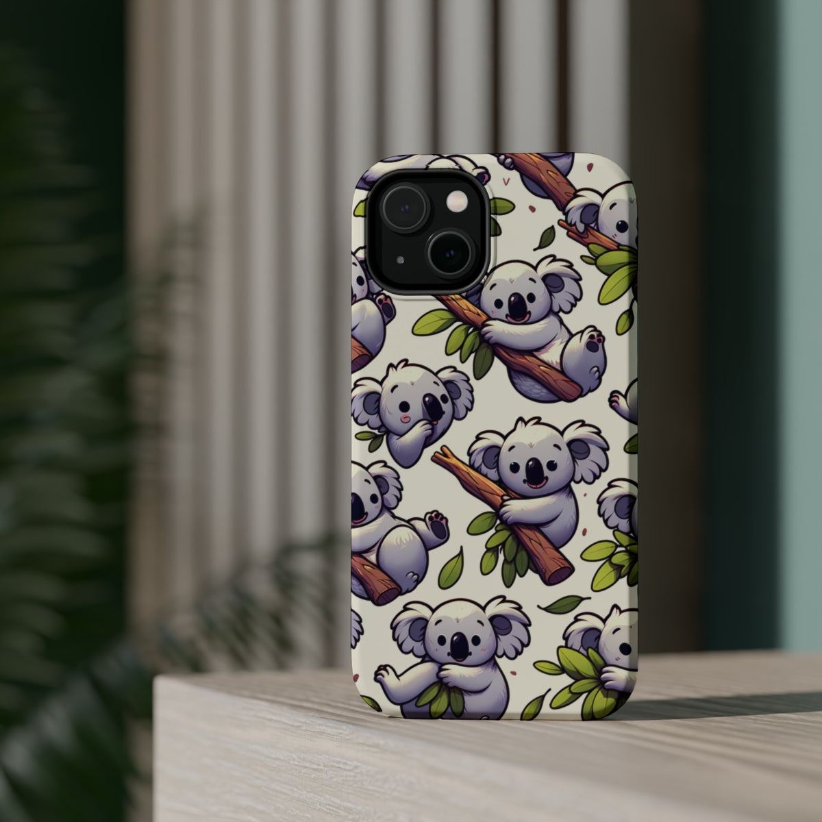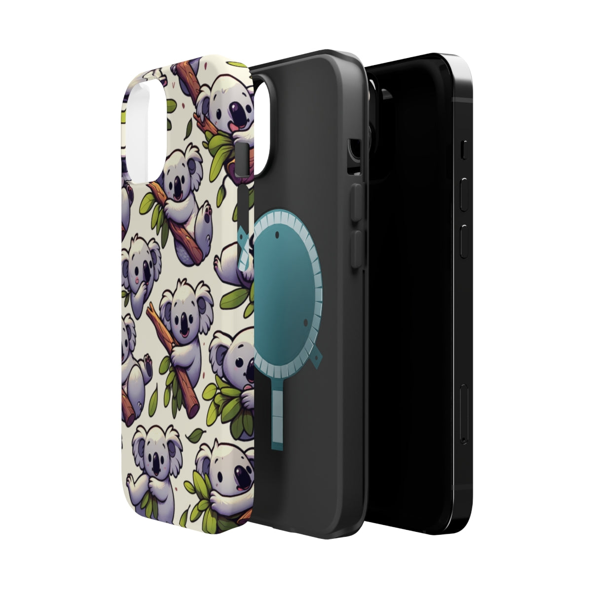 DistinctInk Tough Case for Apple iPhone, Compatible with MagSafe Charging - "Whimsical Arboreal Koala Pattern Collection"