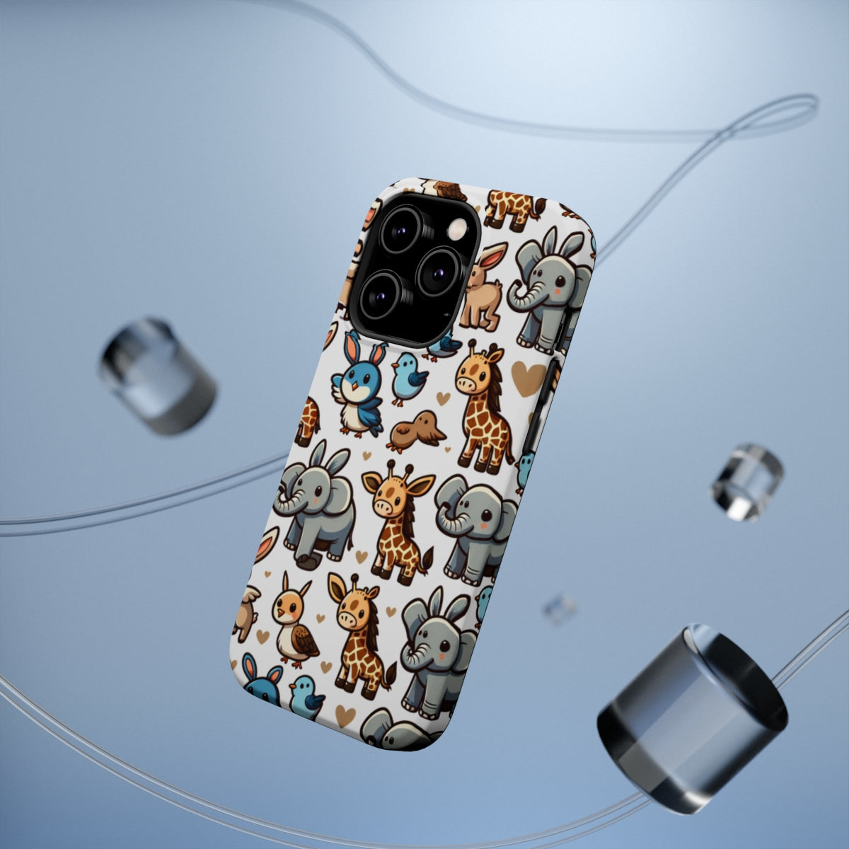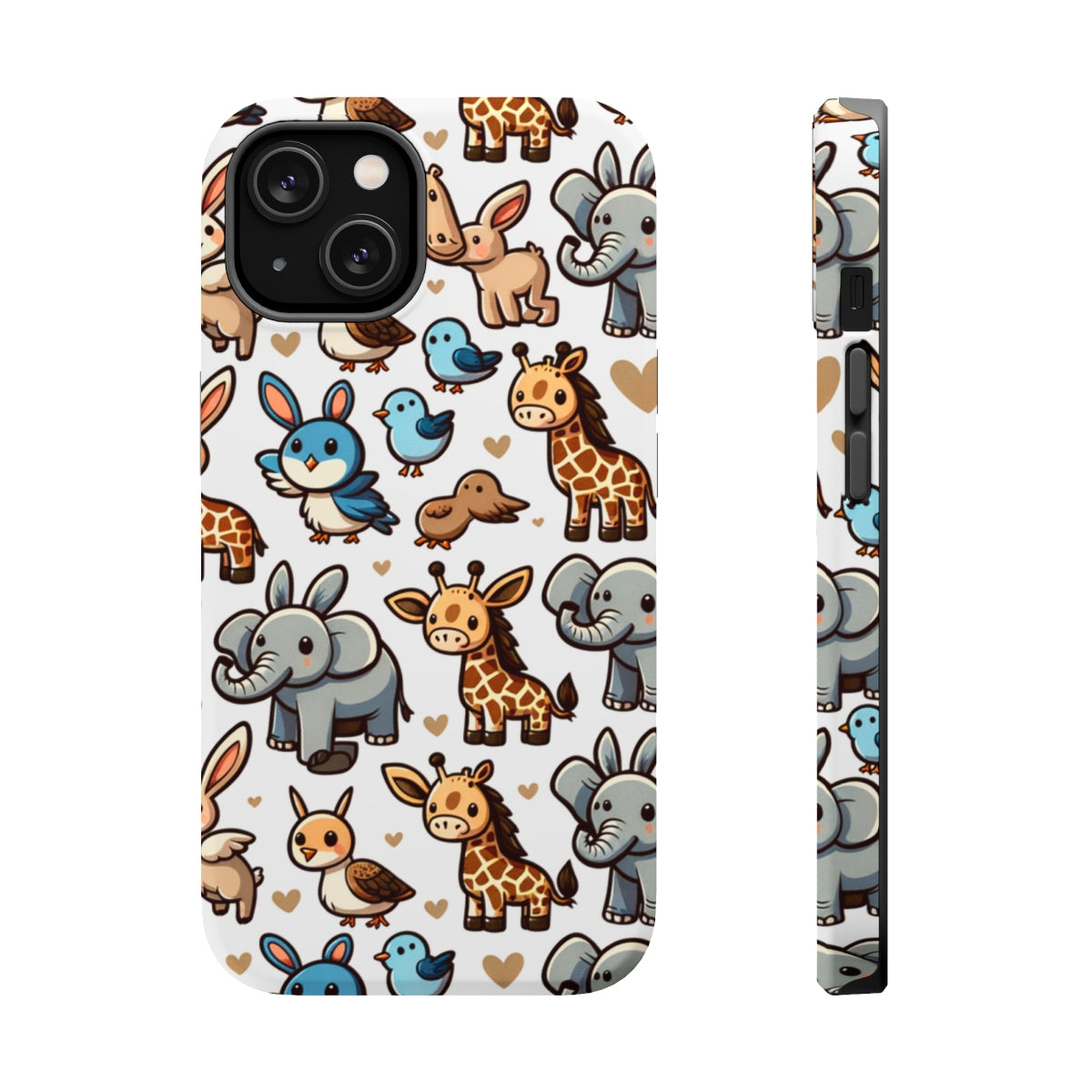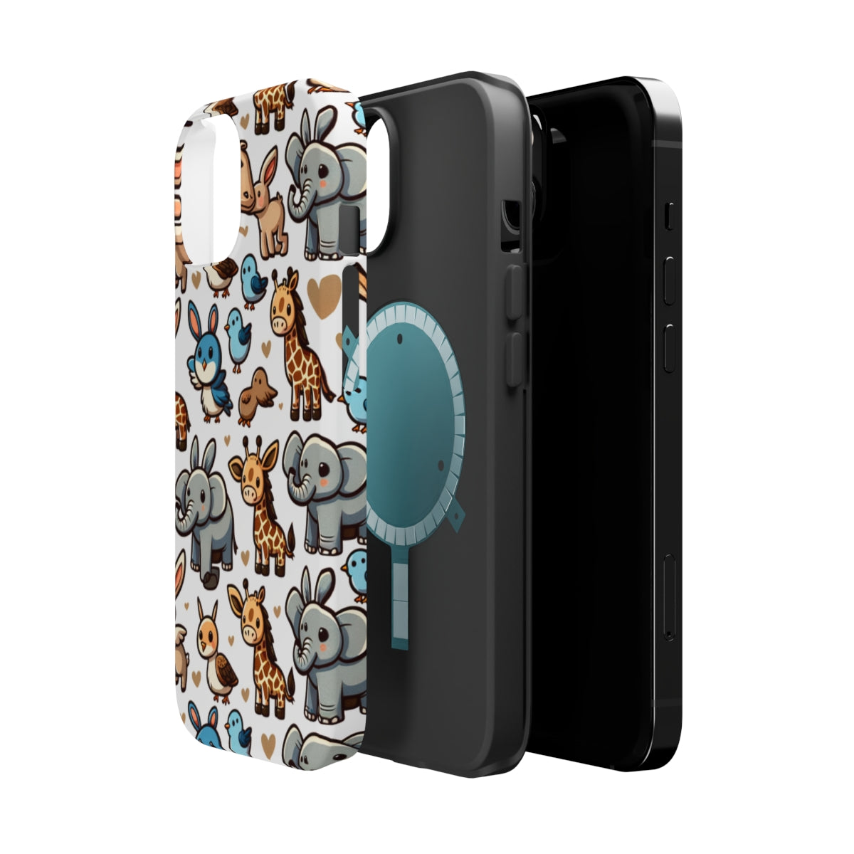 DistinctInk Tough Case for Apple iPhone, Compatible with MagSafe Charging - "Whimsical Cartoon Animal Repeating Pattern"