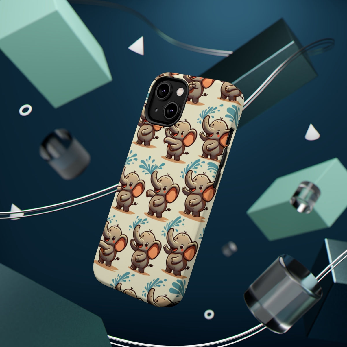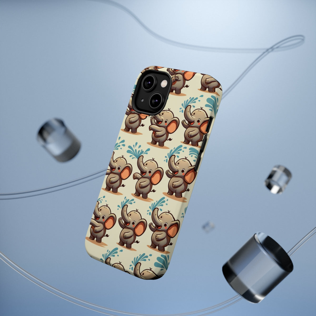 DistinctInk Tough Case for Apple iPhone, Compatible with MagSafe Charging - "Whimsical Elephant Delight: A Repeating Pattern"
