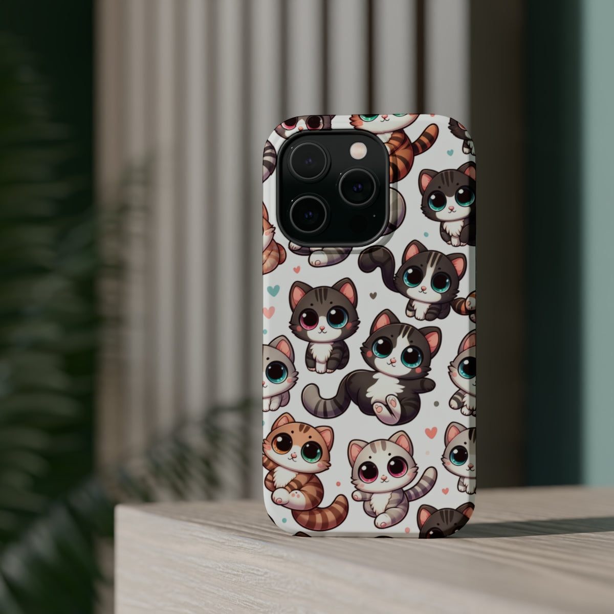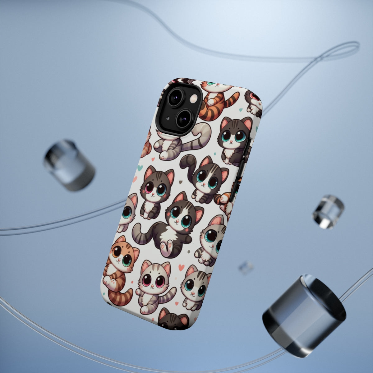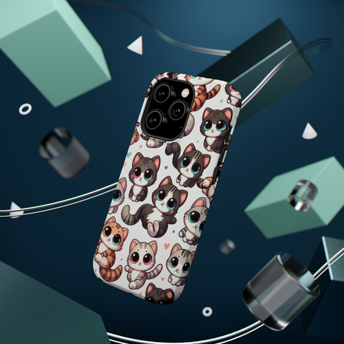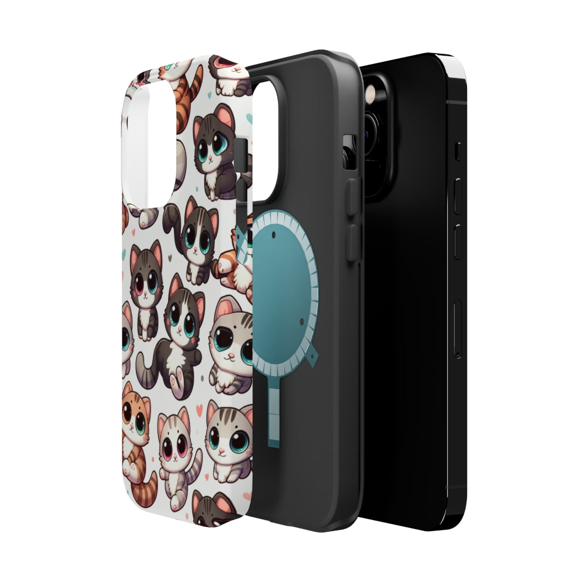 DistinctInk Tough Case for Apple iPhone, Compatible with MagSafe Charging - Whimsical Feline Fiesta: A Delightful Repetition