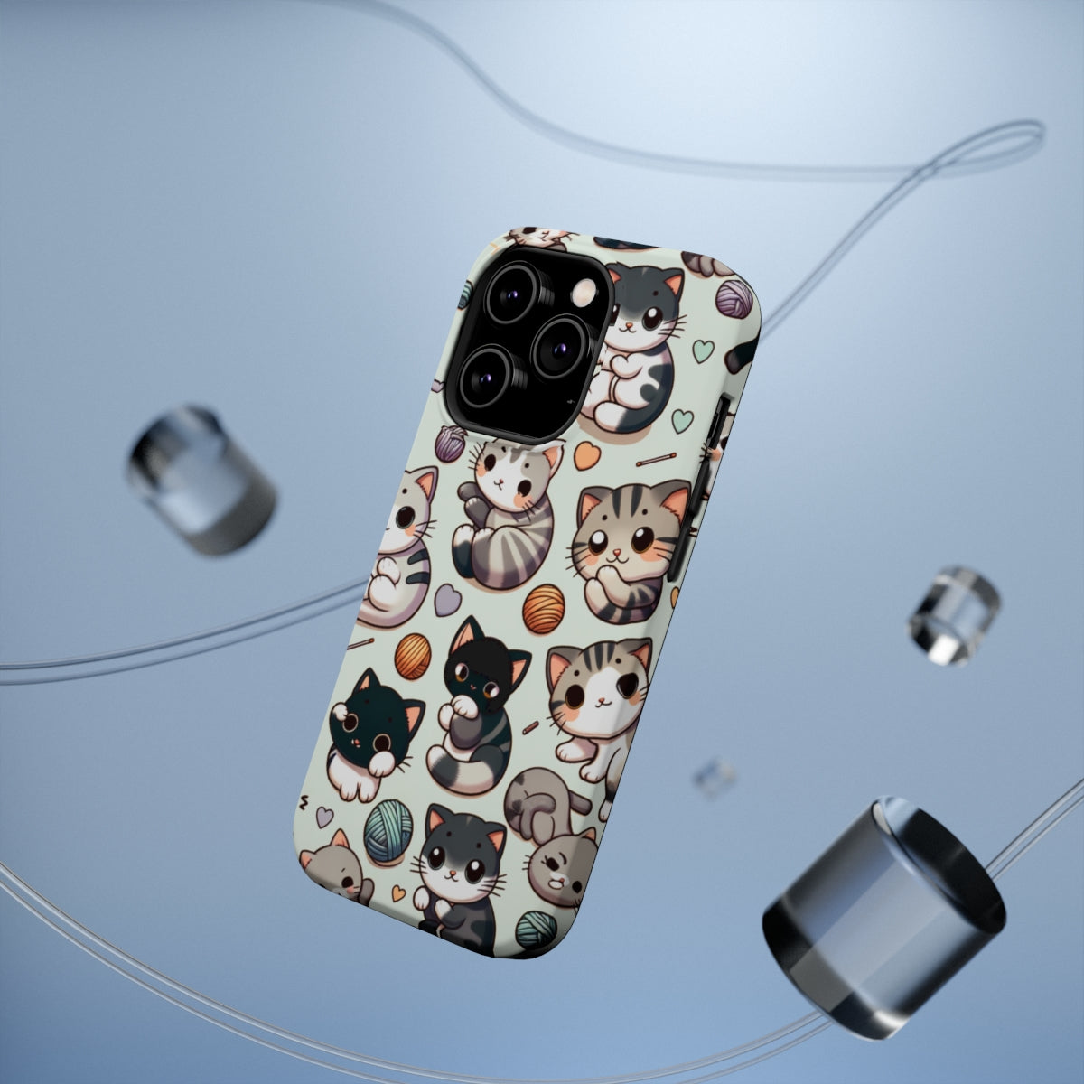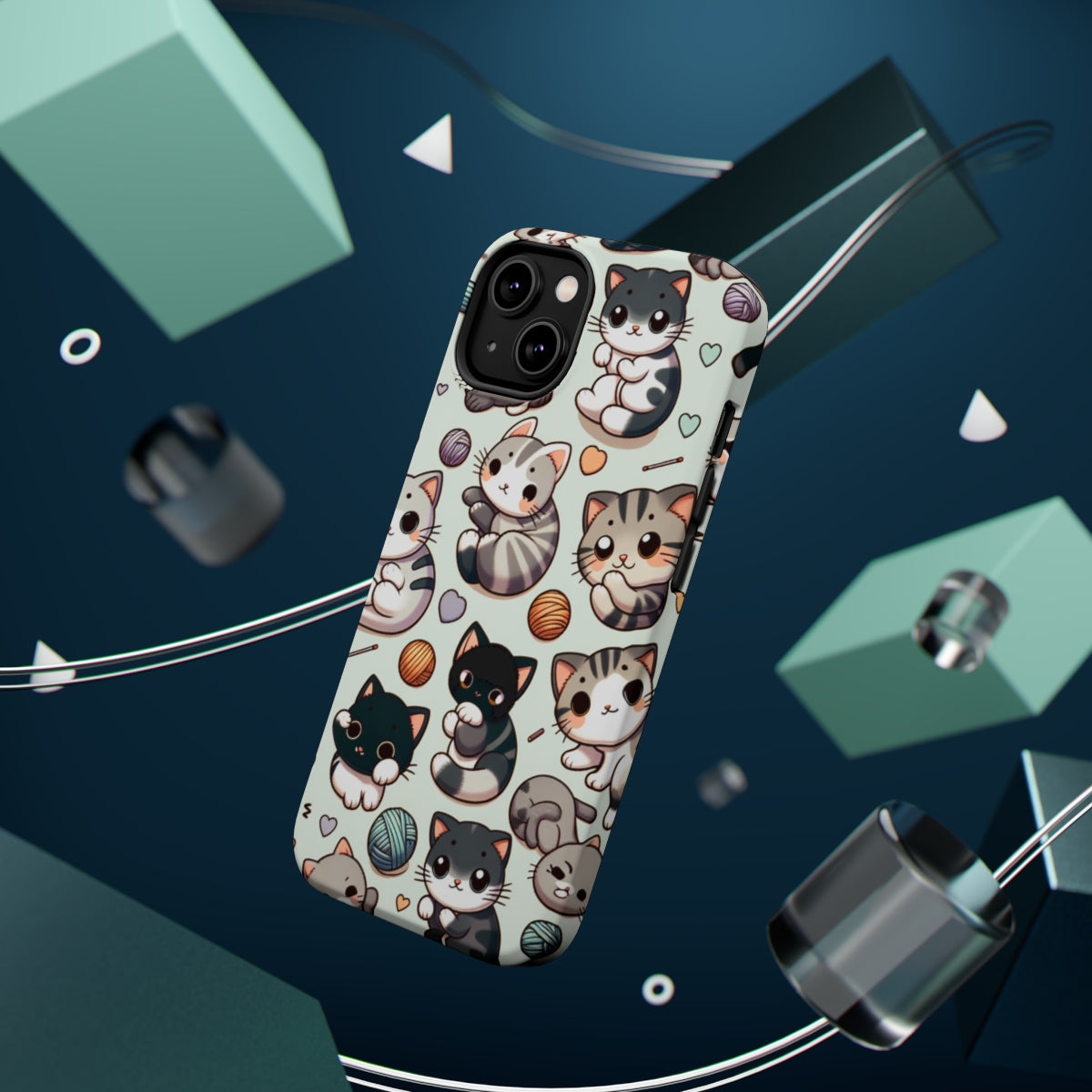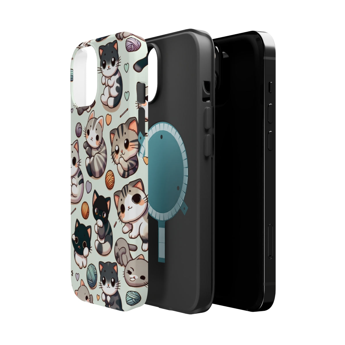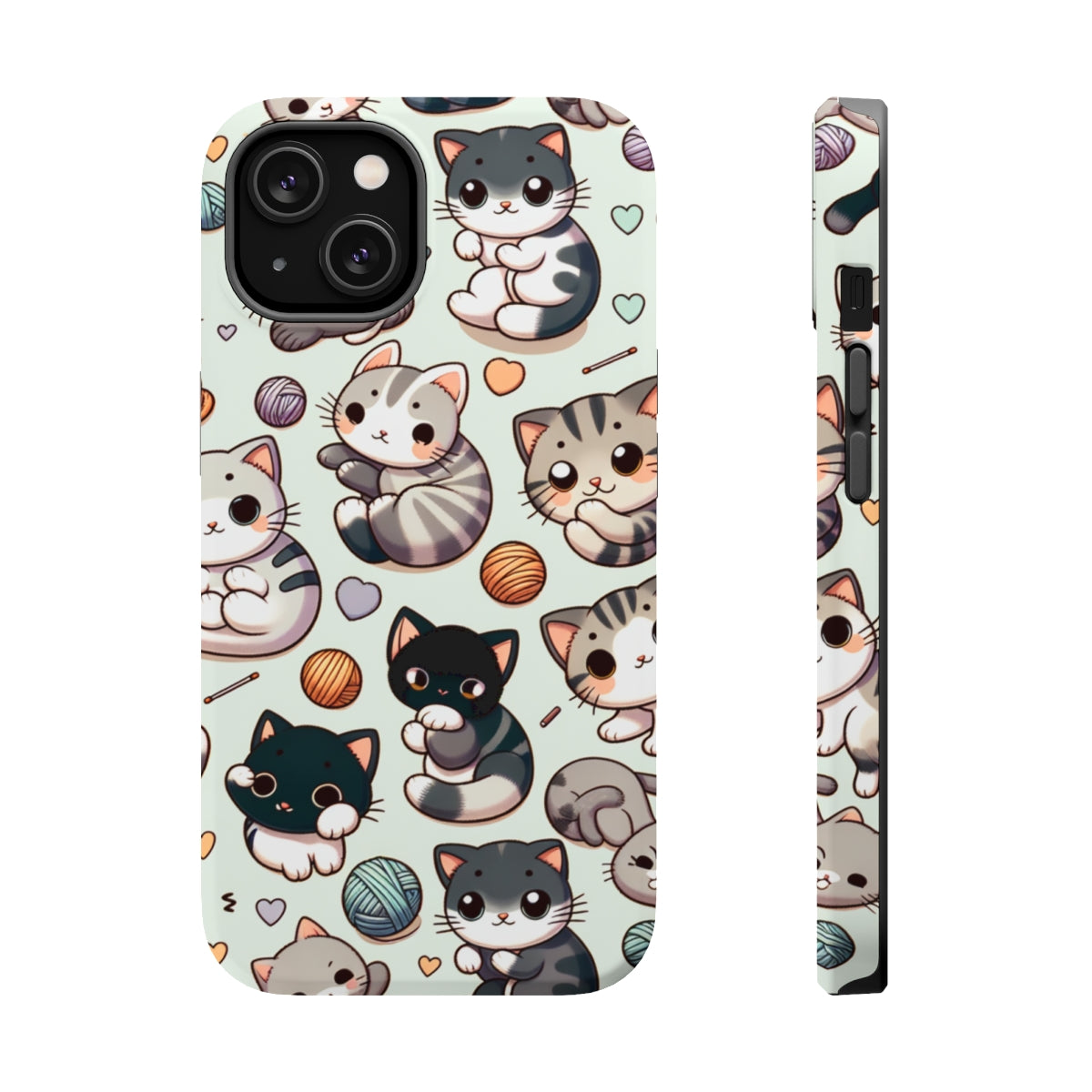DistinctInk Tough Case for Apple iPhone, Compatible with MagSafe Charging - "Whimsical Feline Paradise: A Colorful Cartoon Pattern"