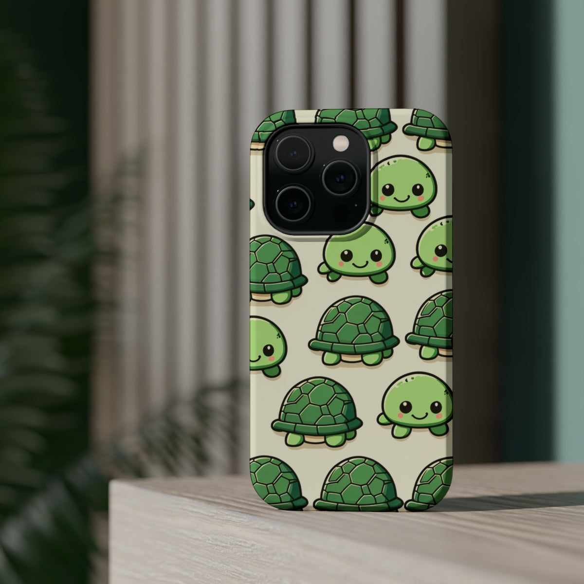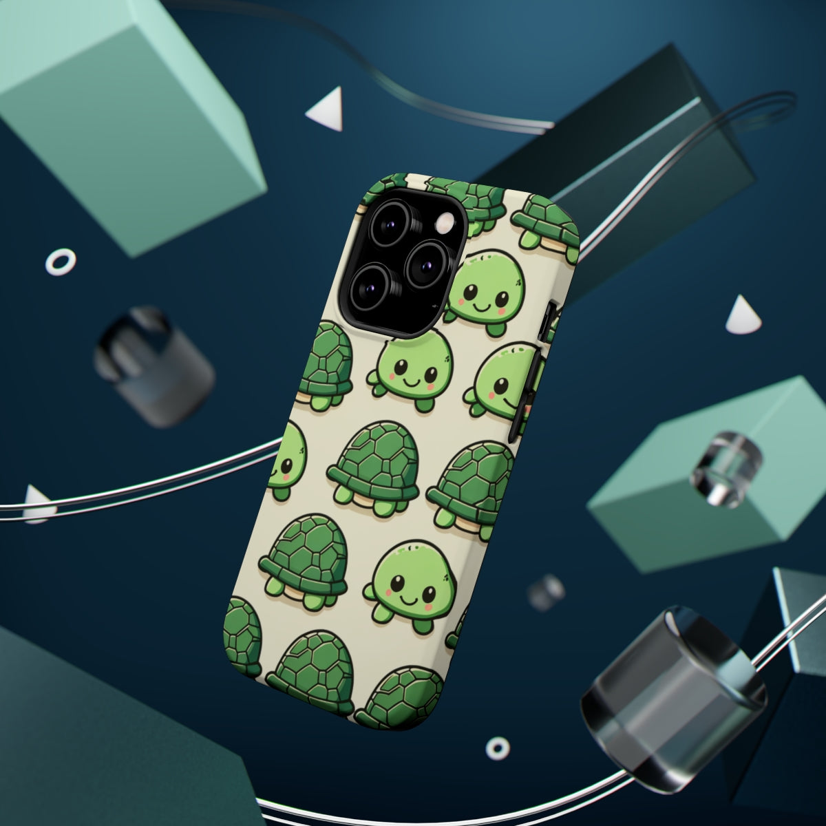 DistinctInk Tough Case for Apple iPhone, Compatible with MagSafe Charging - "Whimsical Turtle Parade: A Playful Pattern"