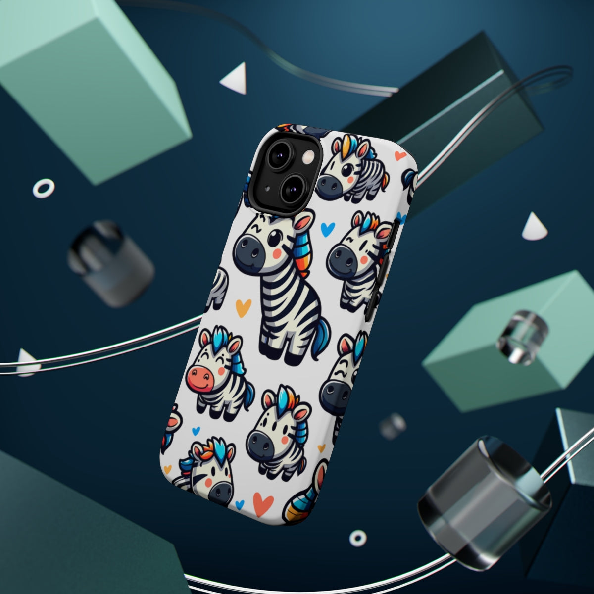 DistinctInk Tough Case for Apple iPhone, Compatible with MagSafe Charging - "Whimsical Zebra Parade: Playful and Colorful Pattern"