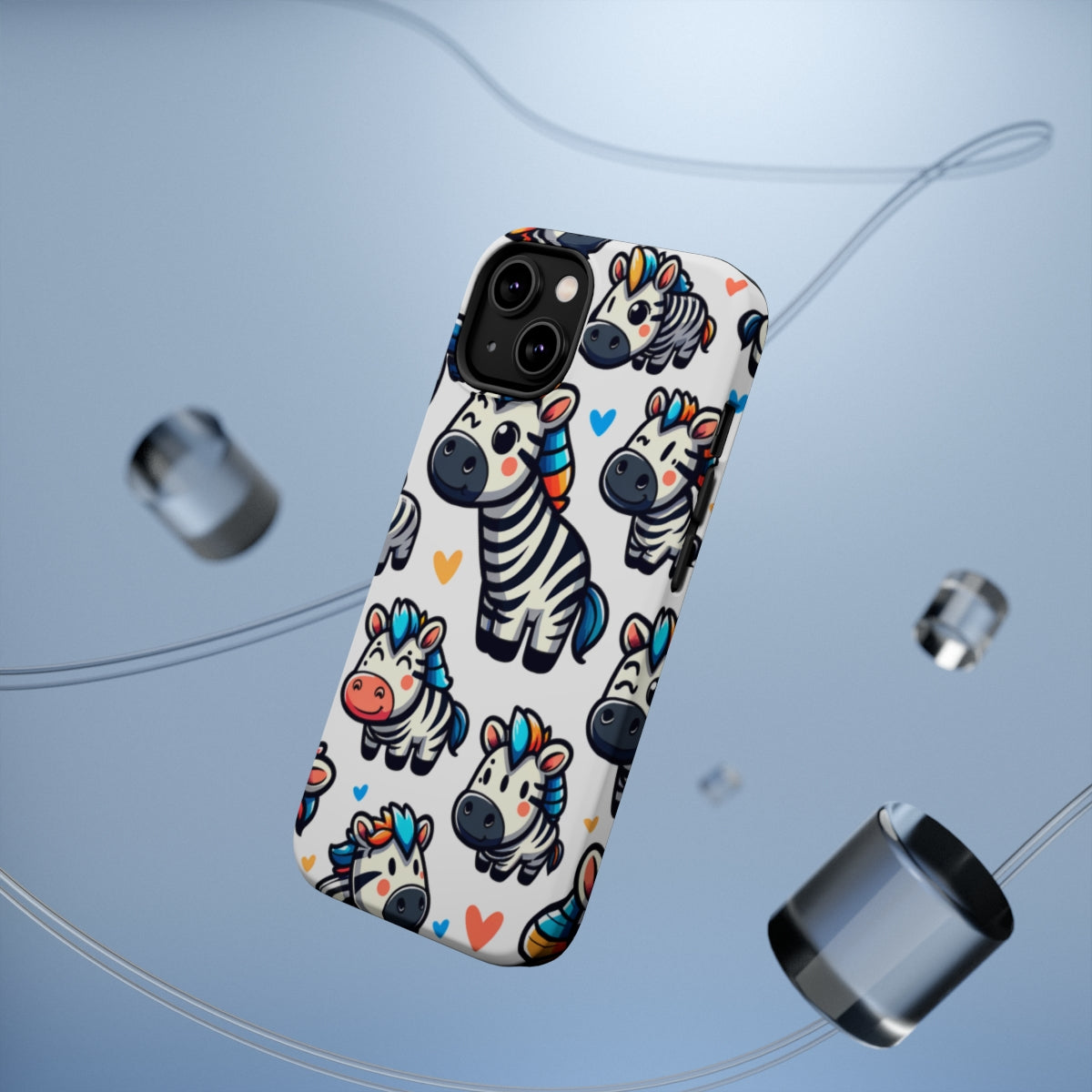 Say goodbye to boring, generic phone cases and let the Whimsical Zebra Parade: Playful and Colorful Pattern take you on a wild and fashionable ride. This case is a statement of style, strength, and sassiness all rolled into one. Get ready to unleash your inner zebra with the DistinctInk ToughCase for Apple iPhone compatible with Wireless charging!
