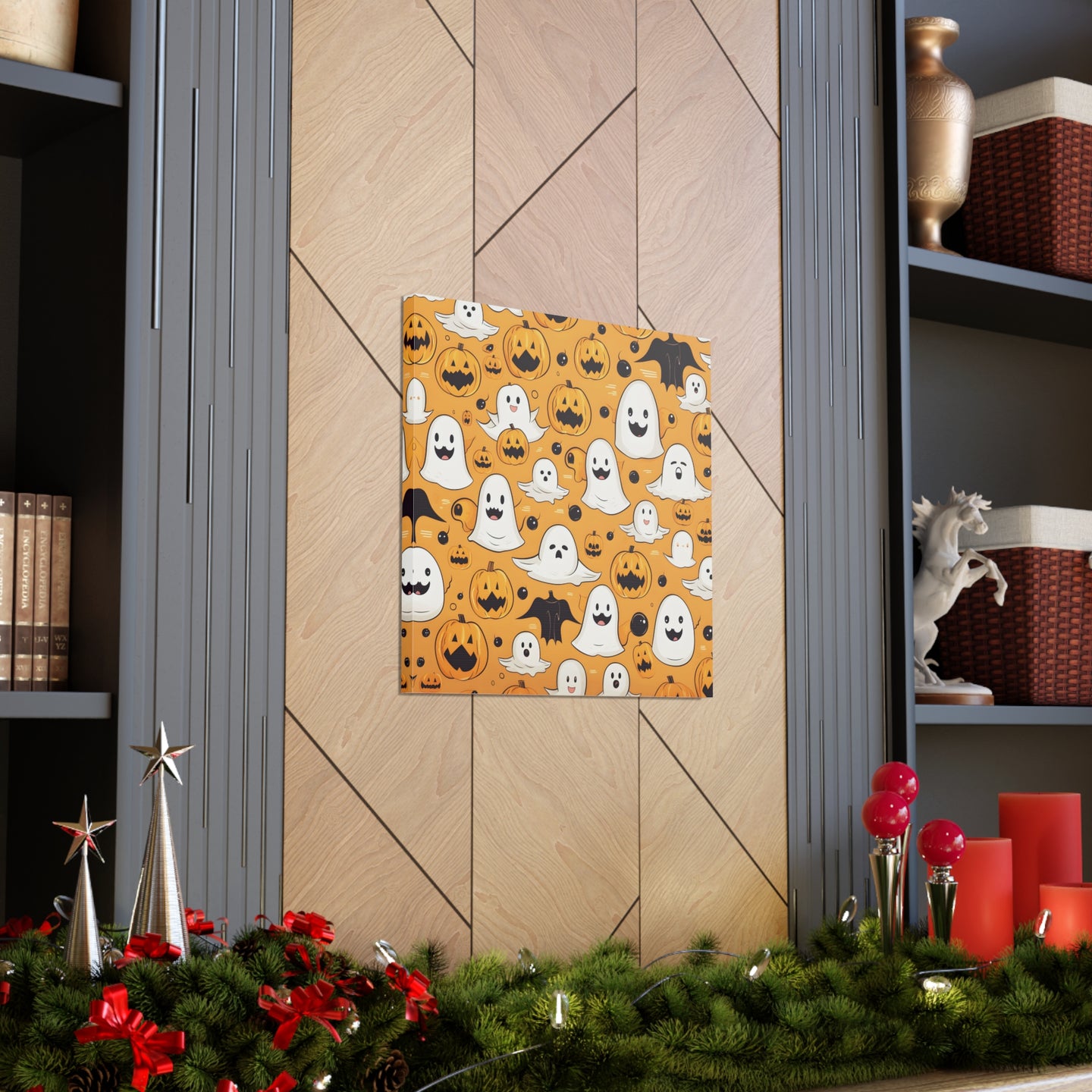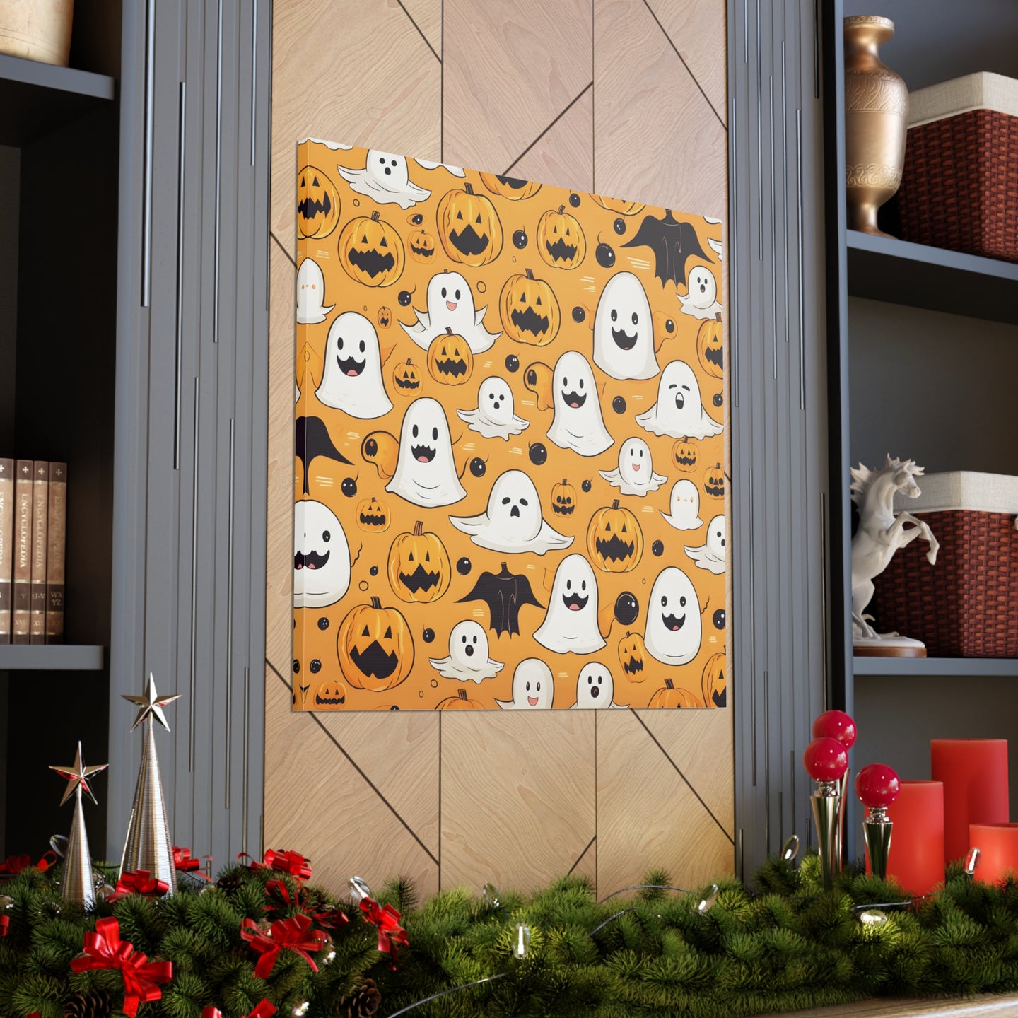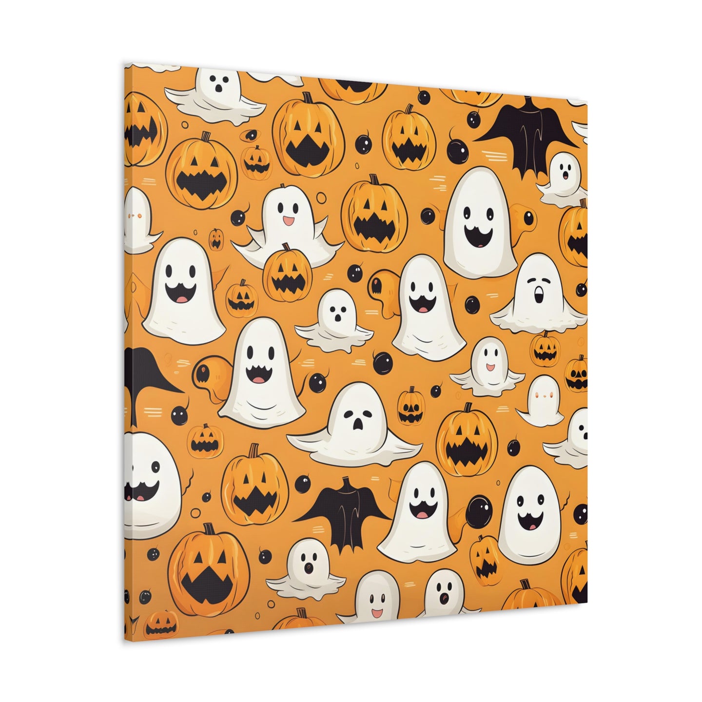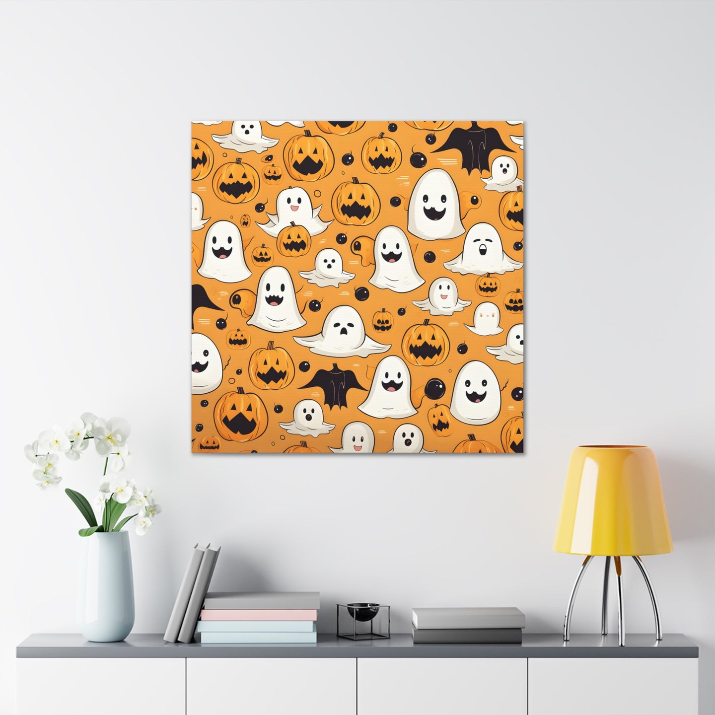 DistinctInk Canvas Wall Art with Ghoulish Bats and Pumpkins for Halloween