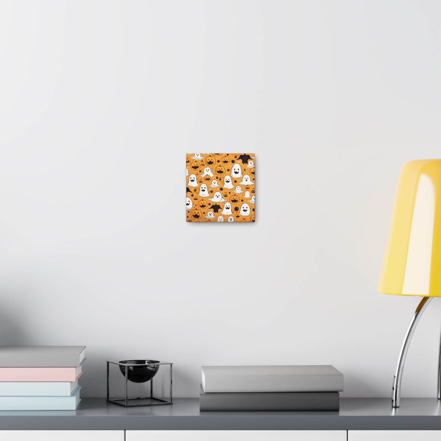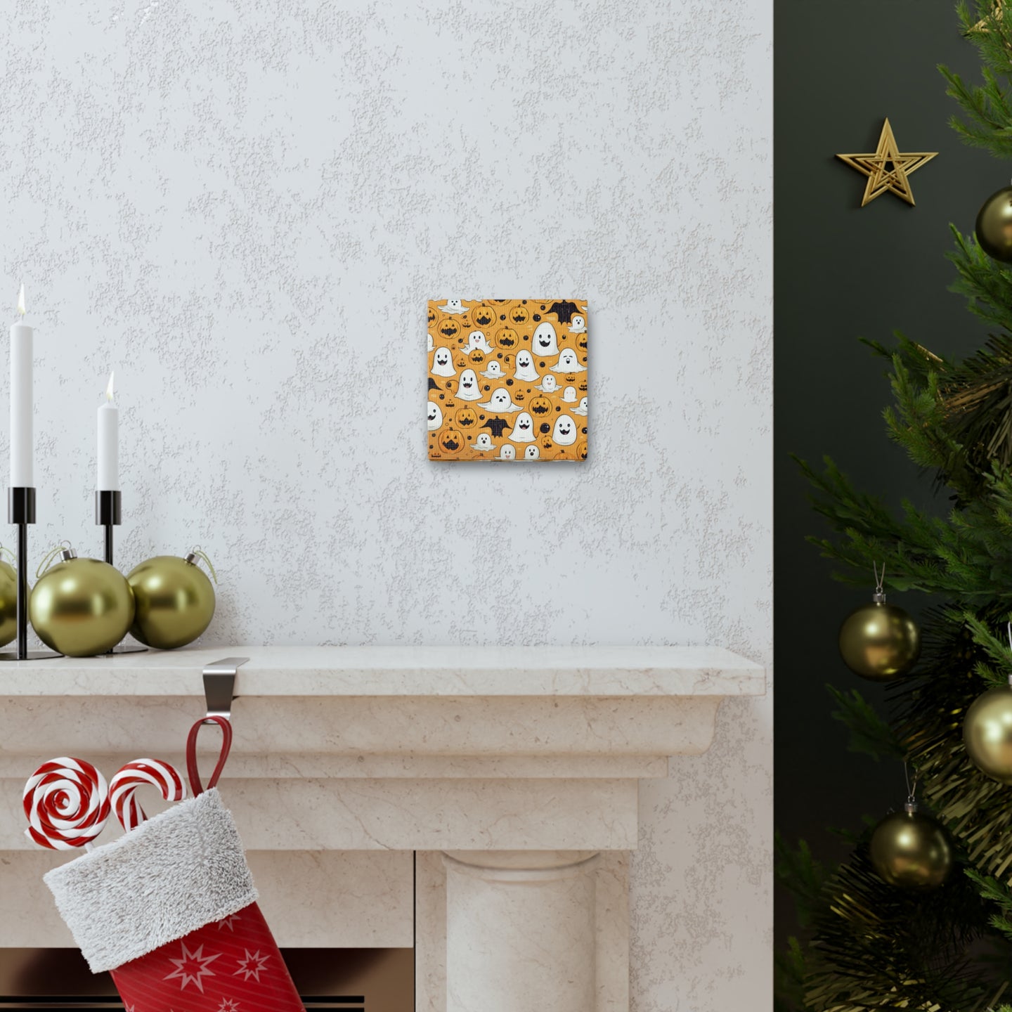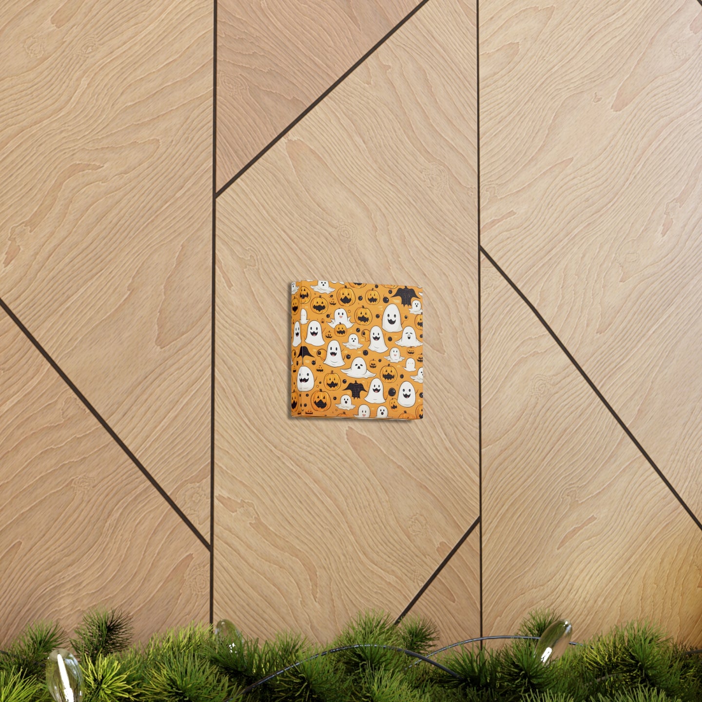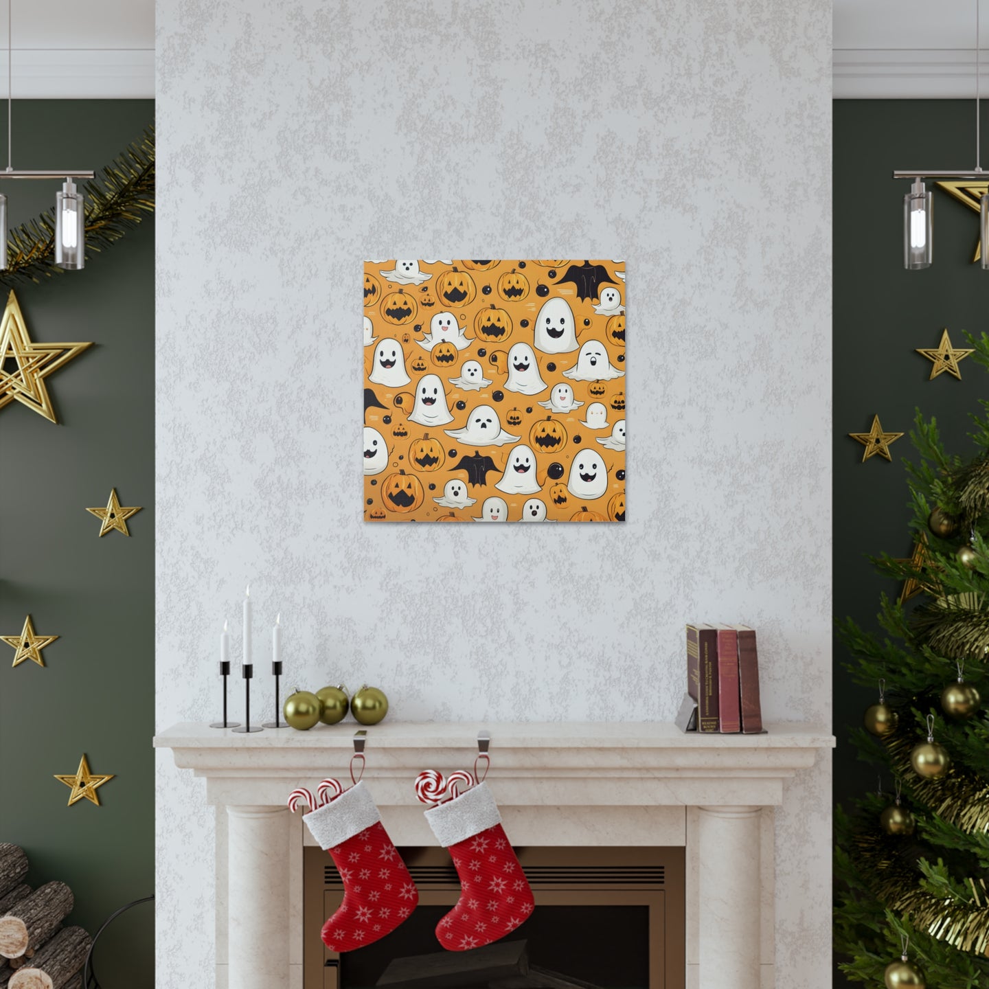 DistinctInk Canvas Wall Art with Ghoulish Bats and Pumpkins for Halloween