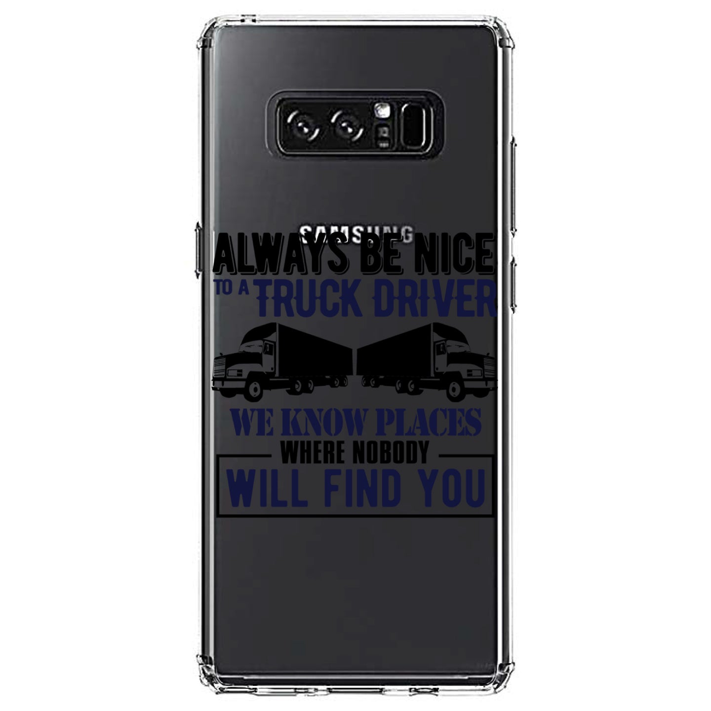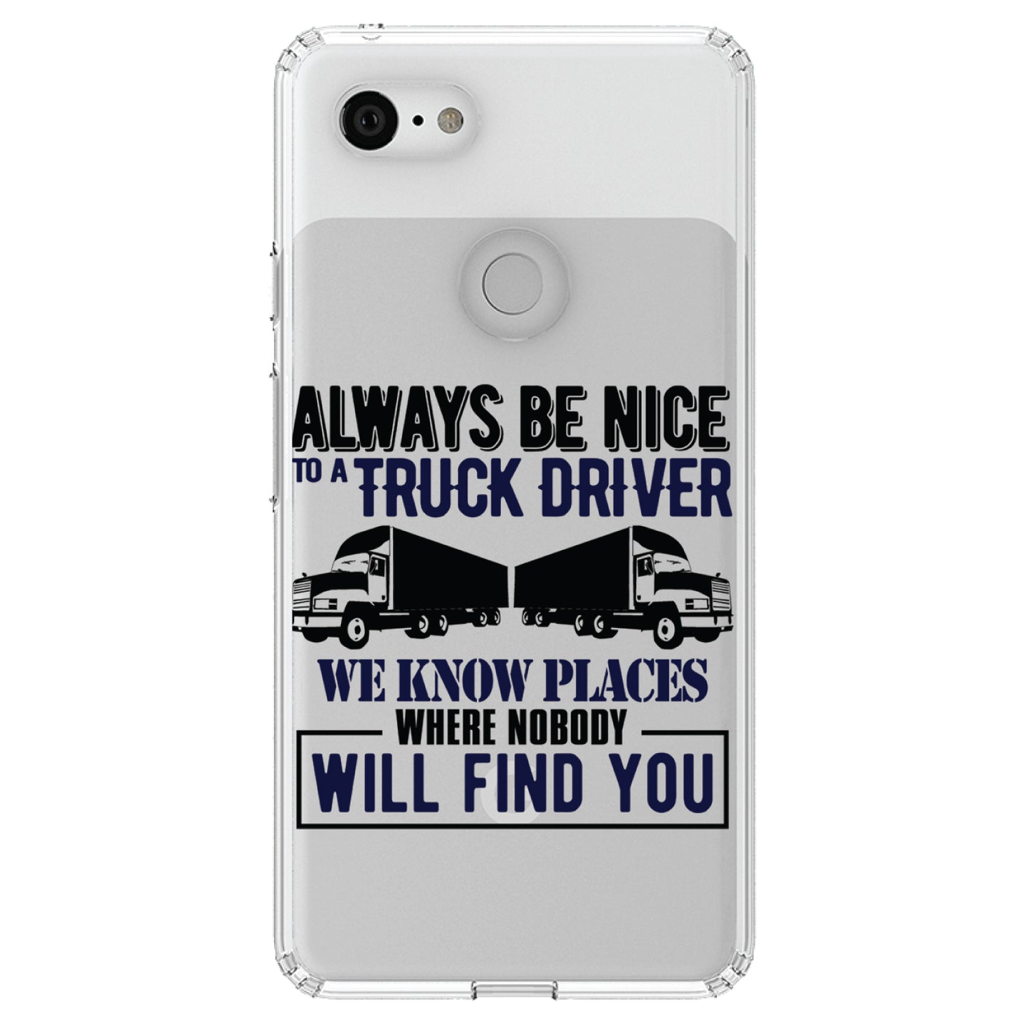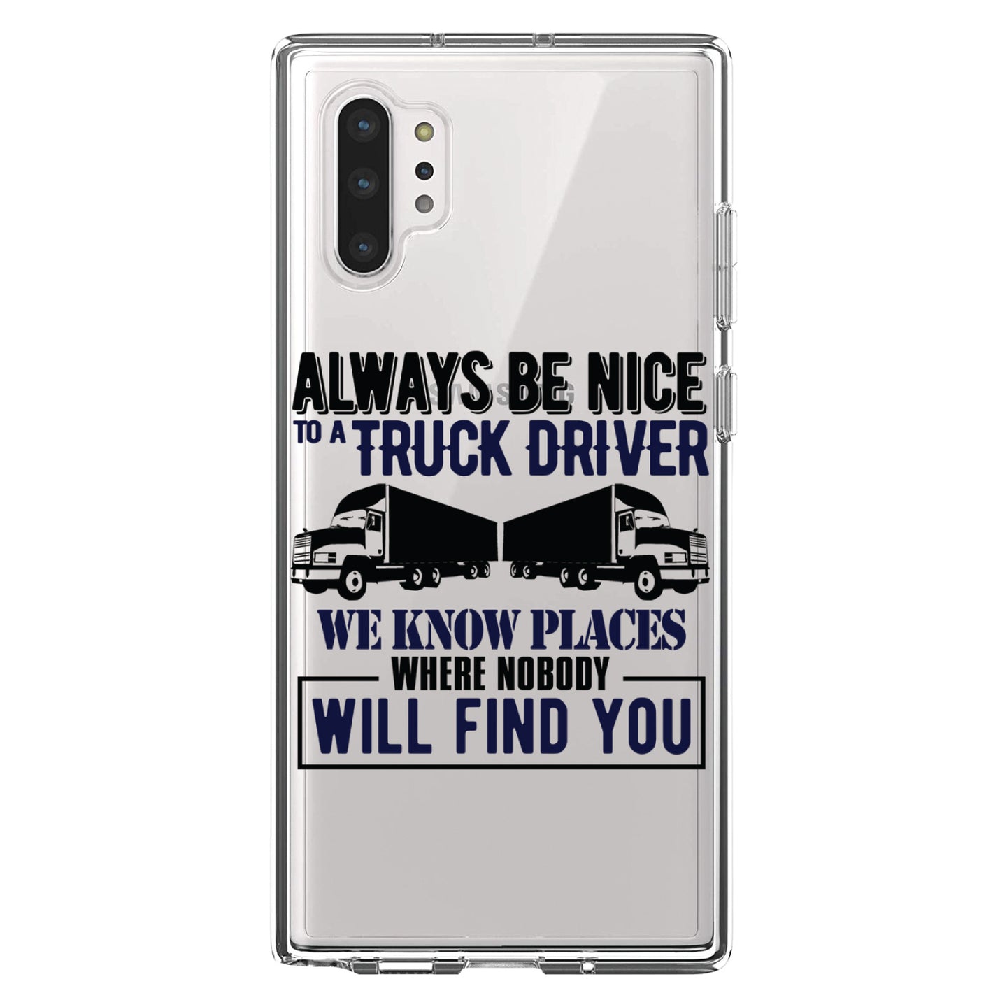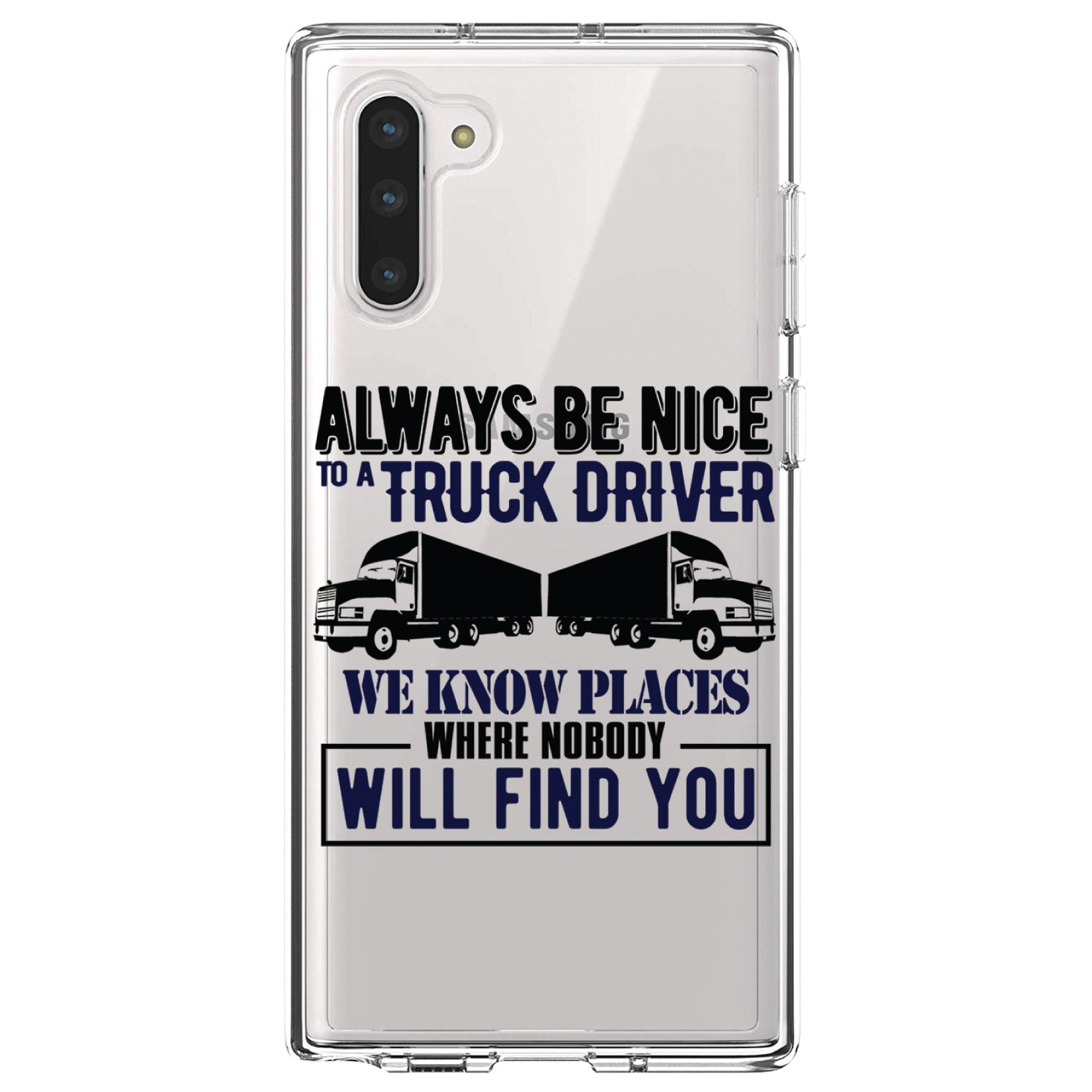 DistinctInk® Clear Shockproof Hybrid Case for Apple iPhone / Samsung Galaxy / Google Pixel - Be Nice to Truck Drivers Know Where Nobody