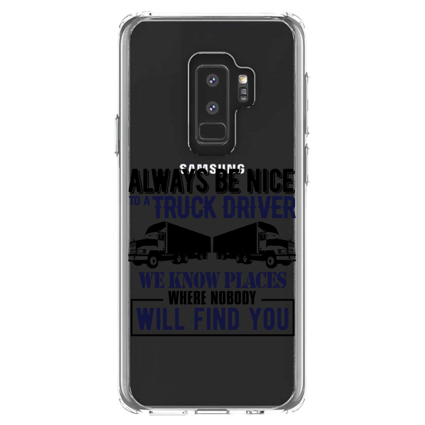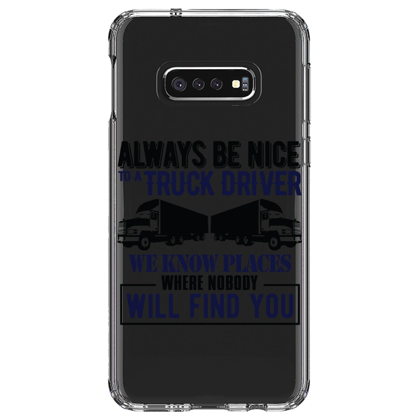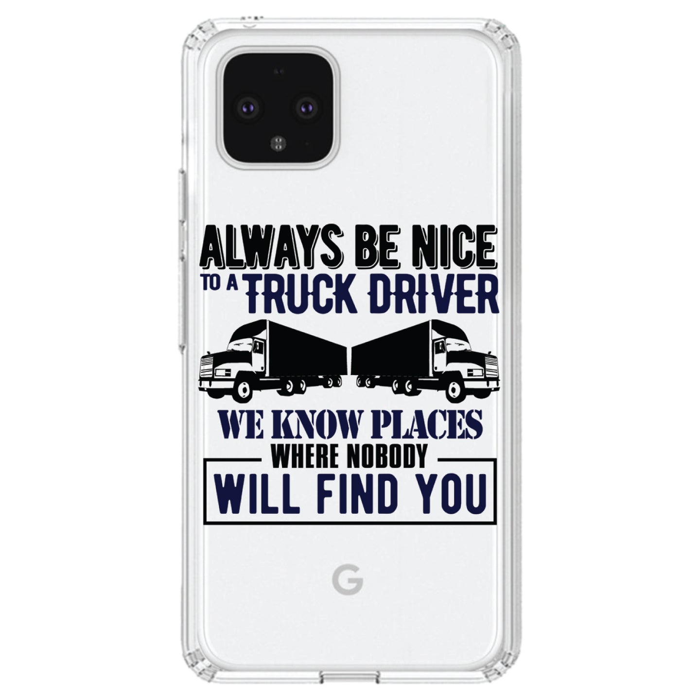 DistinctInk® Clear Shockproof Hybrid Case for Apple iPhone / Samsung Galaxy / Google Pixel - Be Nice to Truck Drivers Know Where Nobody