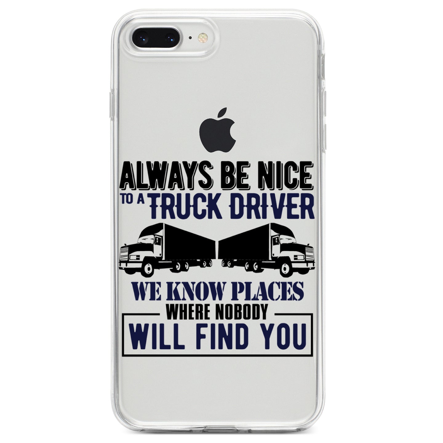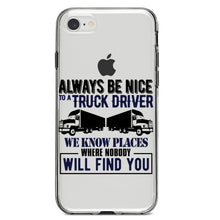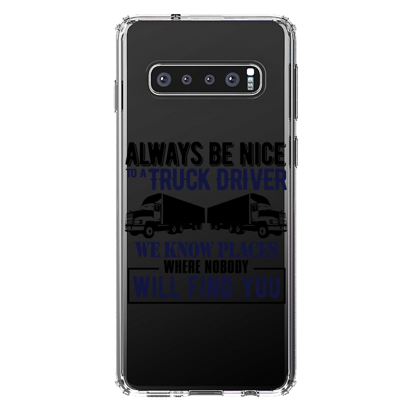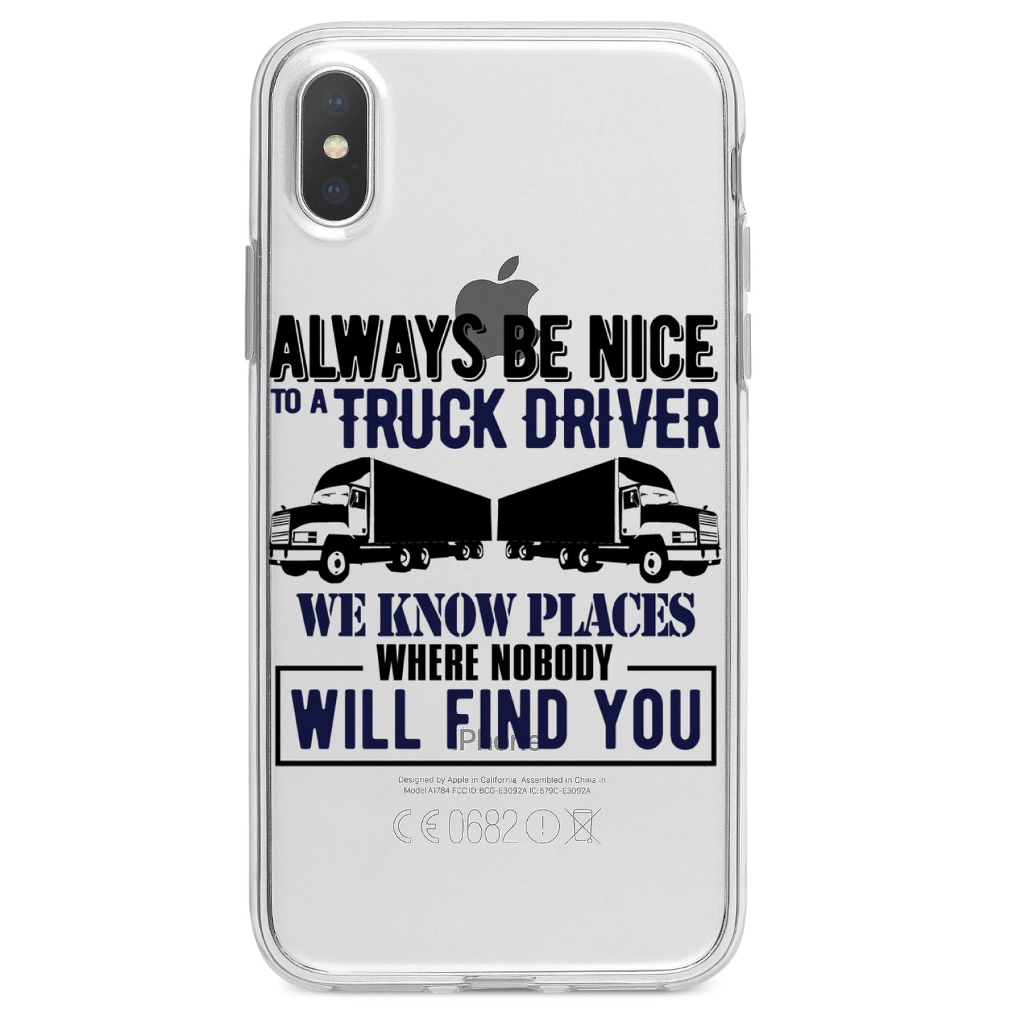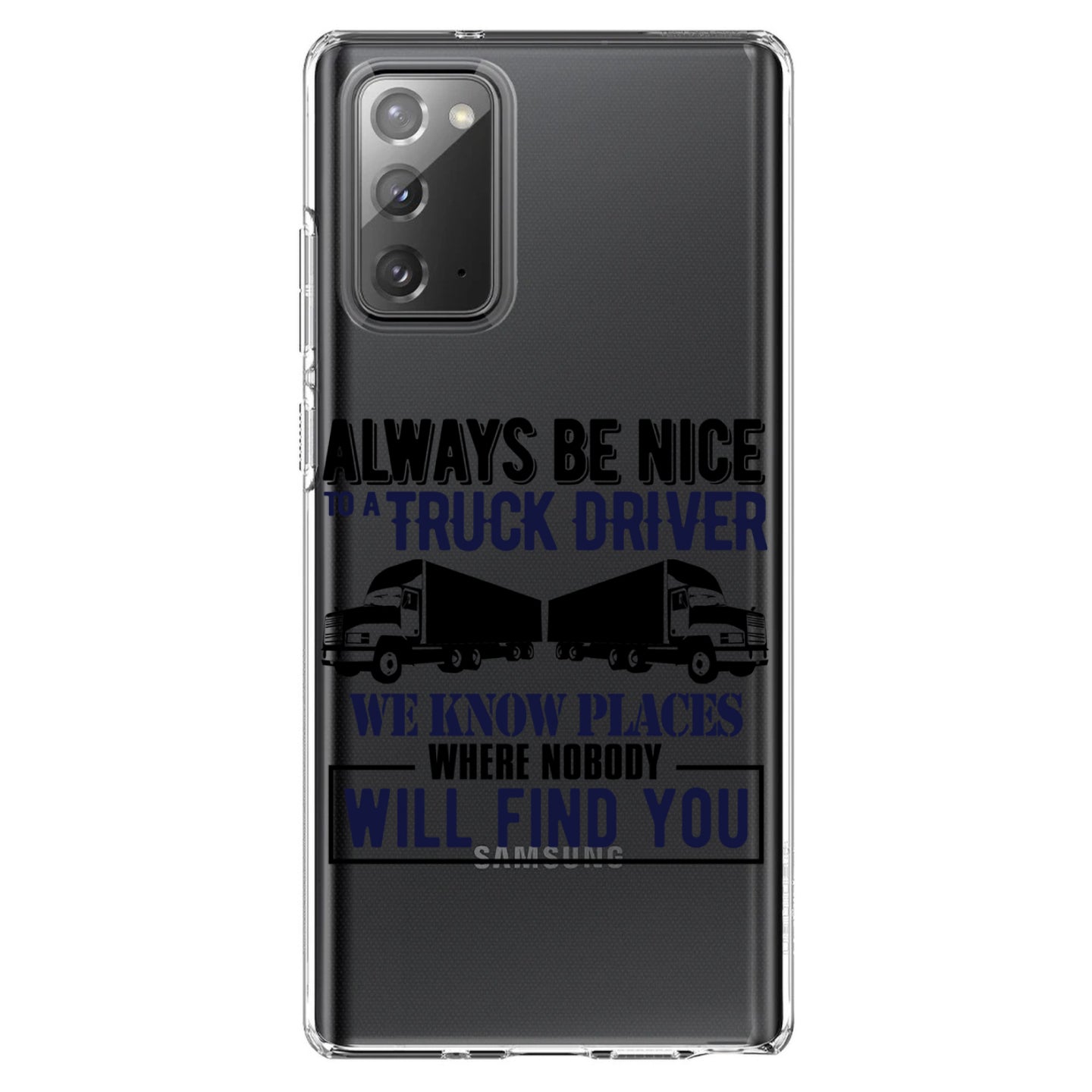 DistinctInk® Clear Shockproof Hybrid Case for Apple iPhone / Samsung Galaxy / Google Pixel - Be Nice to Truck Drivers Know Where Nobody